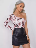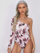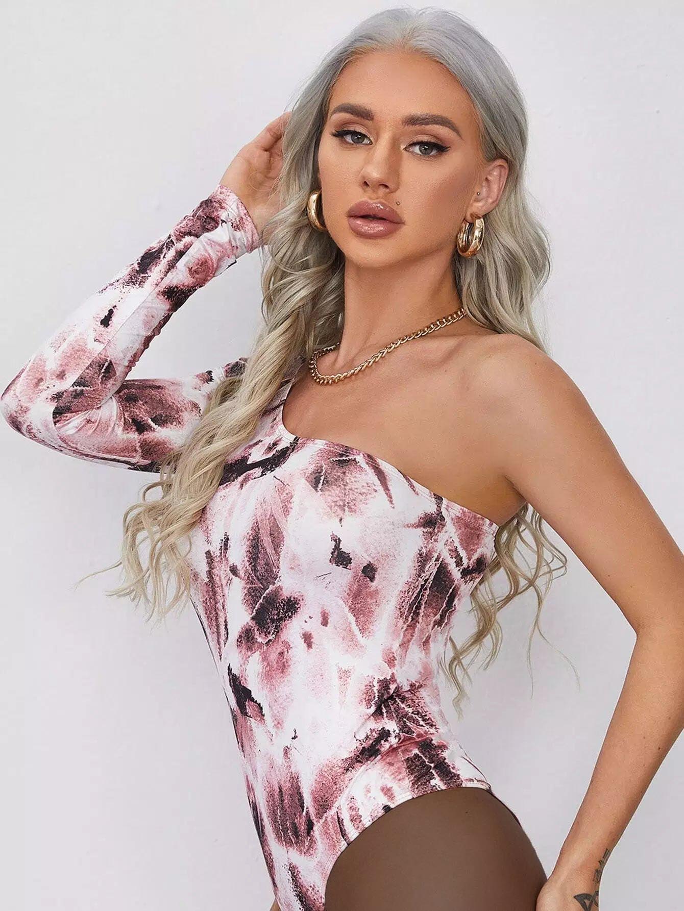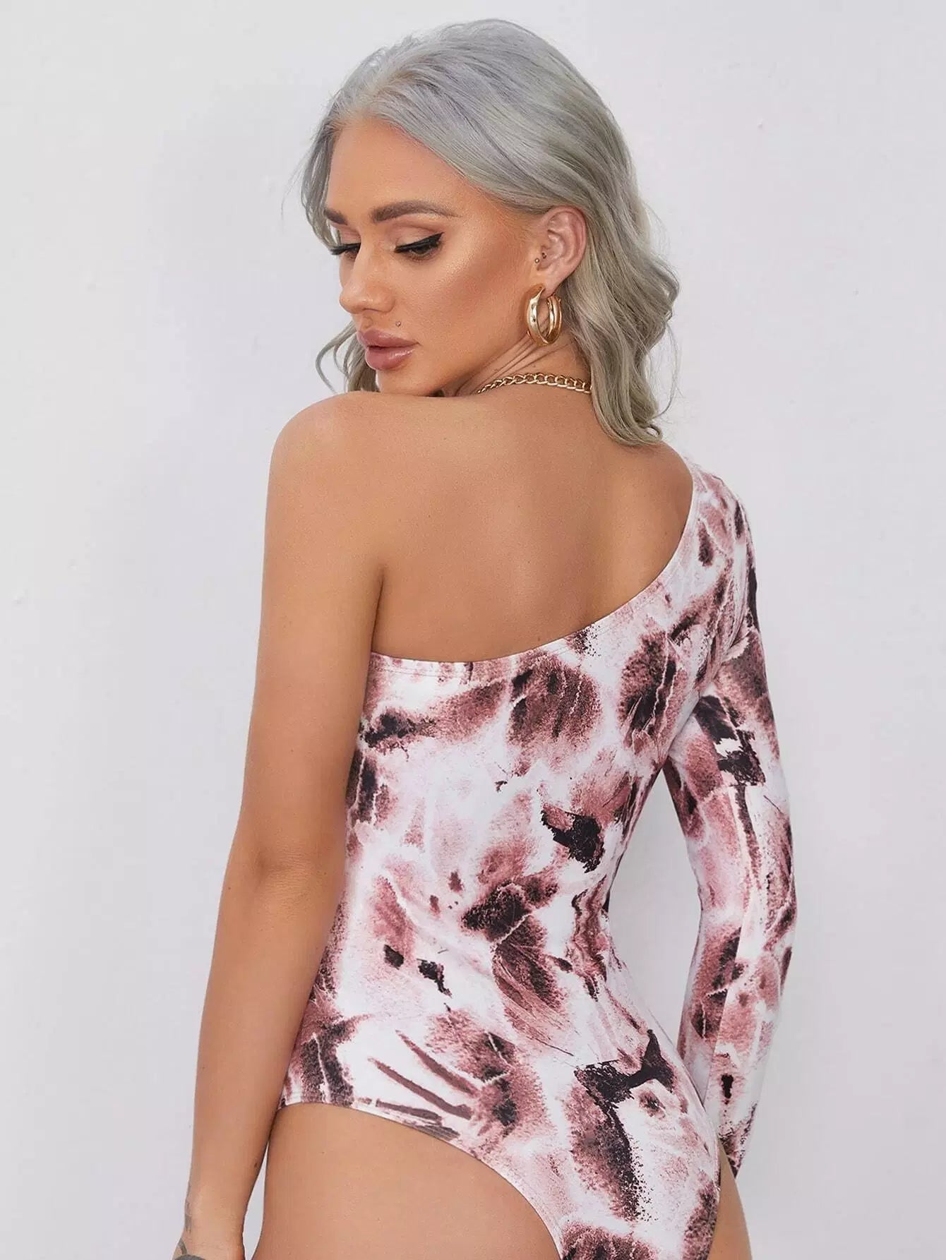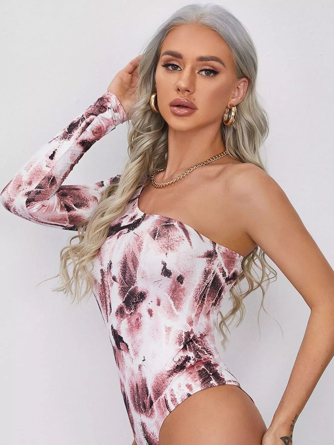 لباس قطعة واحدة ضيقة على شكل كتف واحد مصبوغ بربطة عنق مصبوغة