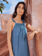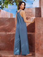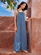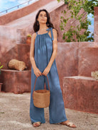 جمبسوت كامي واسع الساق بحمالات معقودة من الكتان بنسبة 30%