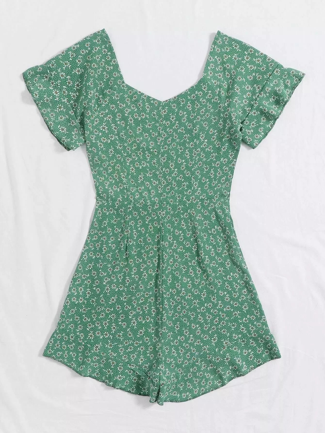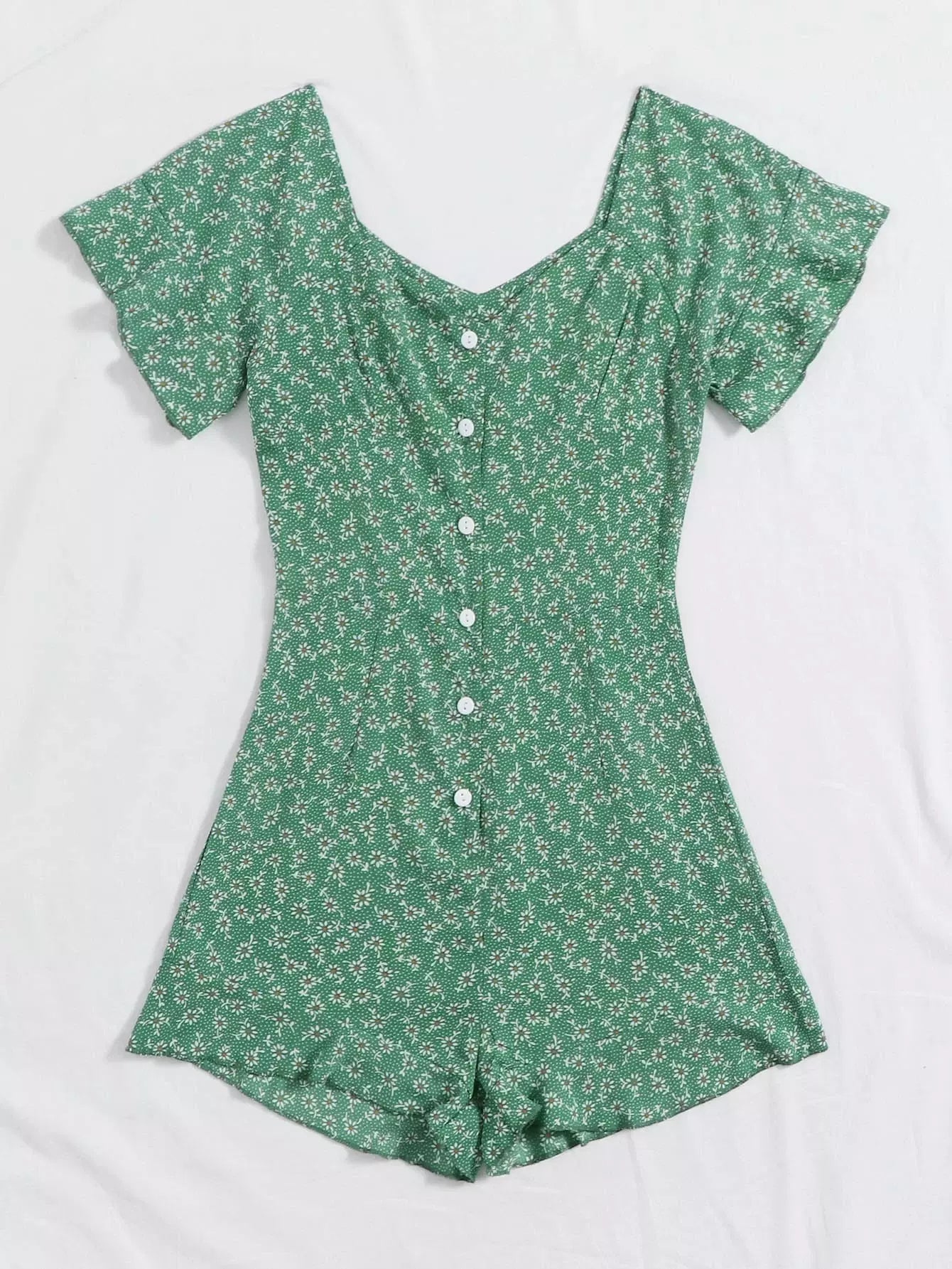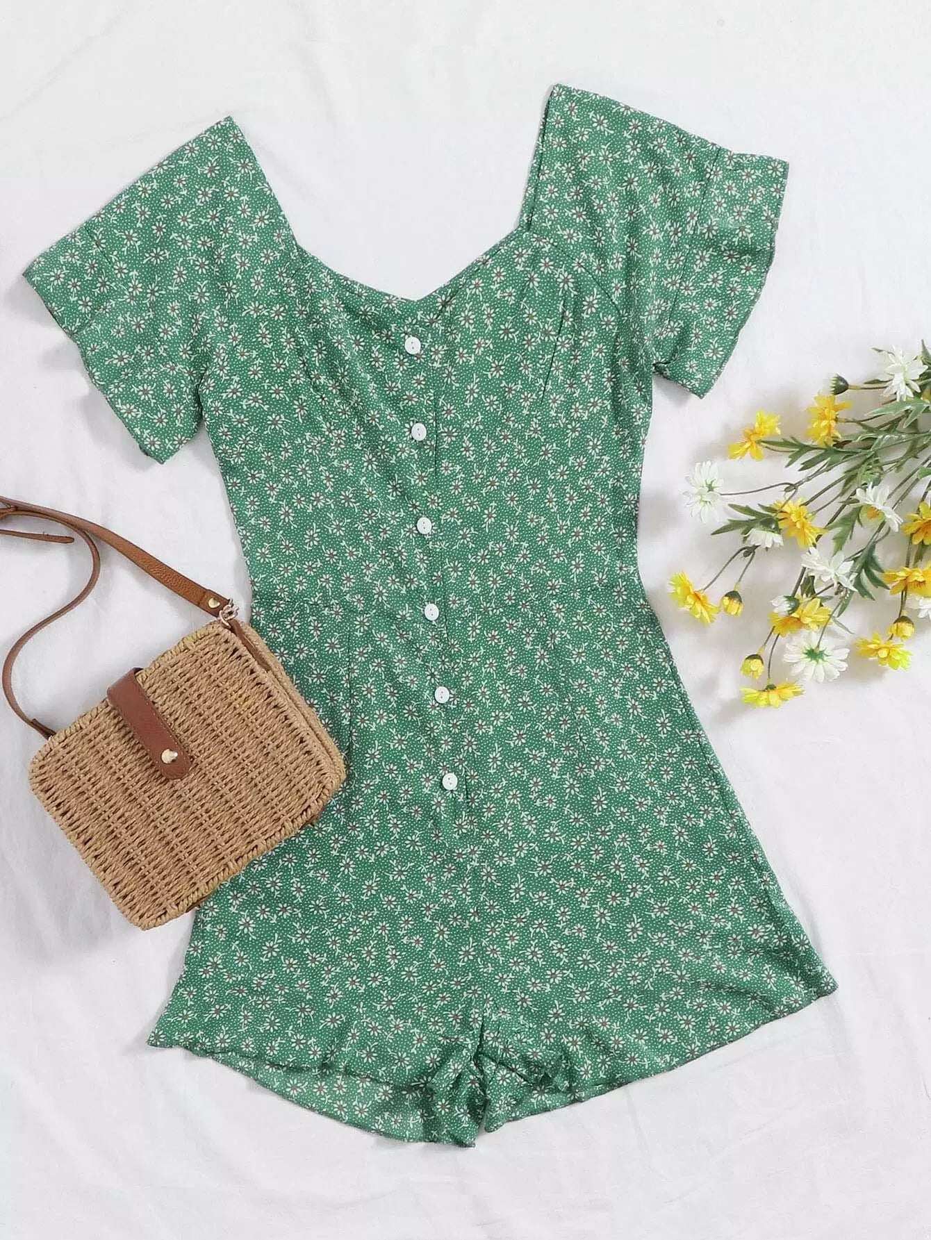 رومبر ديتسي زهري مع كشكشة وأزرار أمامية