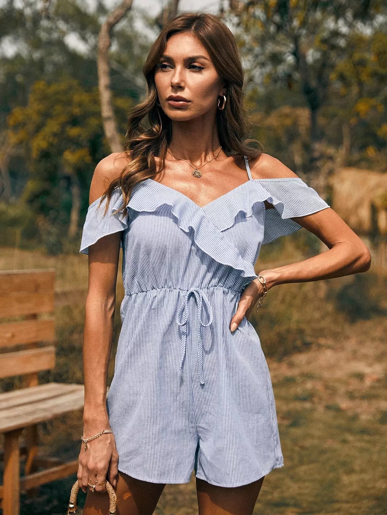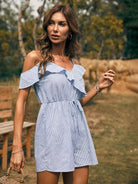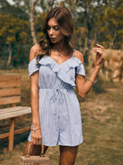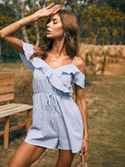 رومبر مخطط بكشكش على الأكتاف بارد بحواف مكشكشة
