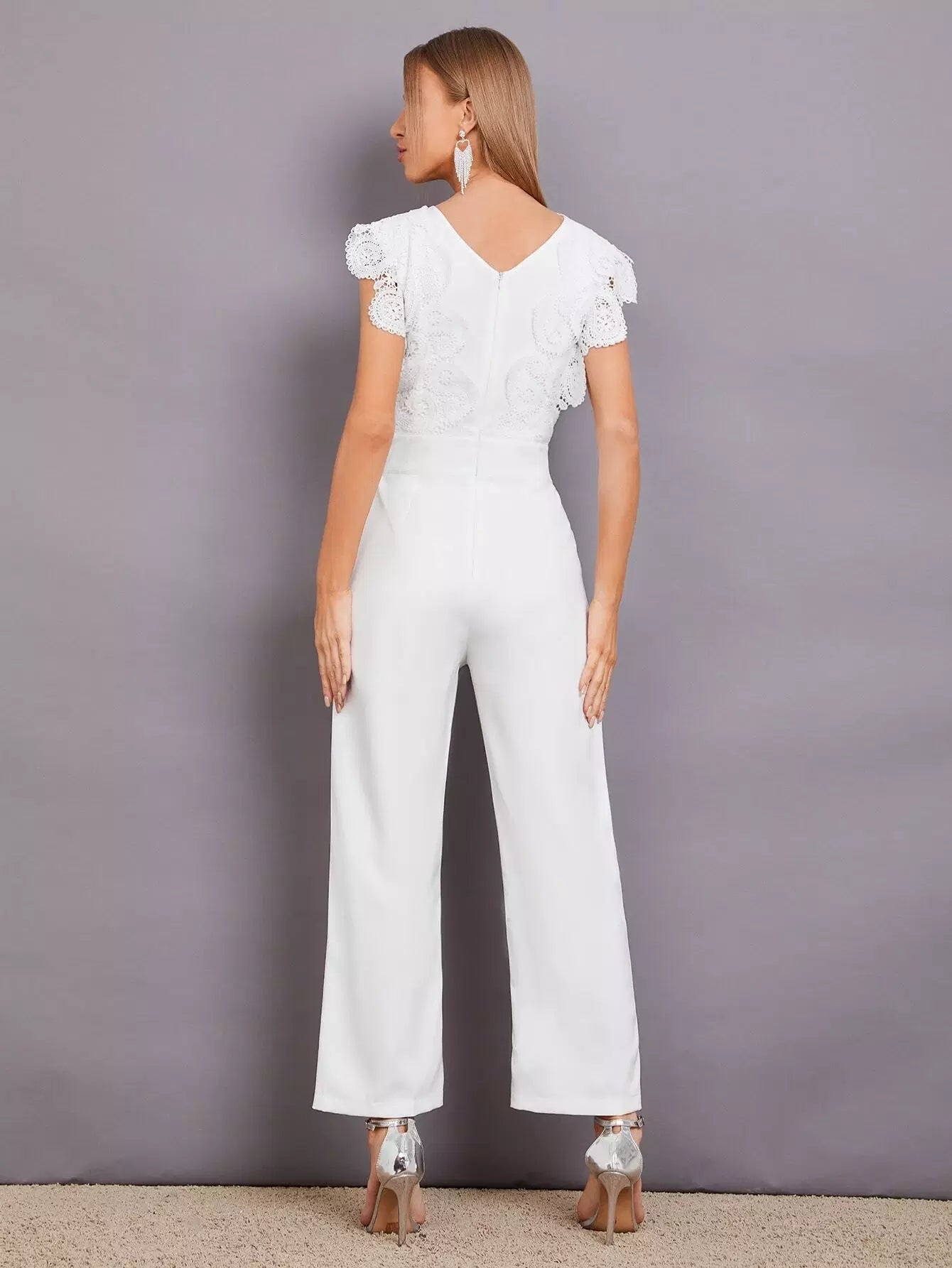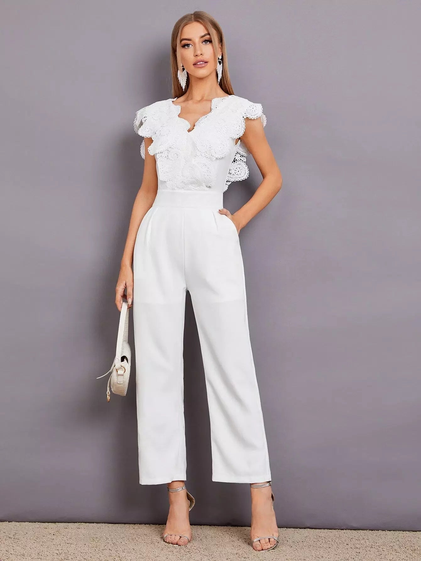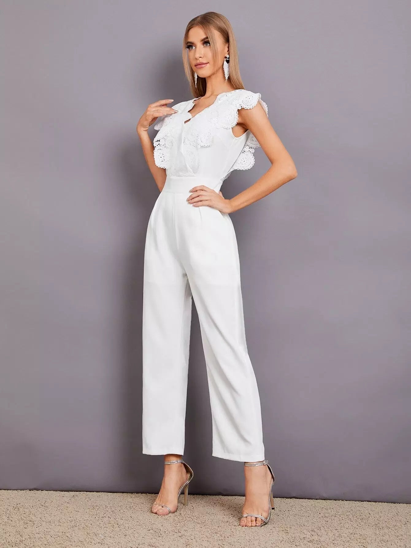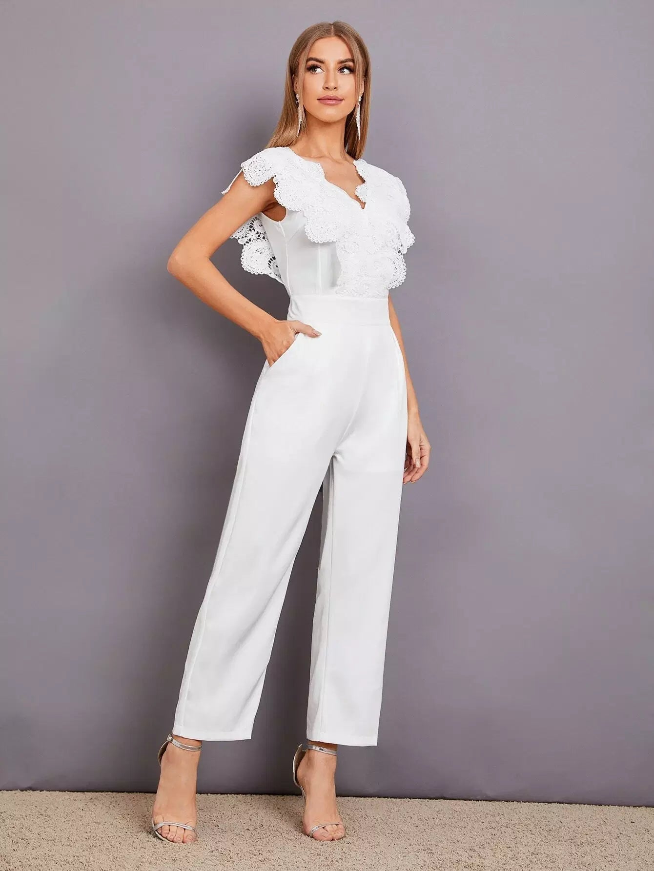 جمبسوت بحواف من الدانتيل بلون مغاير بحواف من الدانتيل