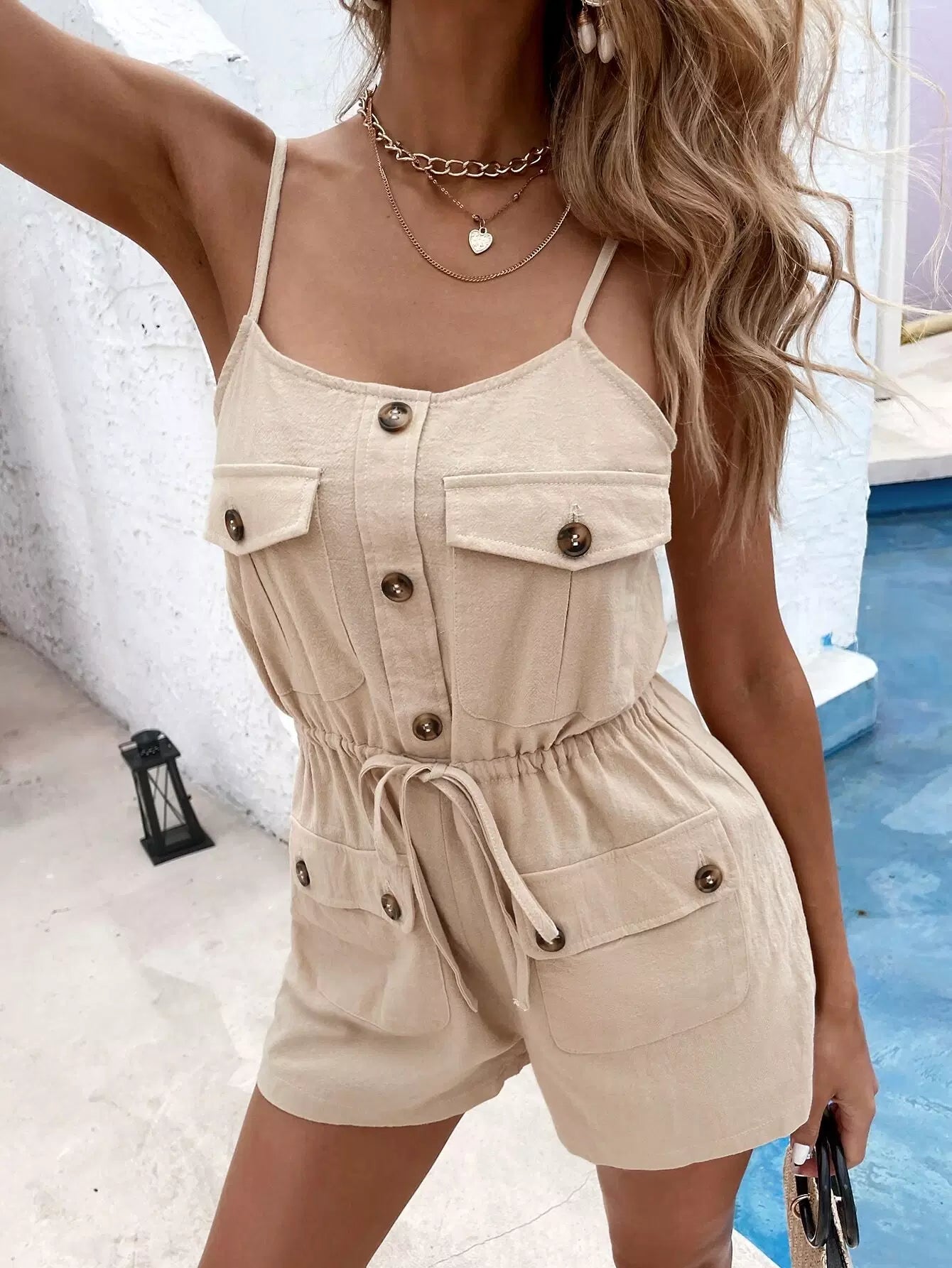 للنساء - رومبر كامي بجيب على الخصر برباط