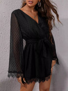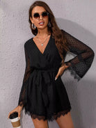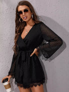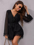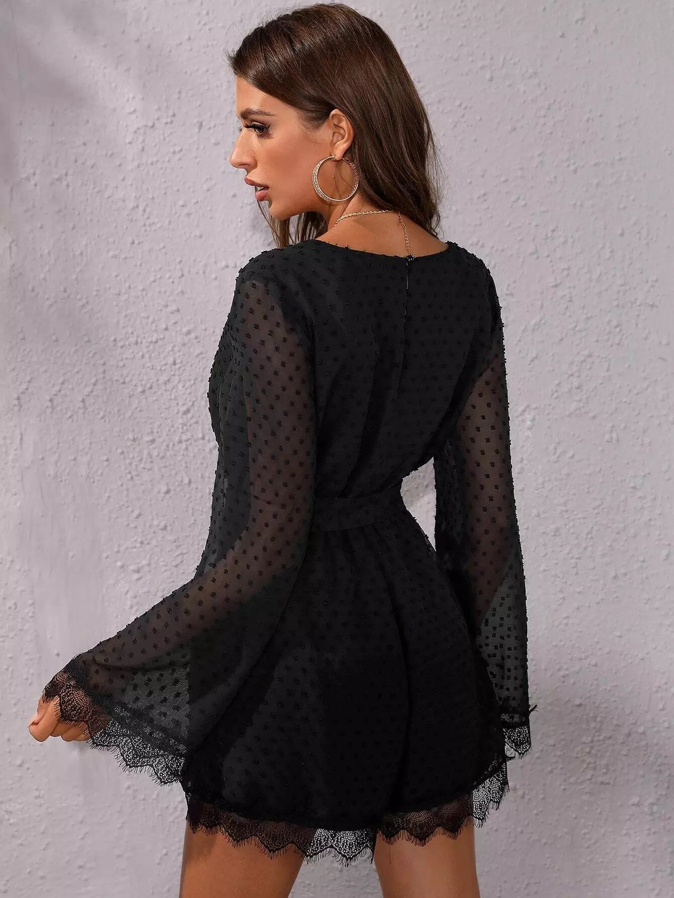 رومبر من قماش شبكي مزين بنقاط سويسرية وحواف من الدانتيل