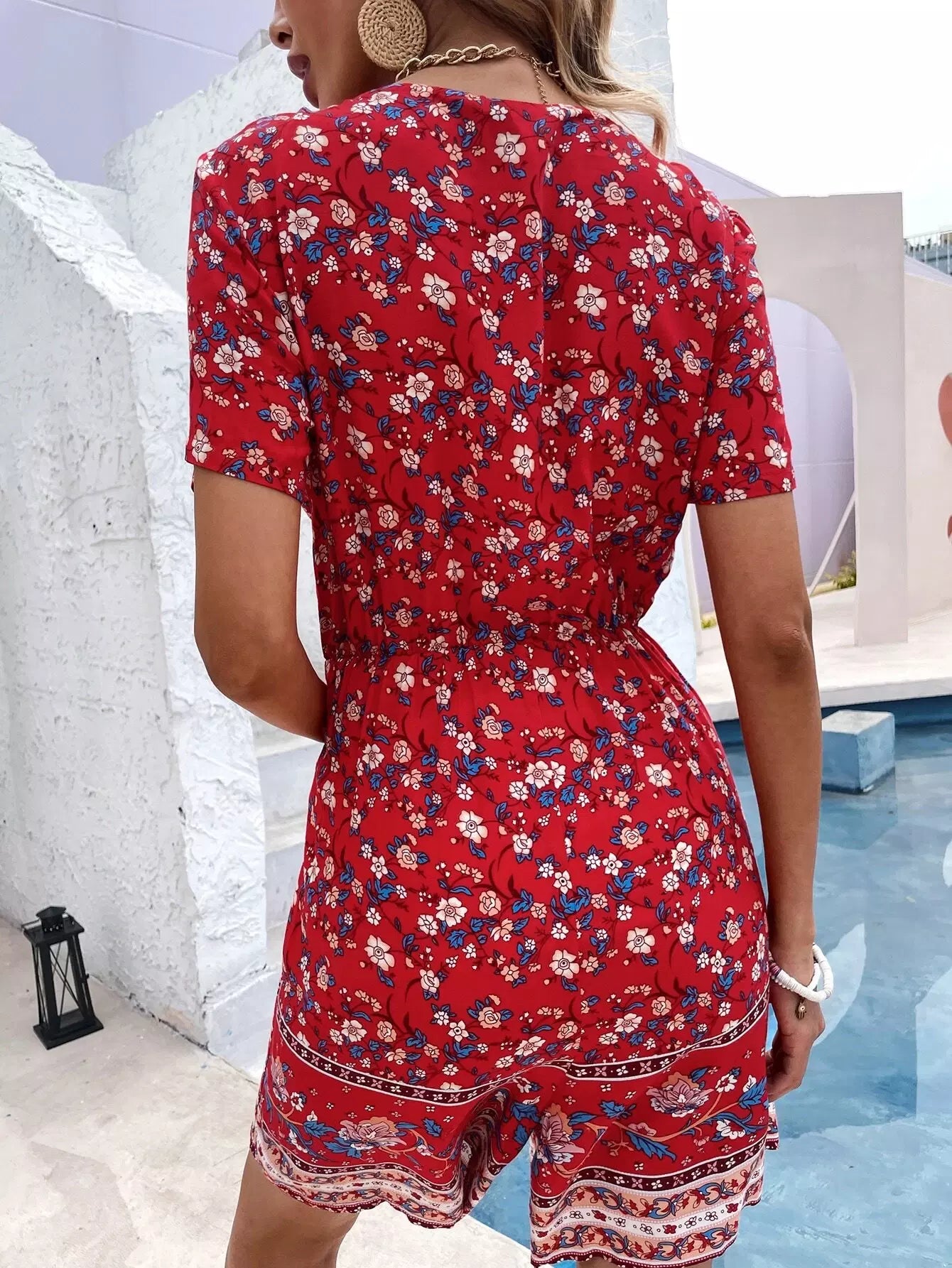 رومبر بطبعة أزهار بنصف عقدة أمامية بأزرار نصفية