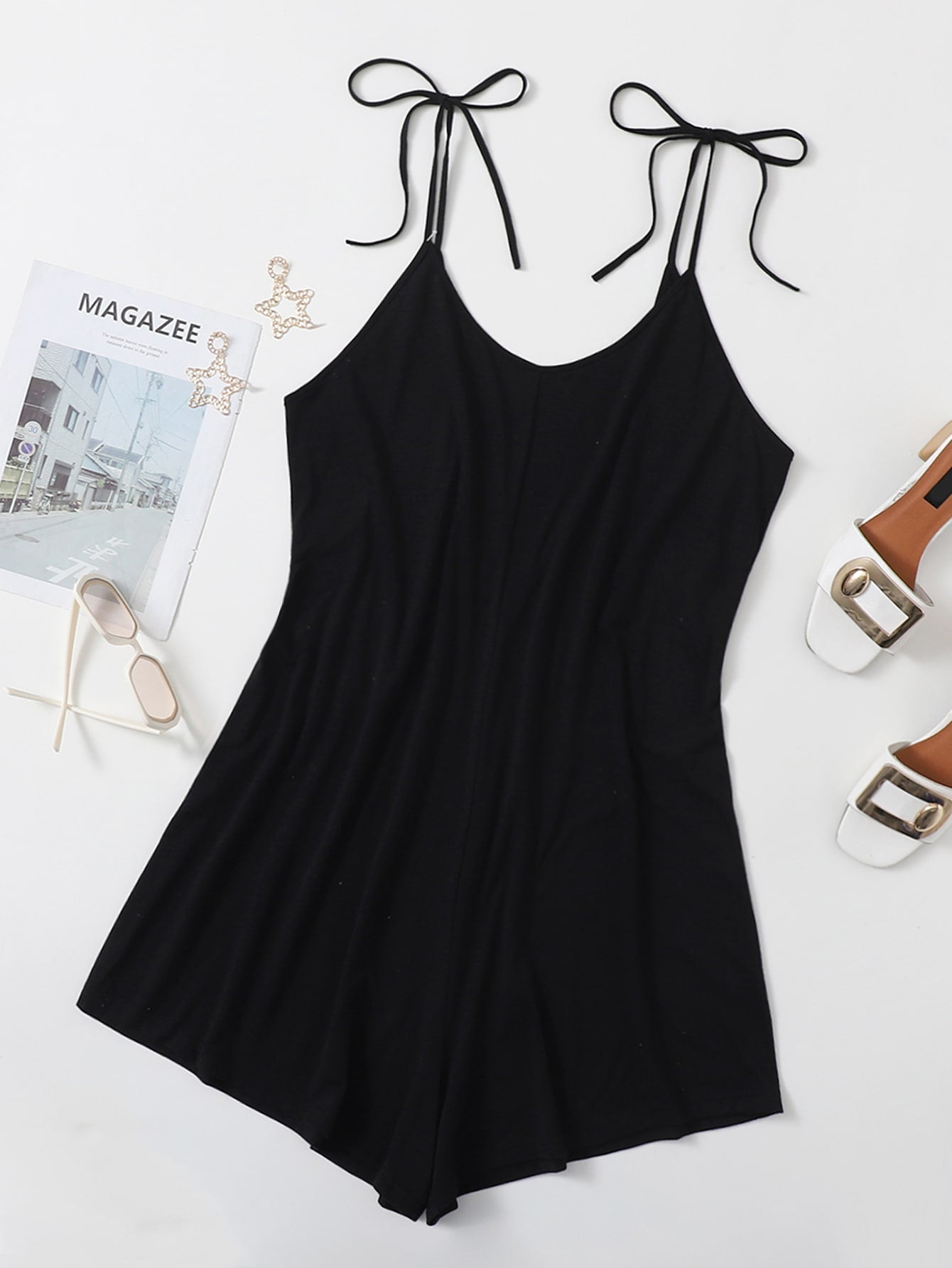 Plus Tie Shoulder Backless Jumpsuit