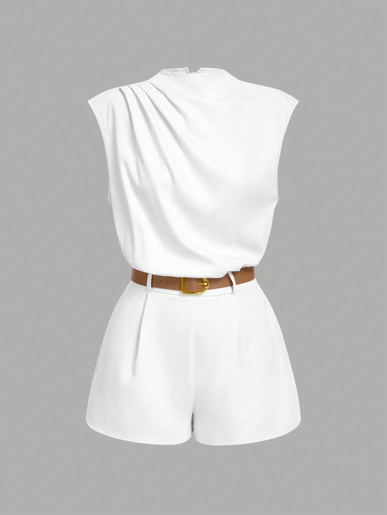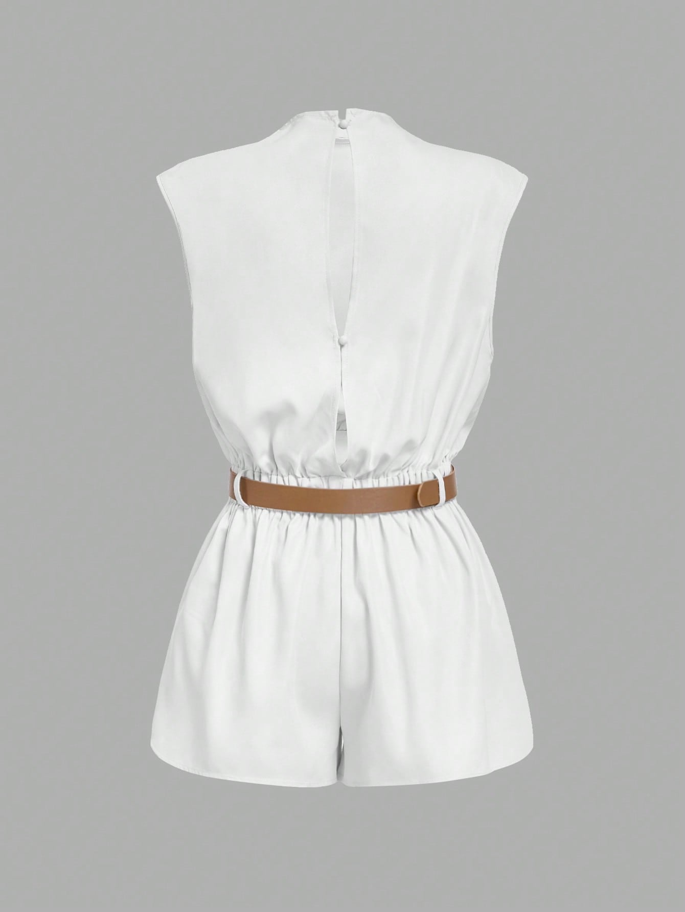 جمبسوت صيفي عصري بياقة عالية وجيوب سادة، بدون حزام