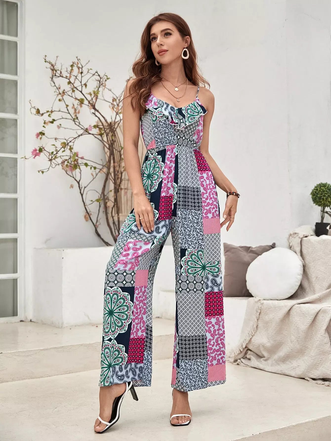 جمبسوت بنقشة مرقعة بطبعة كشكش بتفاصيل كشكش