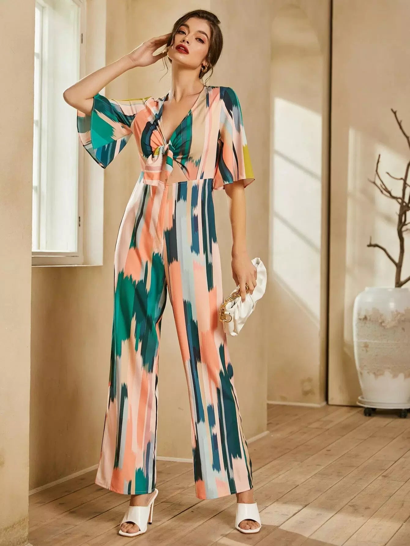 النساء - بذلة أمامية بعقدة عنق عميقة