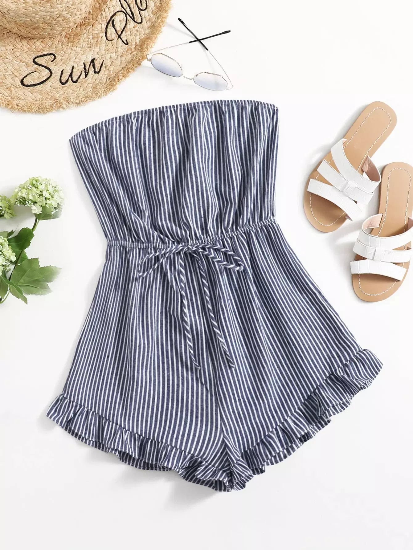 رومبر بحواف مكشكشة مخططة على شكل أنبوبي