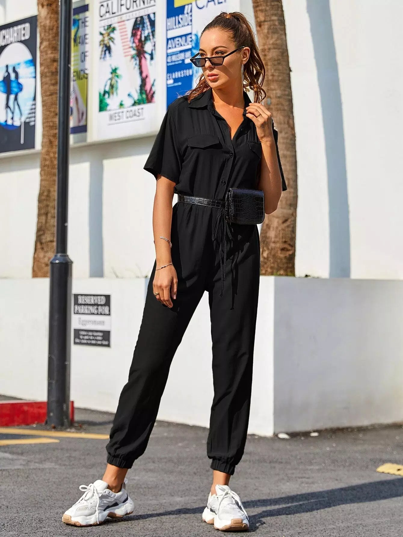 بذلة قميص برباط خصر سادة بدون حقيبة