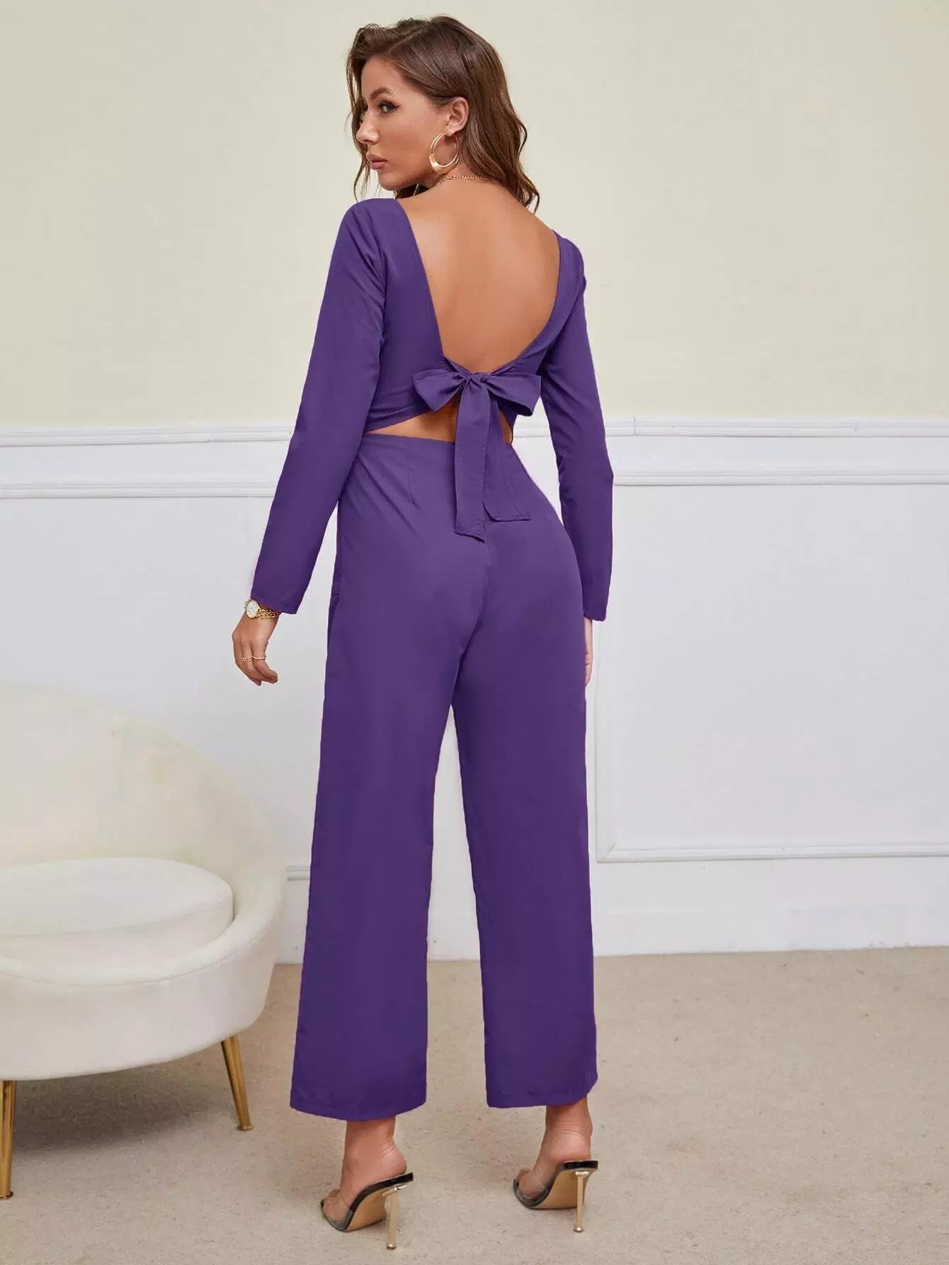جمبسوت بفتحة رقبة مربعة وربطة ظهر وجيب مائل