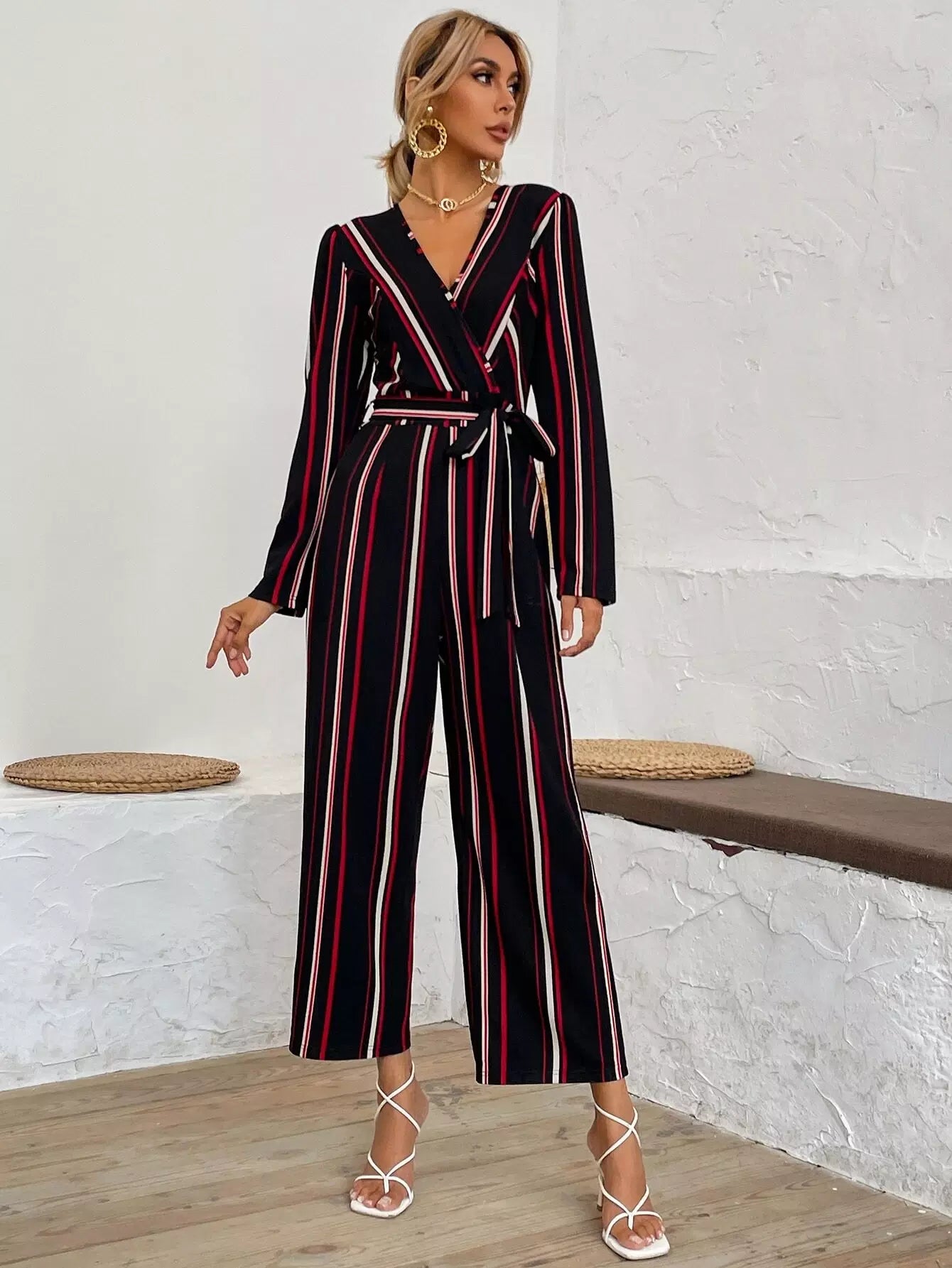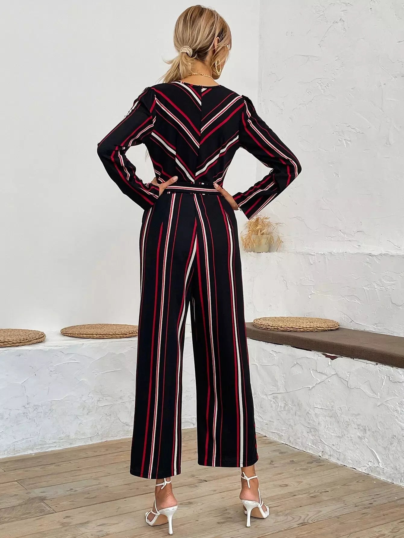 جمبسوت مخطط بأرجل واسعة بدون حزام