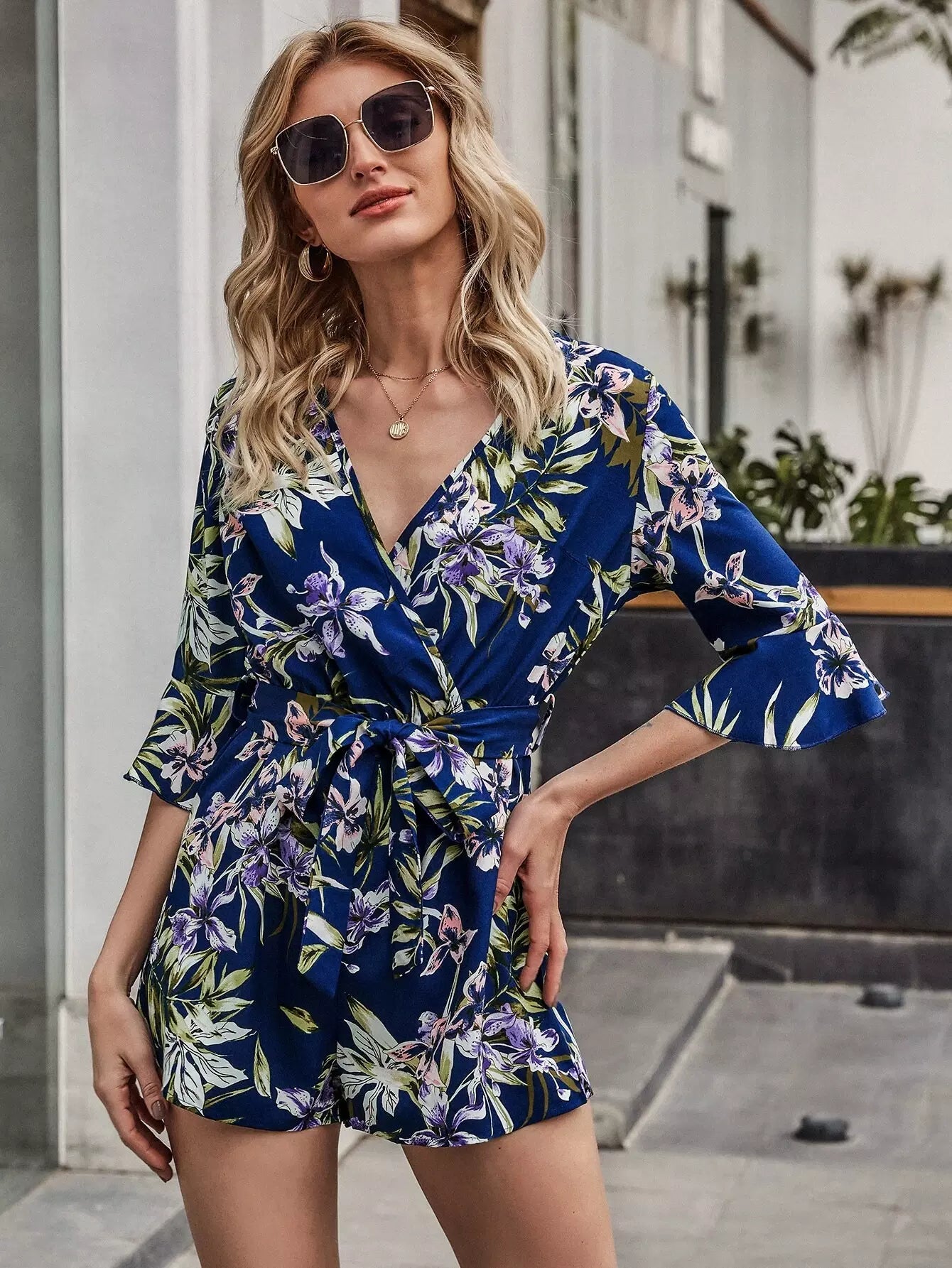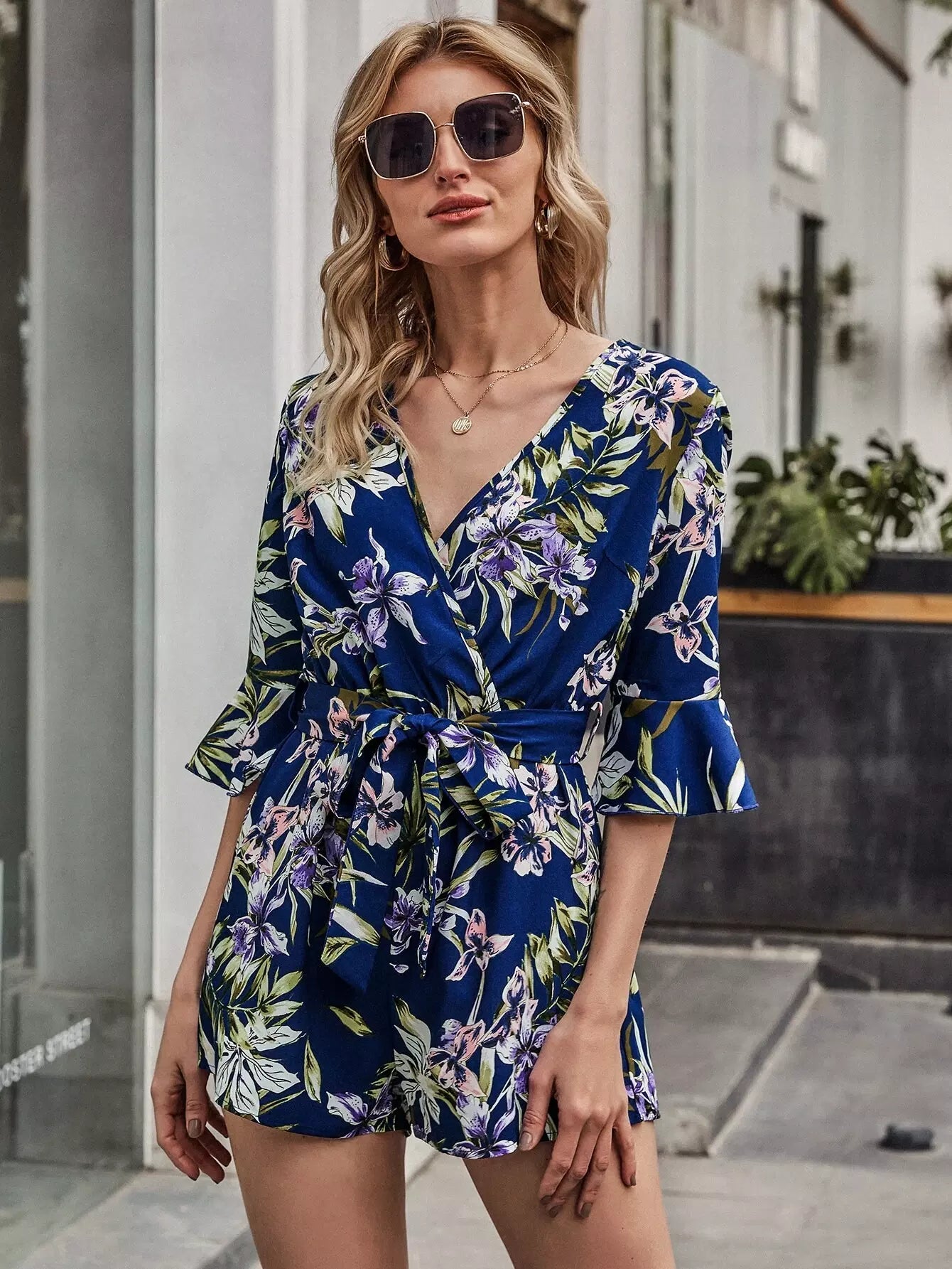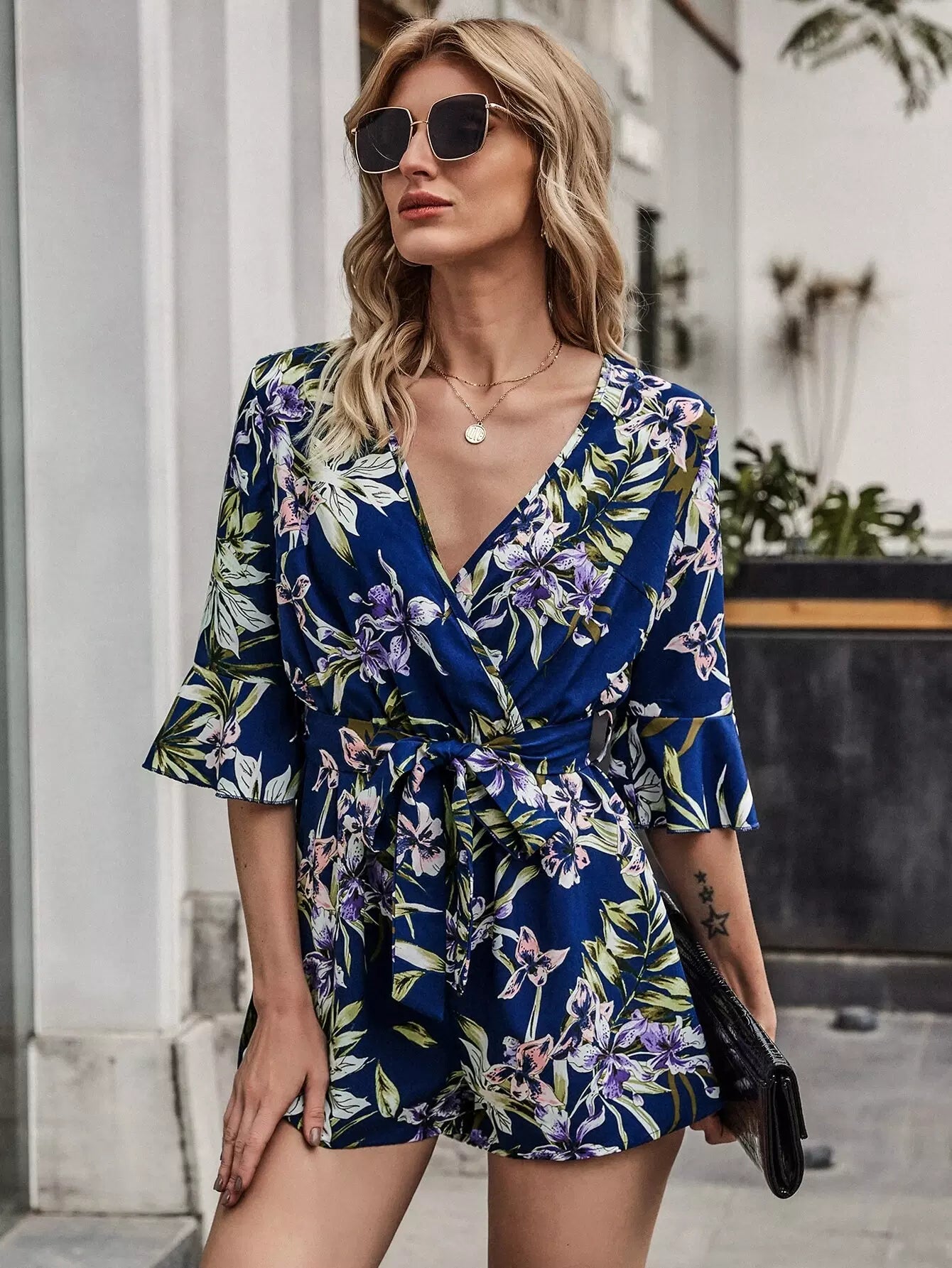 رومبير بطبعة زهور أمامية من Surplice بدون حزام