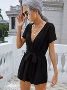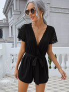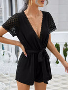 النساء - رومبر برقبة متباينة وحزام من الدانتيل