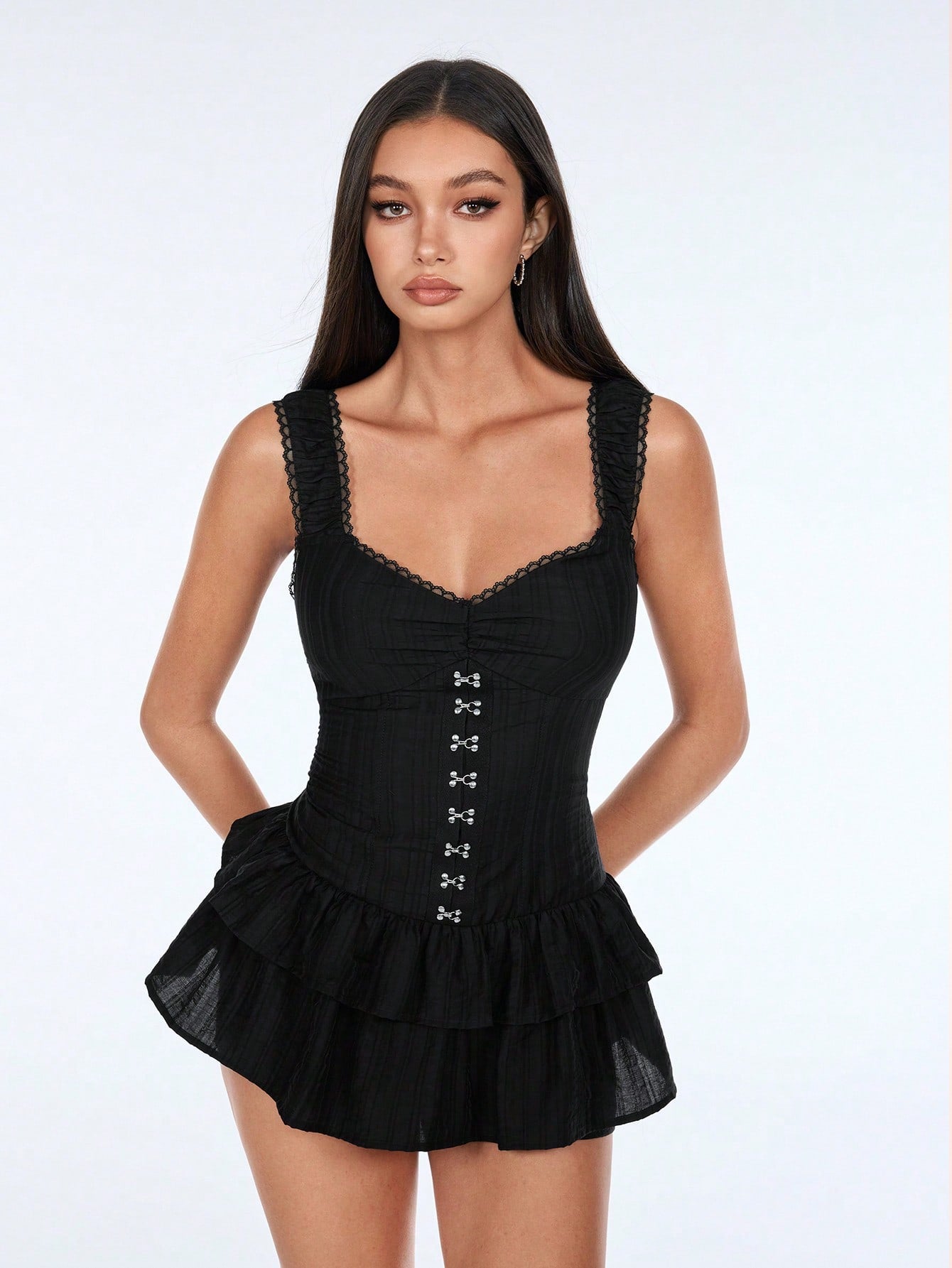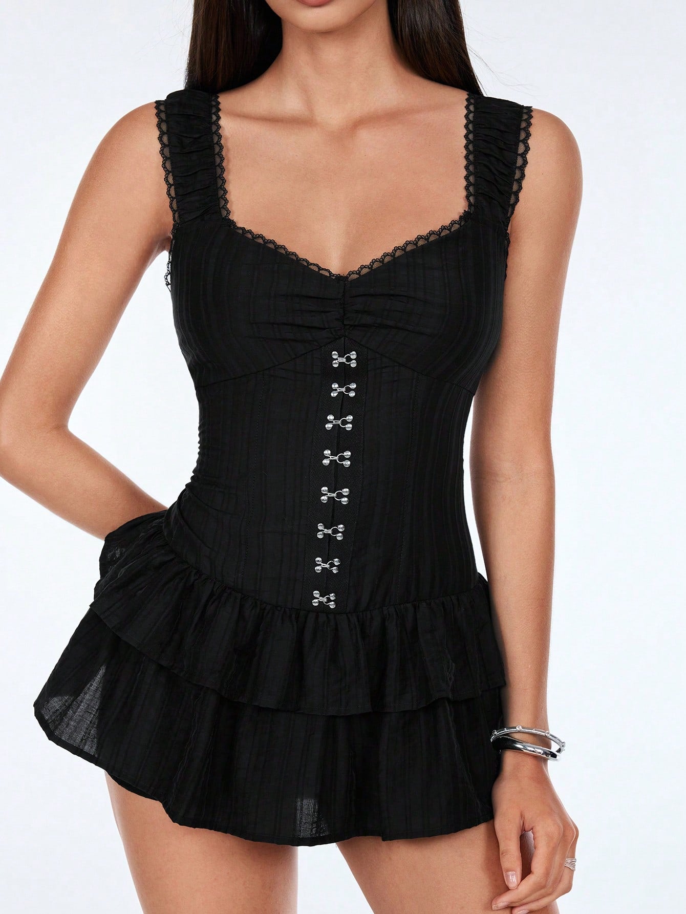 TRNVIE Striped Sleeveless Layered Super Short Mini Jumpsuit, Spring/Summer