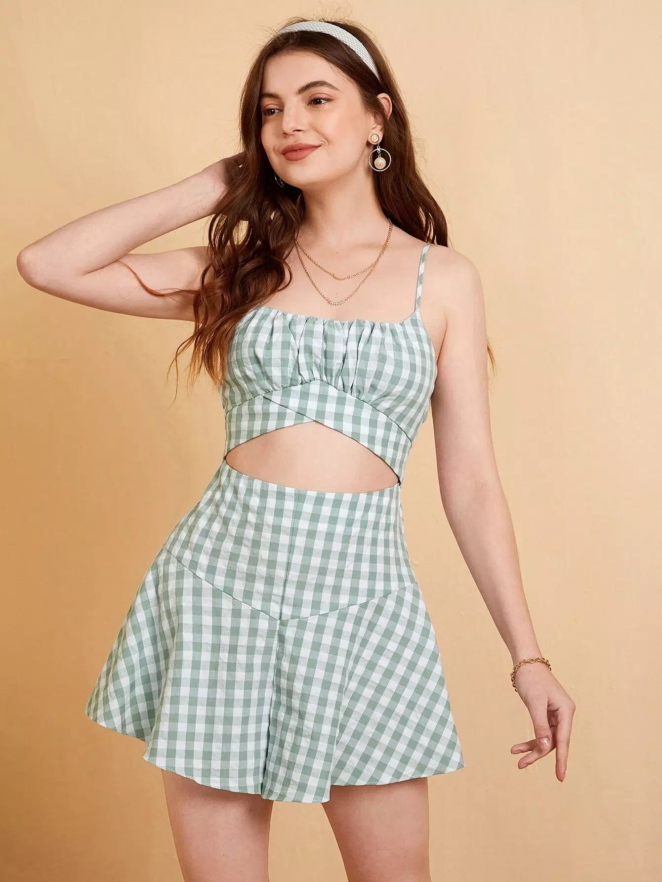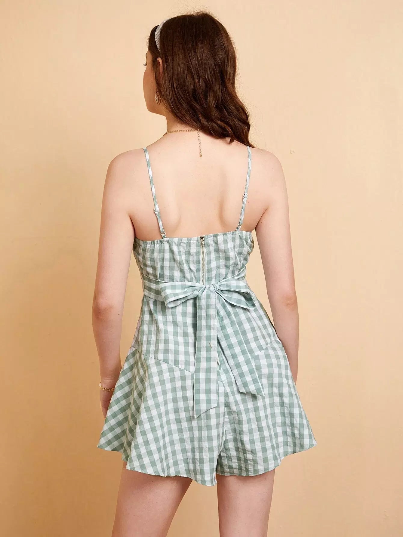 للنساء - رومبر بسحاب ورباط خلفي مكشكش، صدرية بيكابو من القماش القطني سهلة الارتداء
