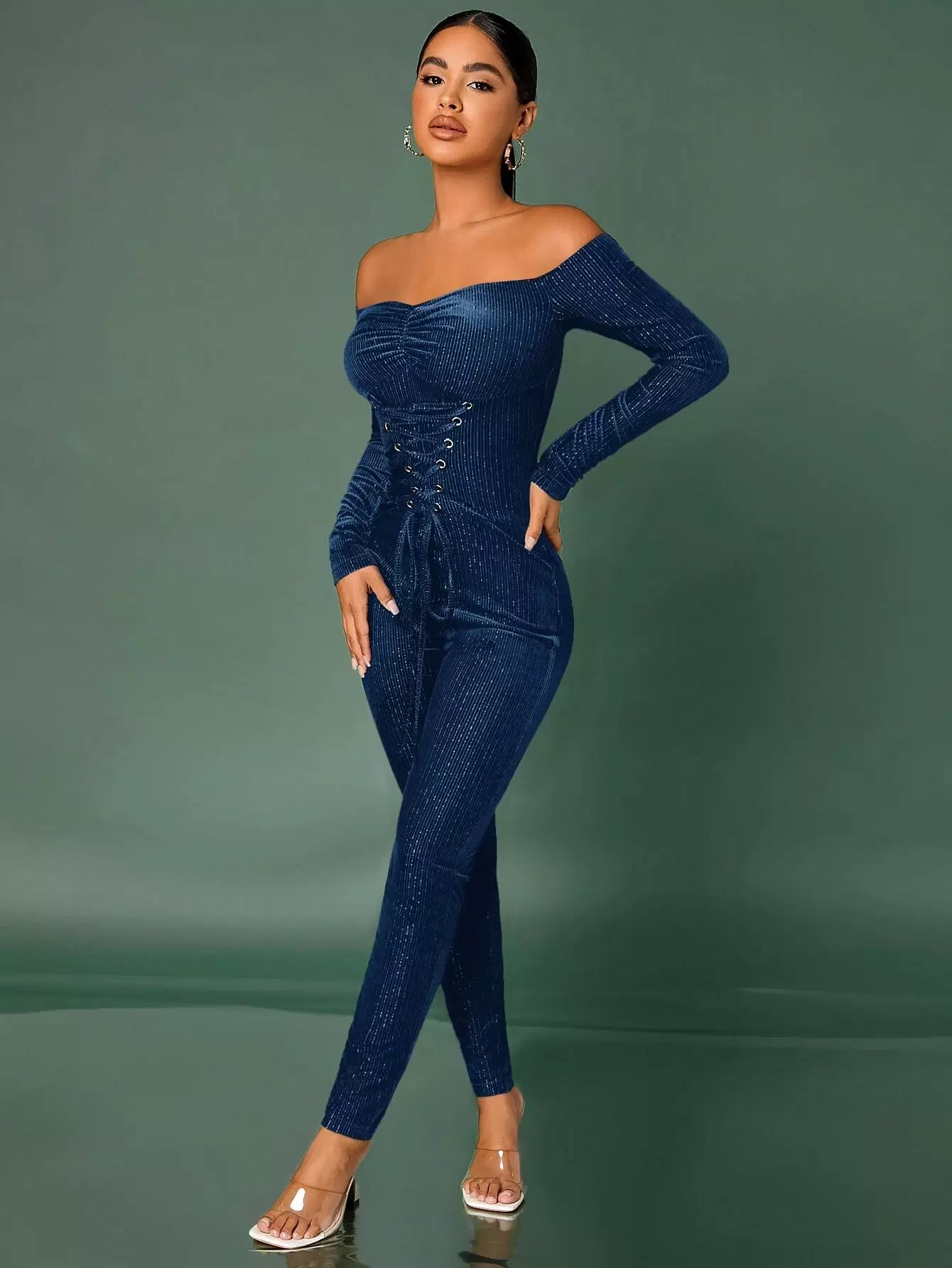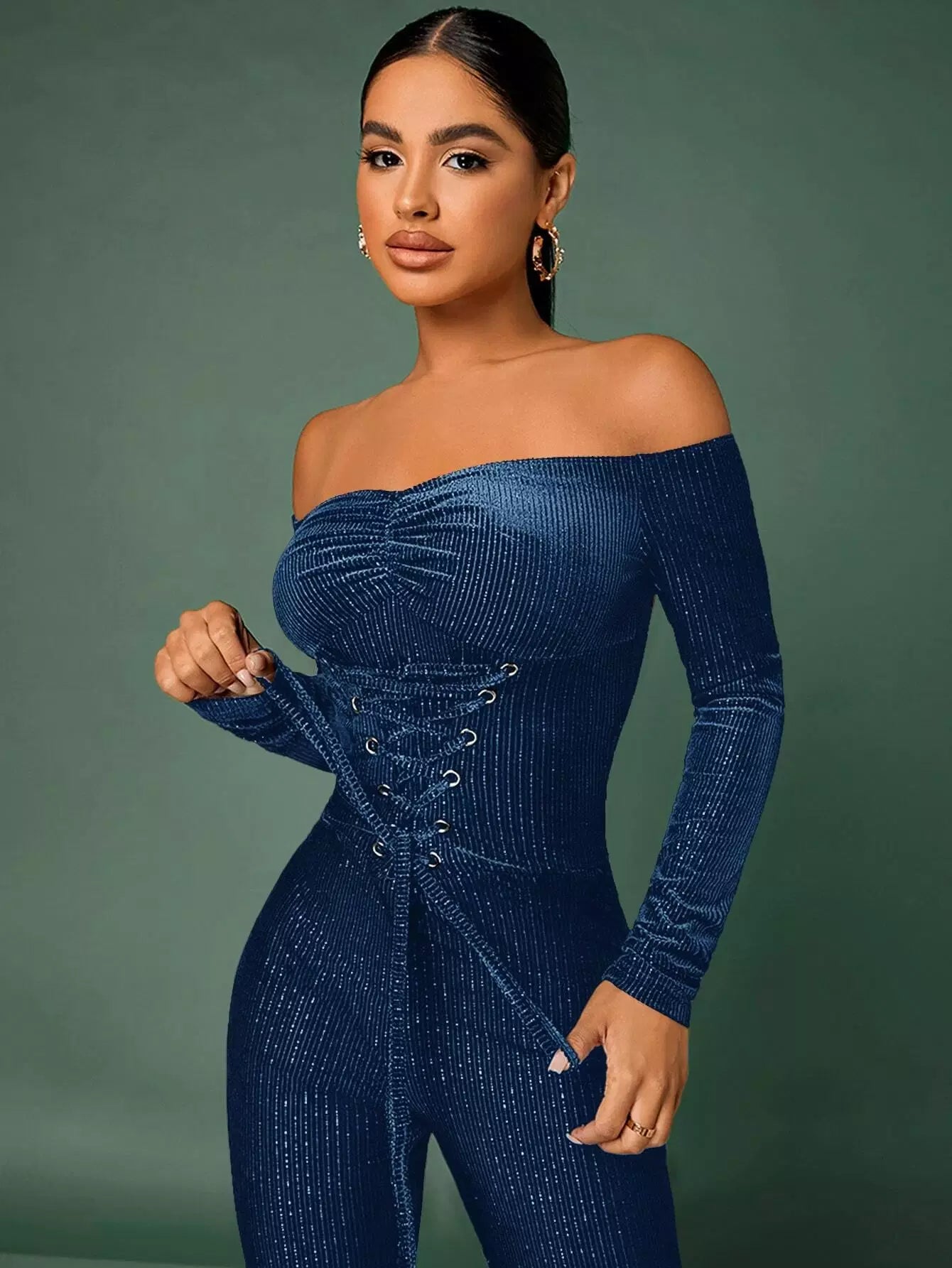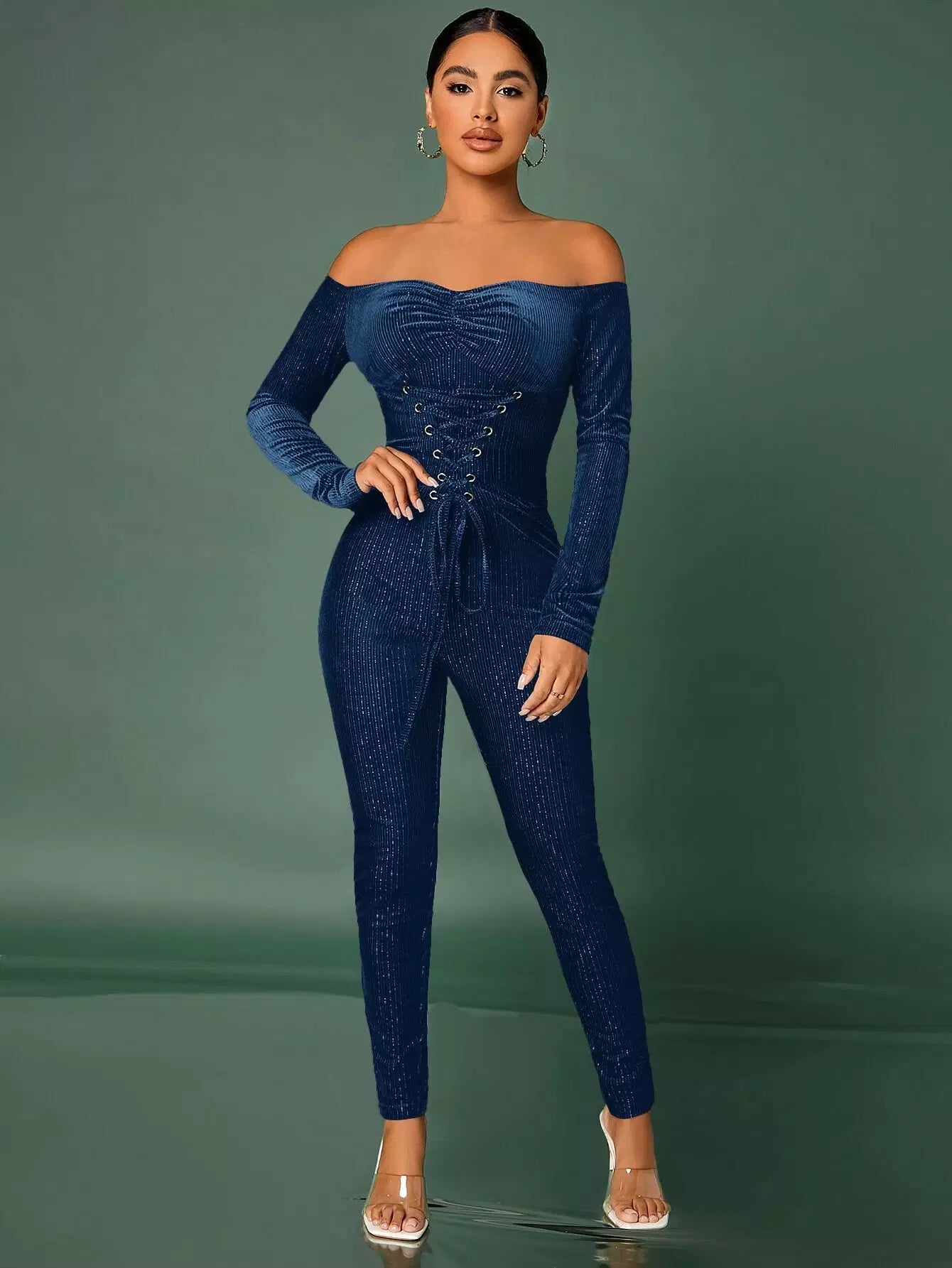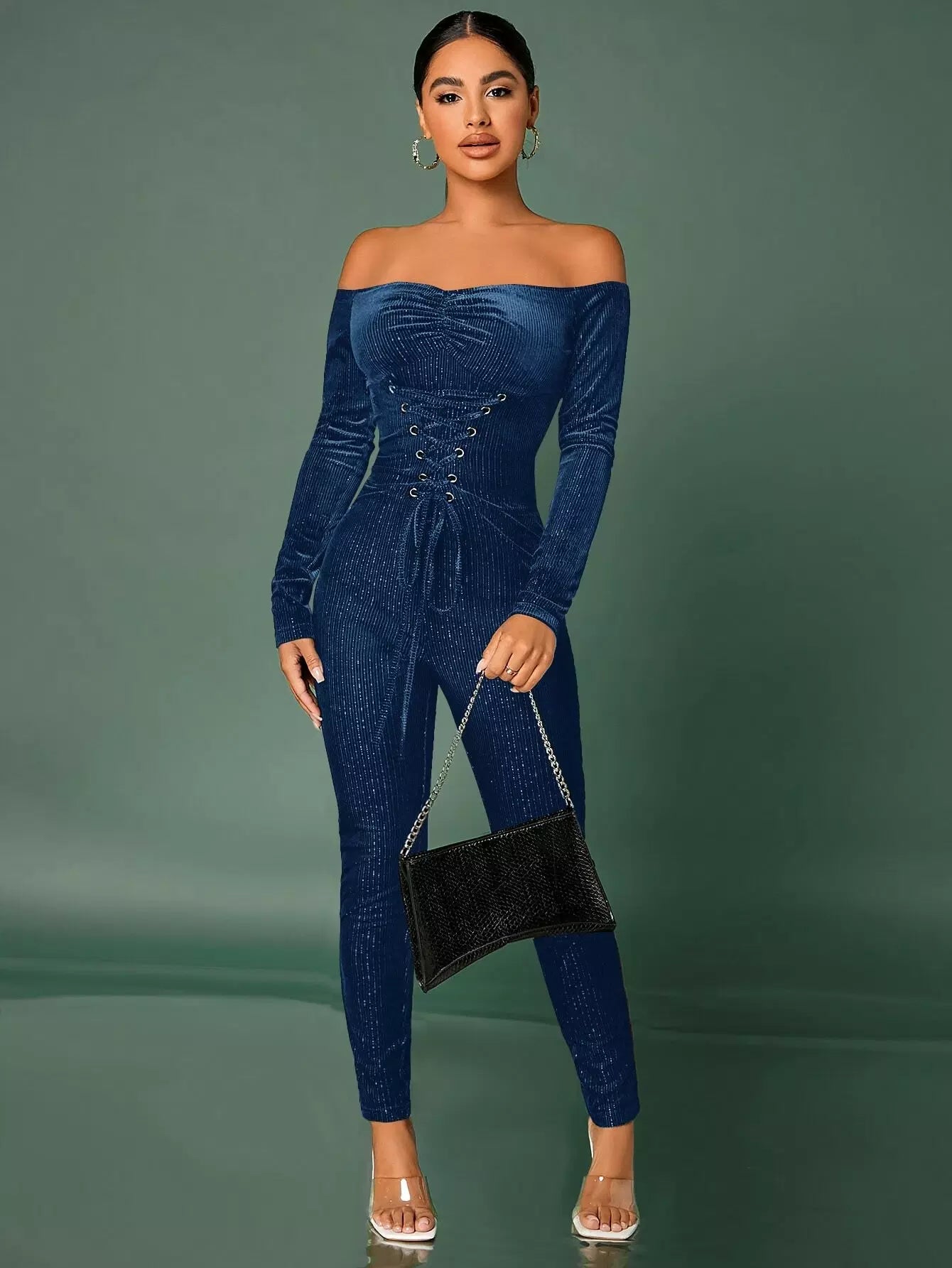 جمبسوت جمبسوت مخملي برباط من الأمام برباط من الأمام مكشكش من المخمل