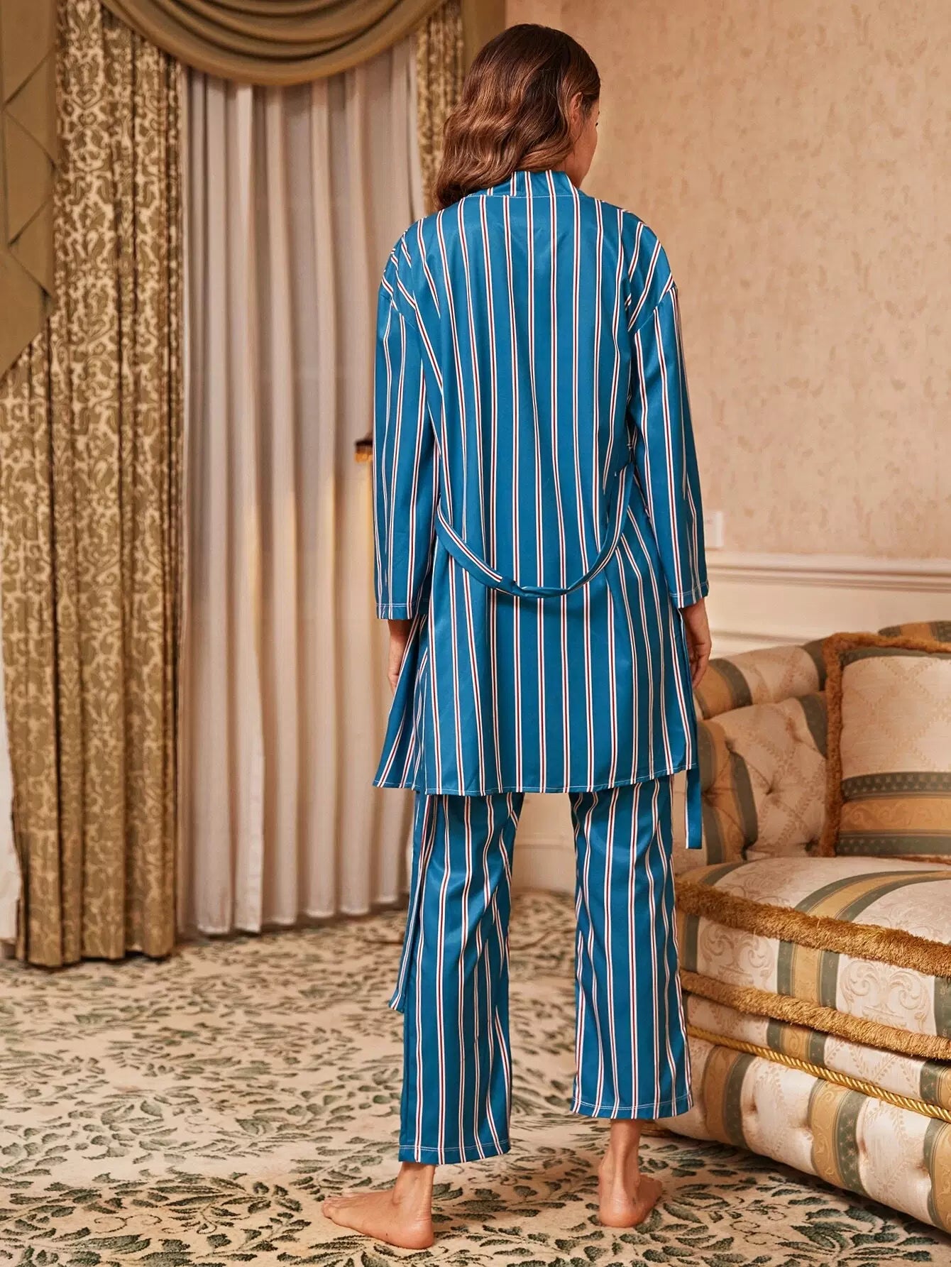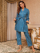 طقم ليلي مكون من 3 قطع من الدانتيل المتباين بدون حزام