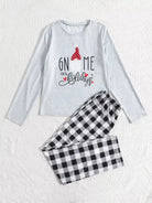 طقم تي شيرت بطبعة كريسماس وبنطال بيجامة بطبعة قماش قطني