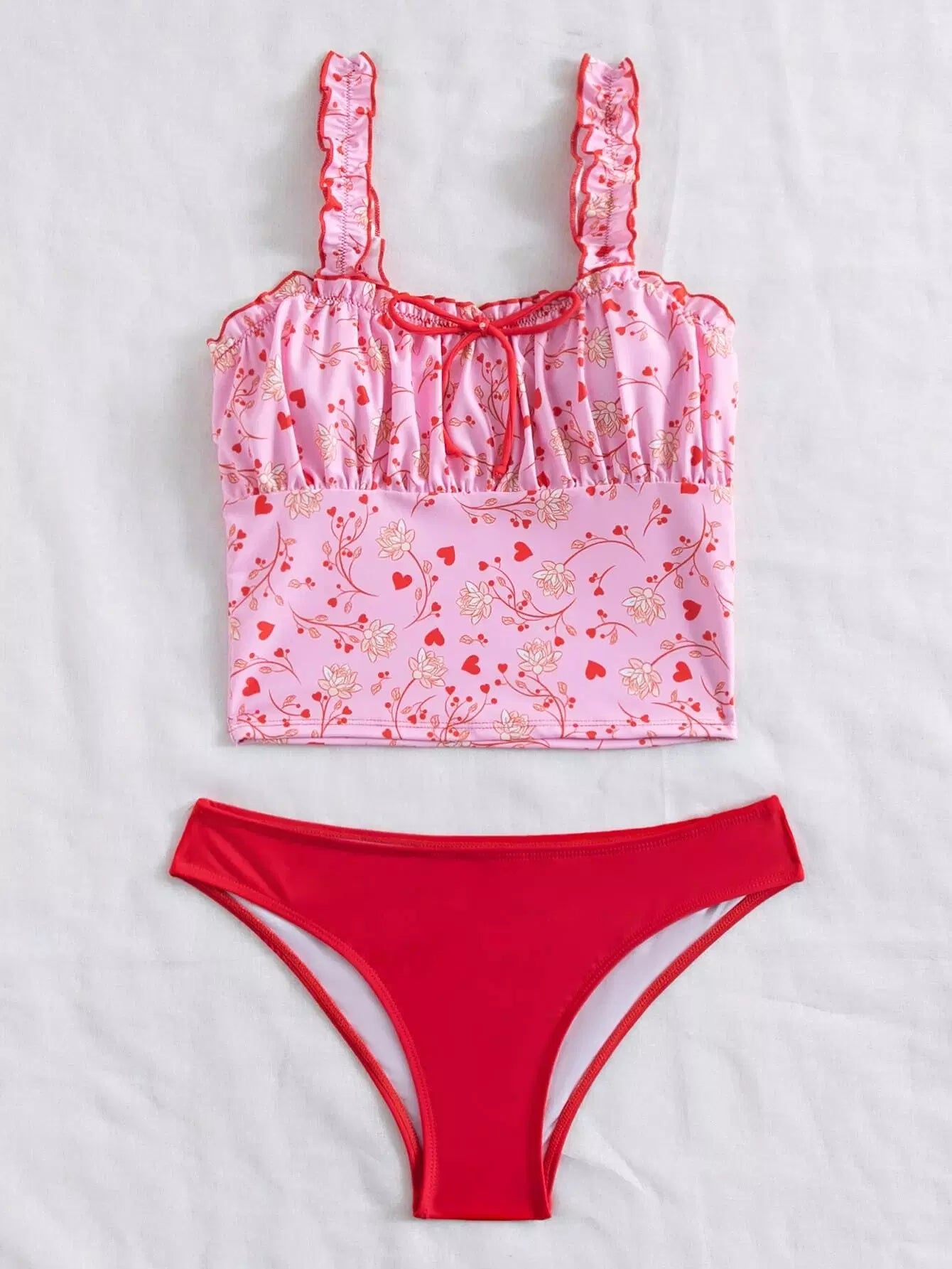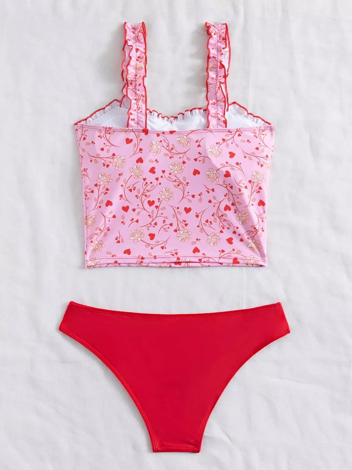 بدلة سباحة بيكيني بعقدة مكشكشة زهرية