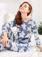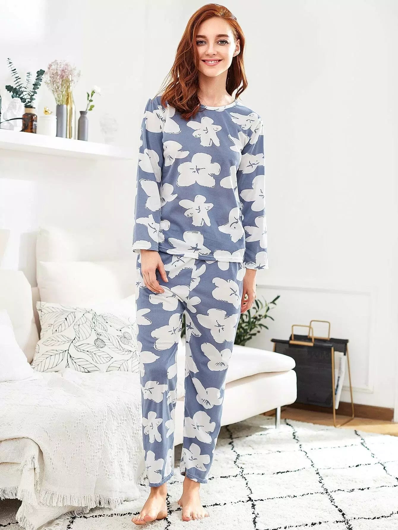 طقم بيجامة مكون من تي شيرت وبنطلون مزين بالزهور