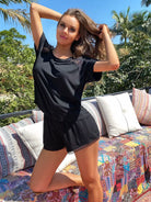طقم تي شيرت وشورت بيجامة بتفاصيل من الدانتيل