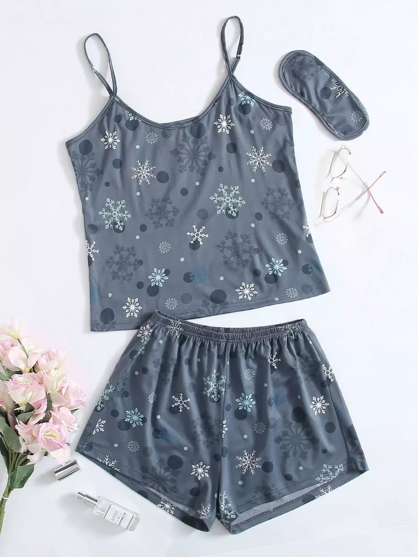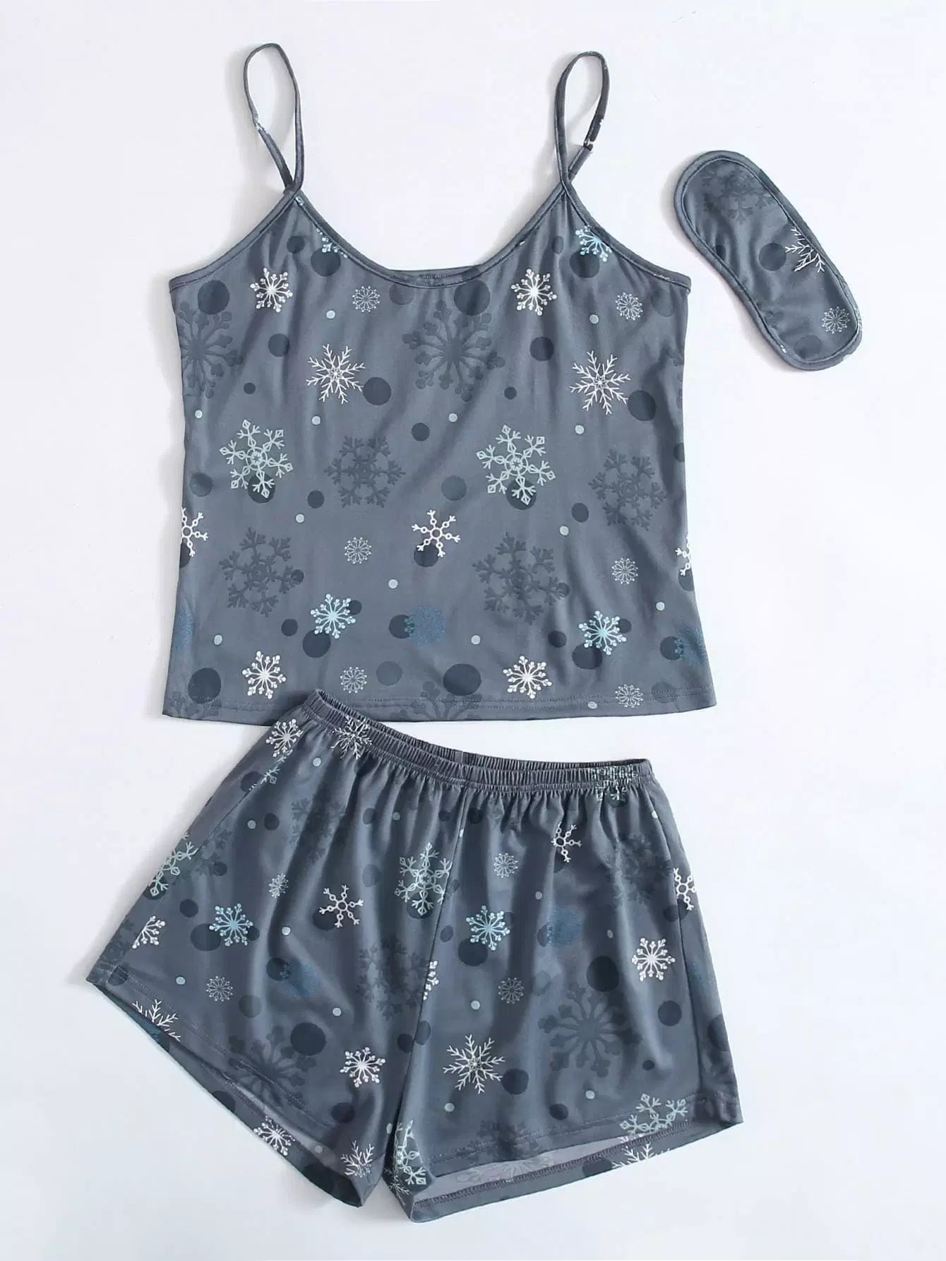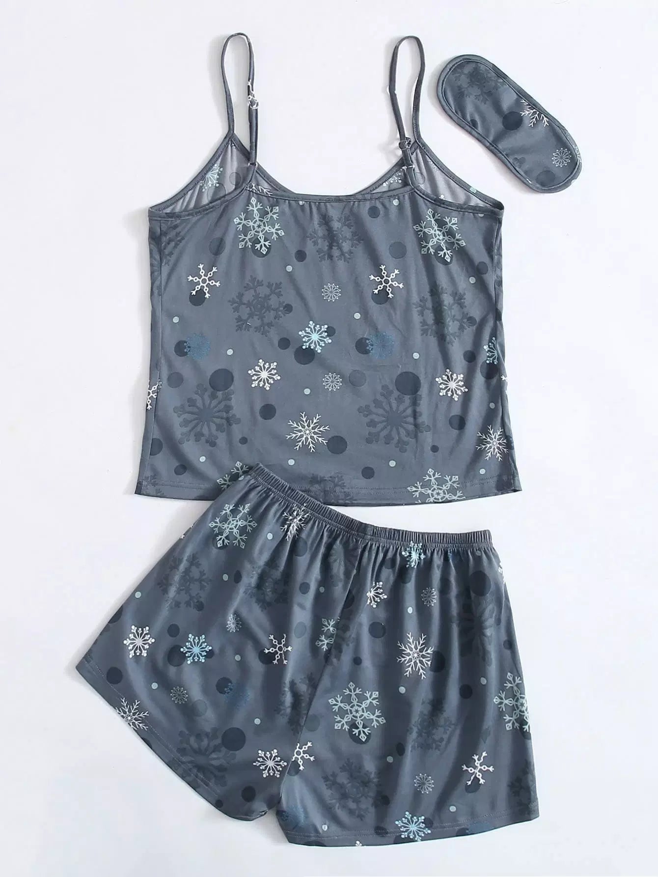 طقم بيجامة كامي بطبعة رقاقات الثلج وغطاء للعينين