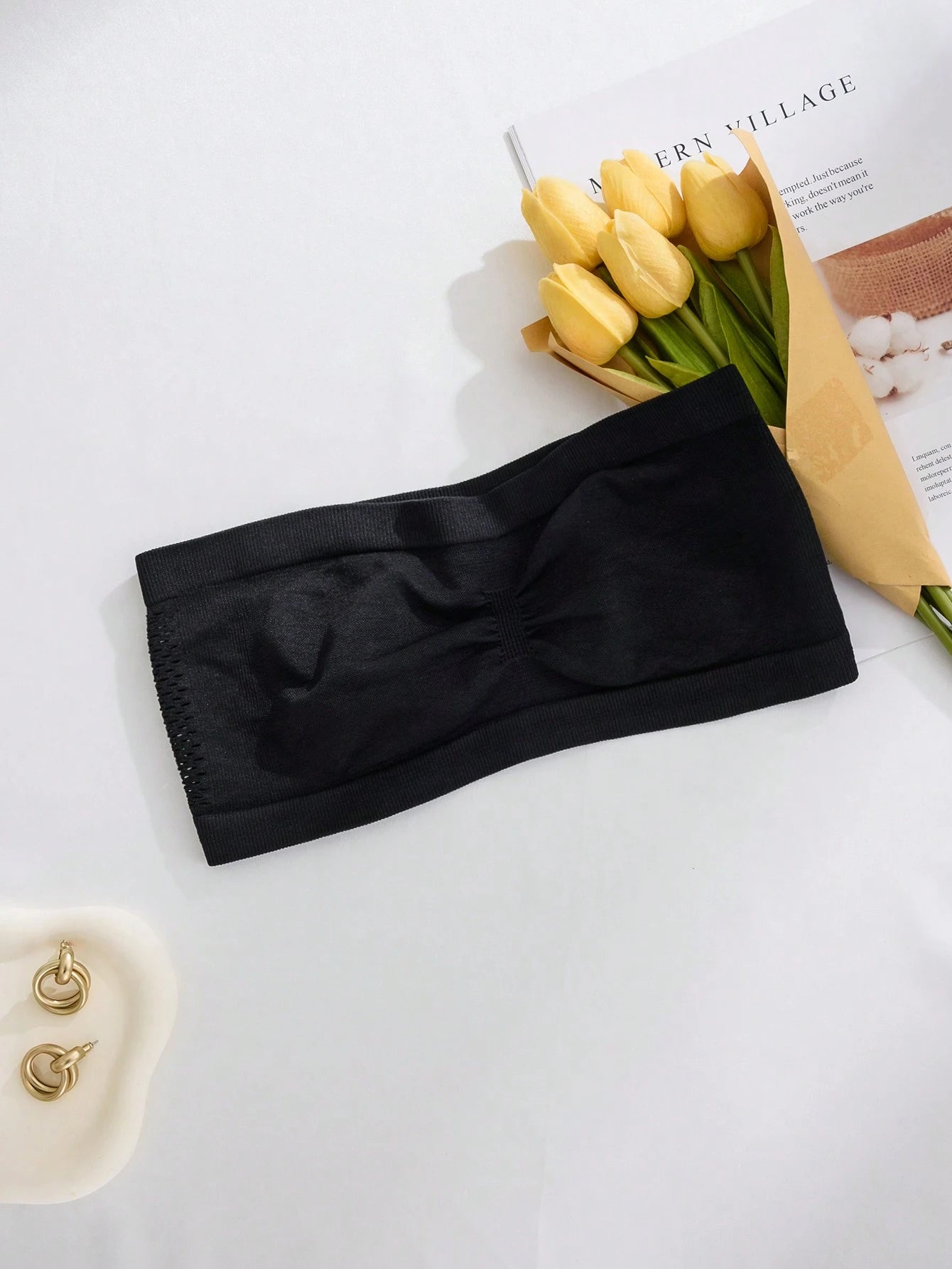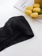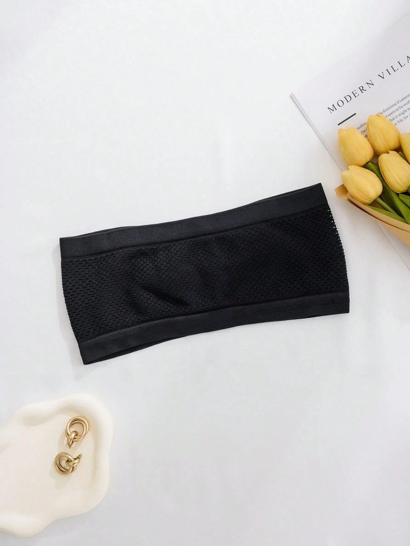 حمالة صدر نسائية سوداء بدون حمالات مع قماش شبكي متوسط التمدد، بتصميم أنبوبي مريح وعملي.