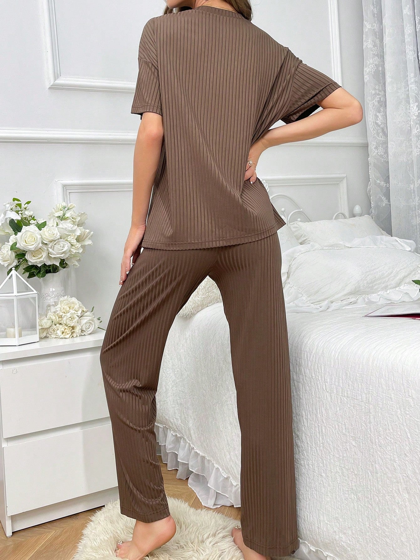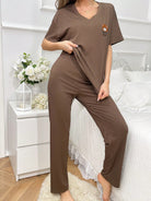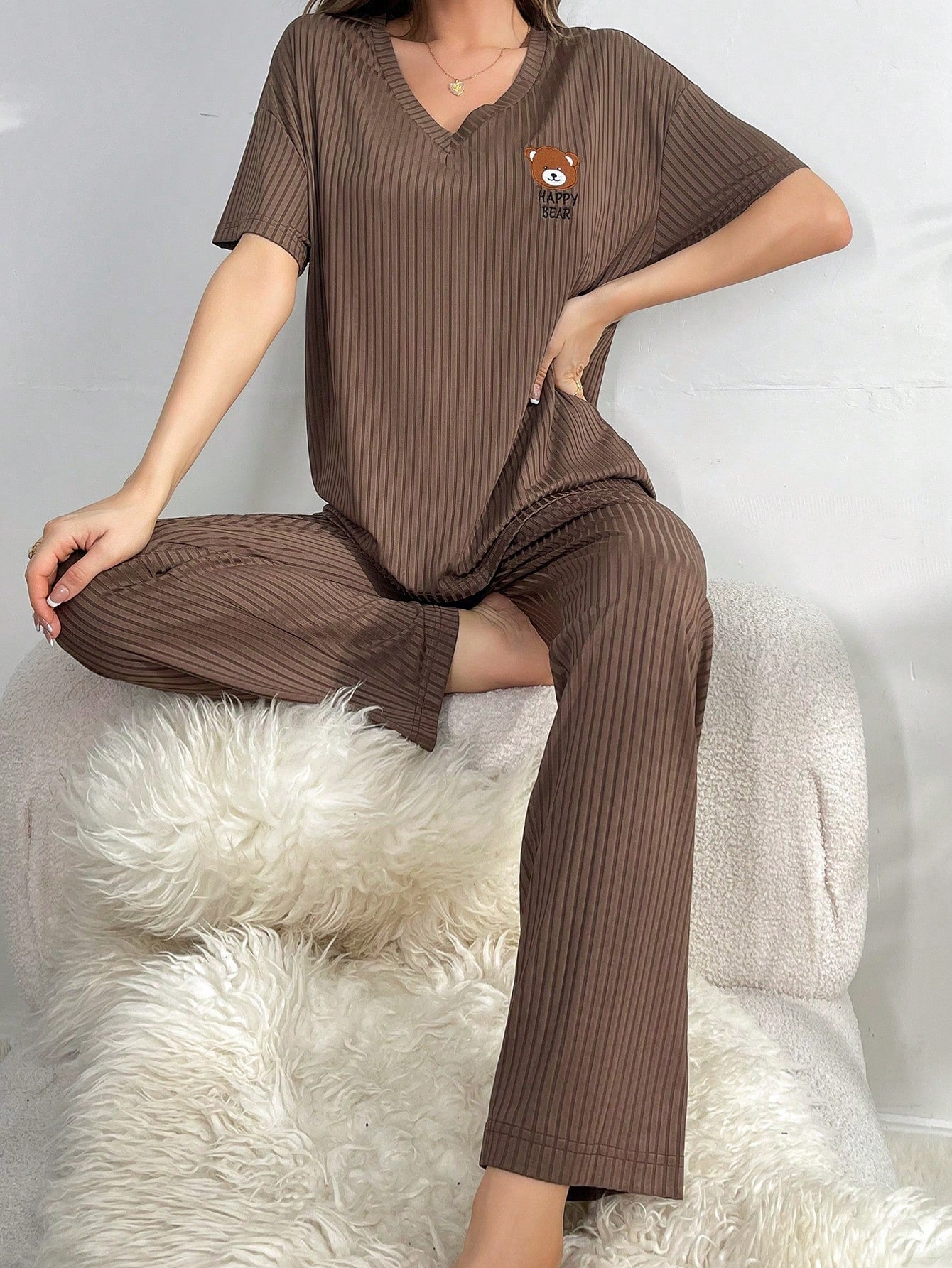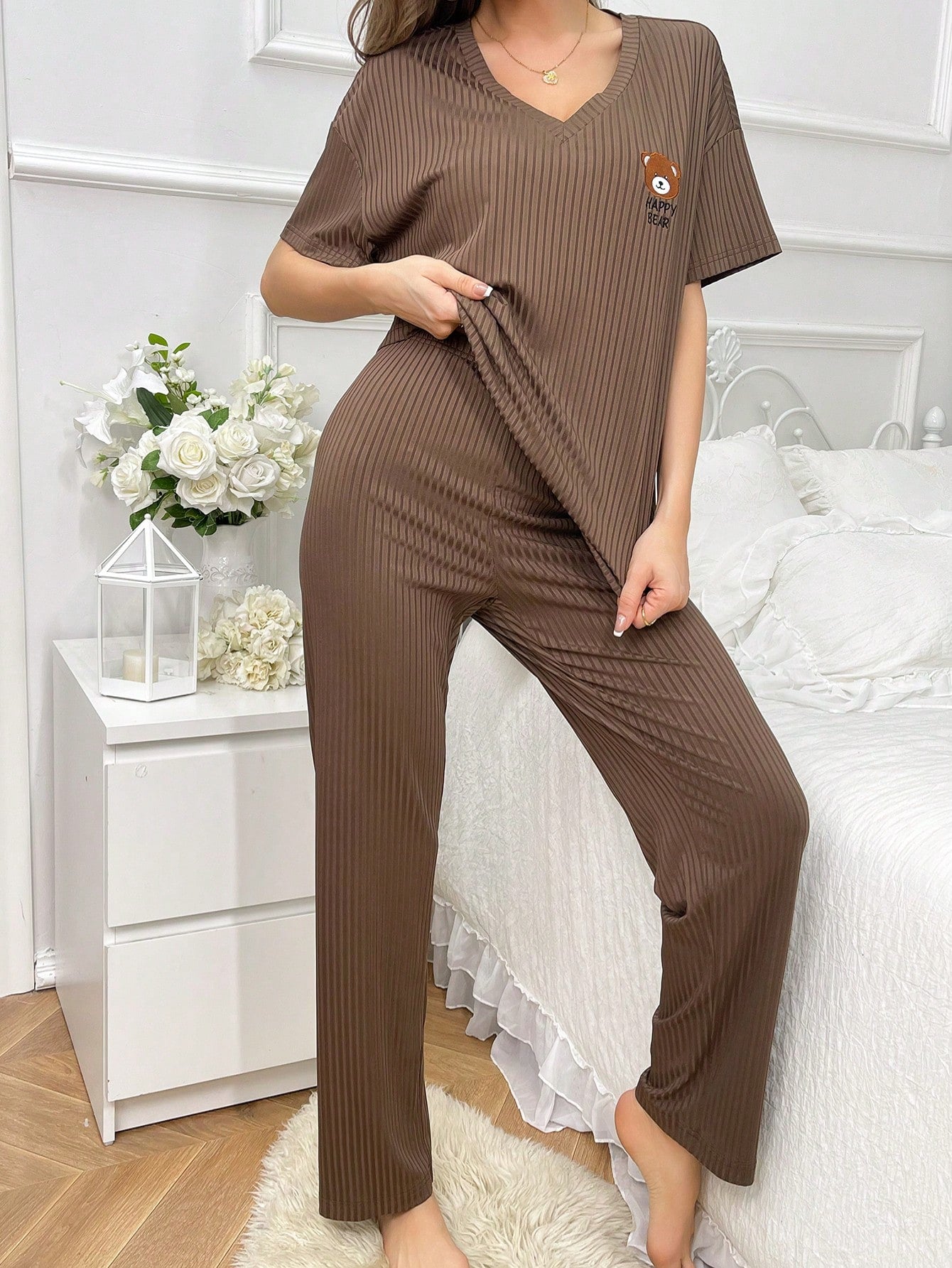 طقم بيجاما نسائي مطرز برسومات دب كرتوني