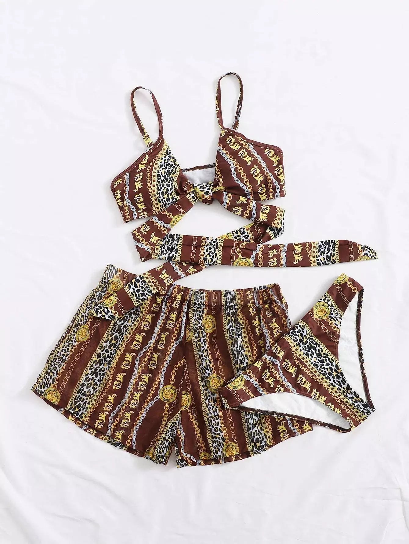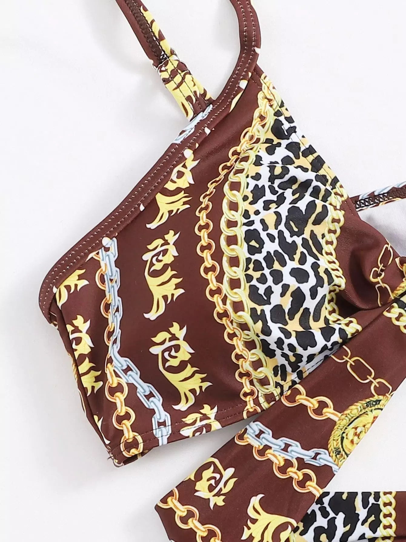 3 عبوات ملابس سباحة بيكيني بعقدة أمامية على شكل سلسلة ونمر