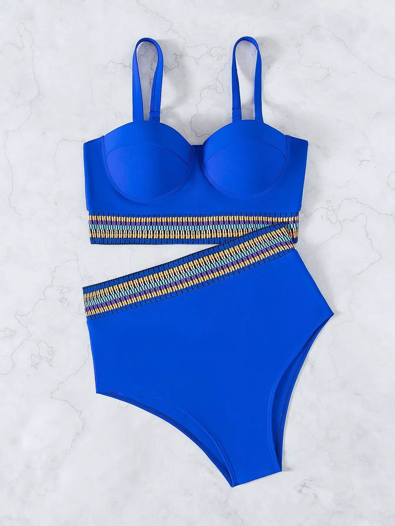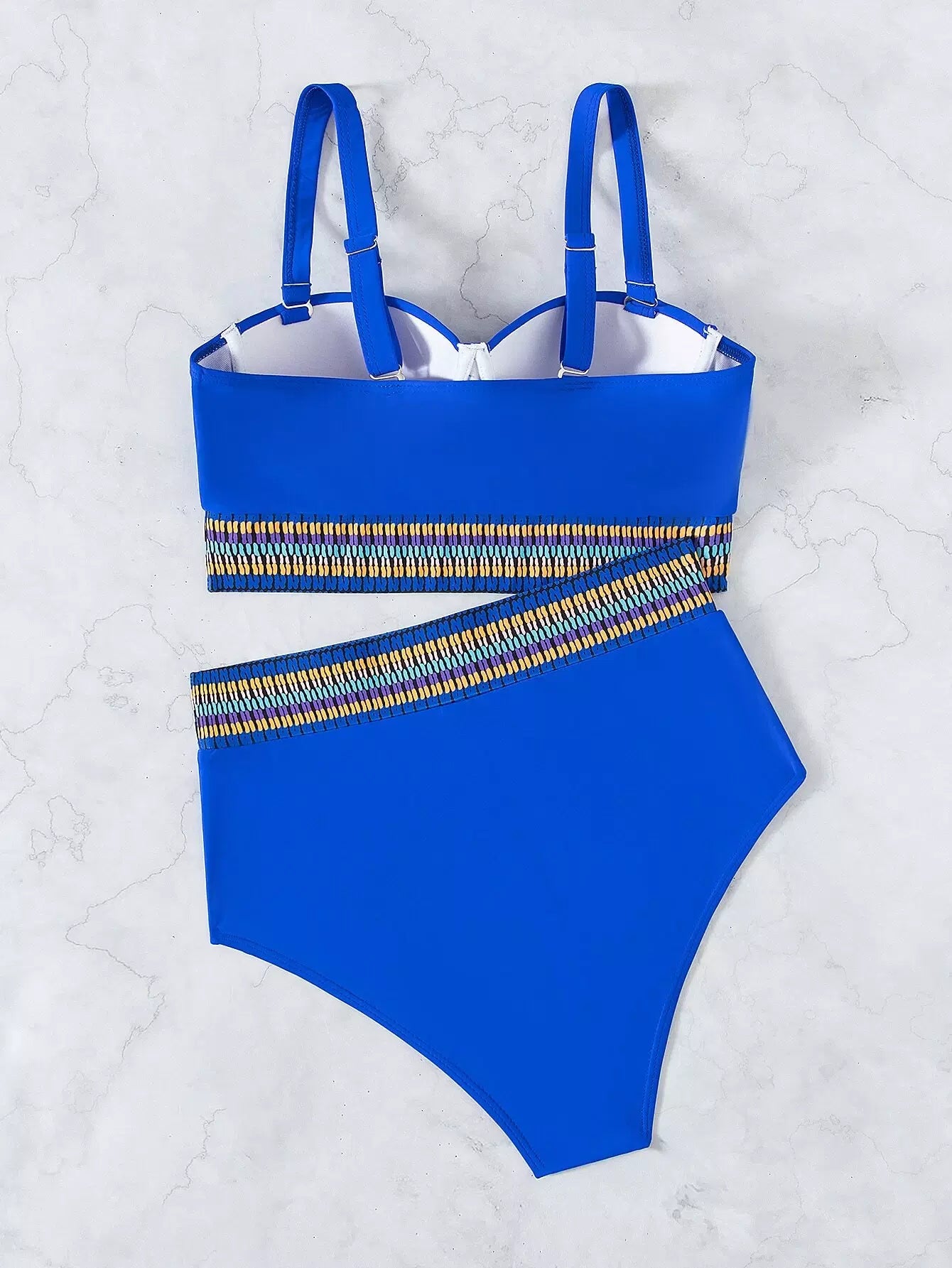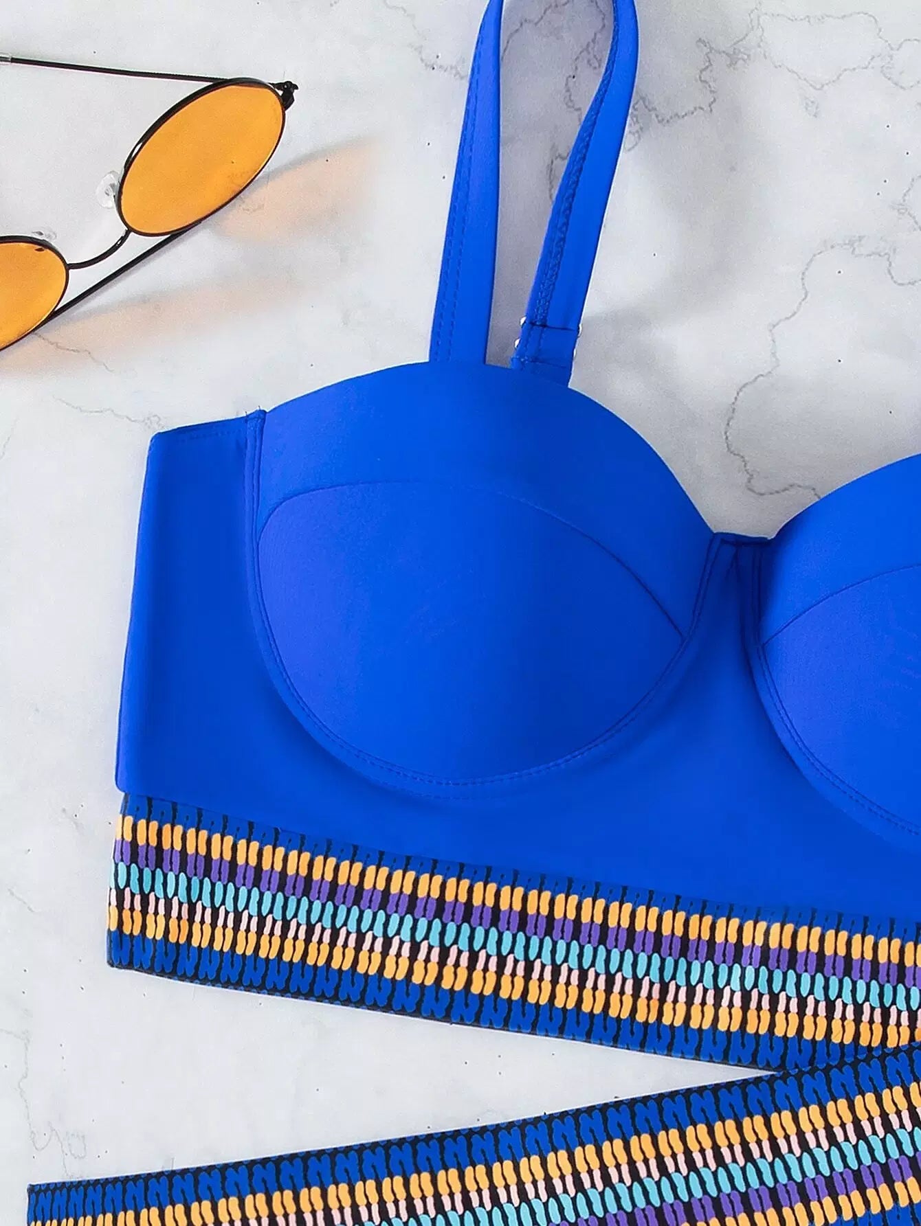 بدلة سباحة بيكيني بحواف متباينة ذات حواف مرتفعة الخصر