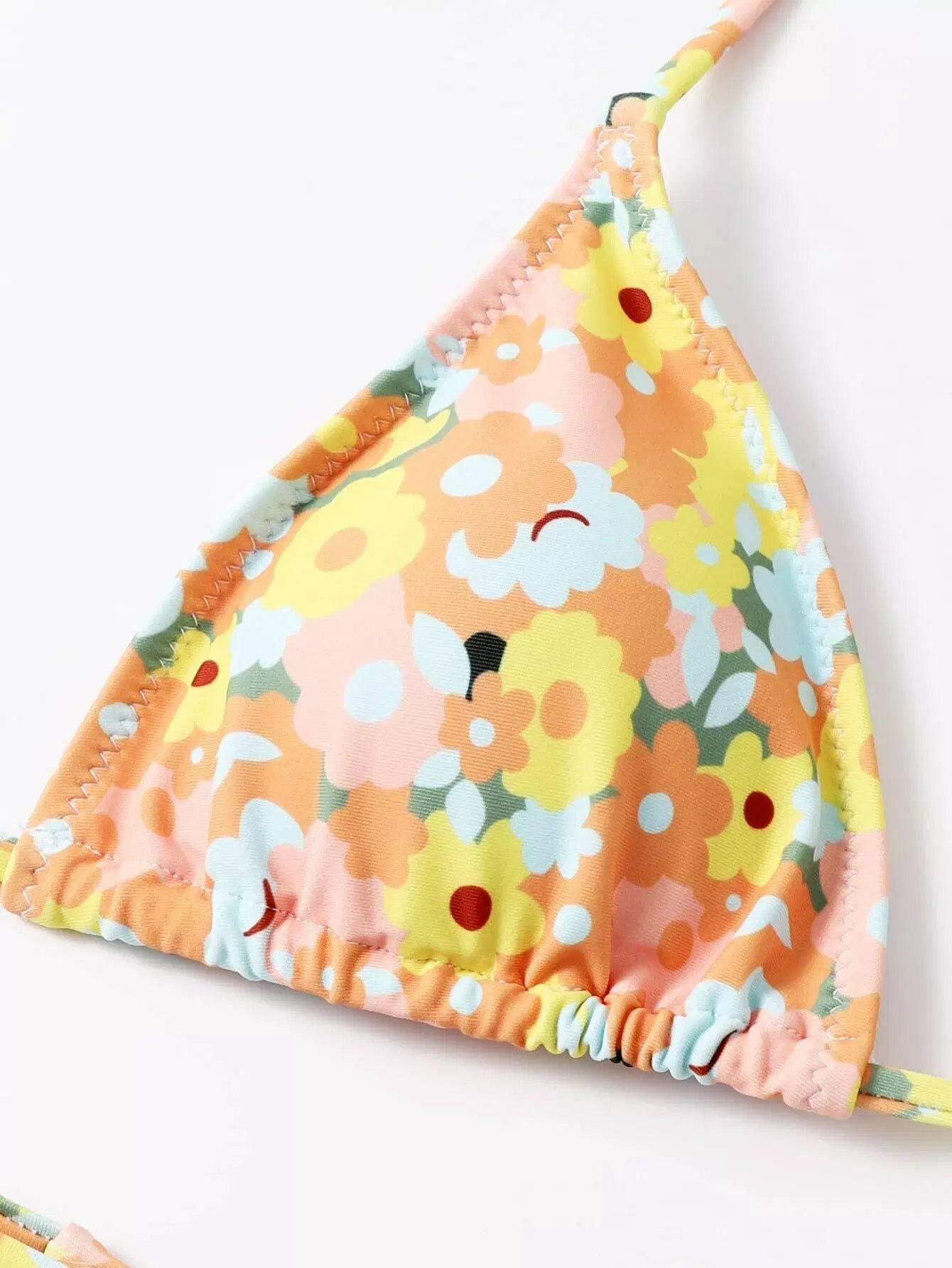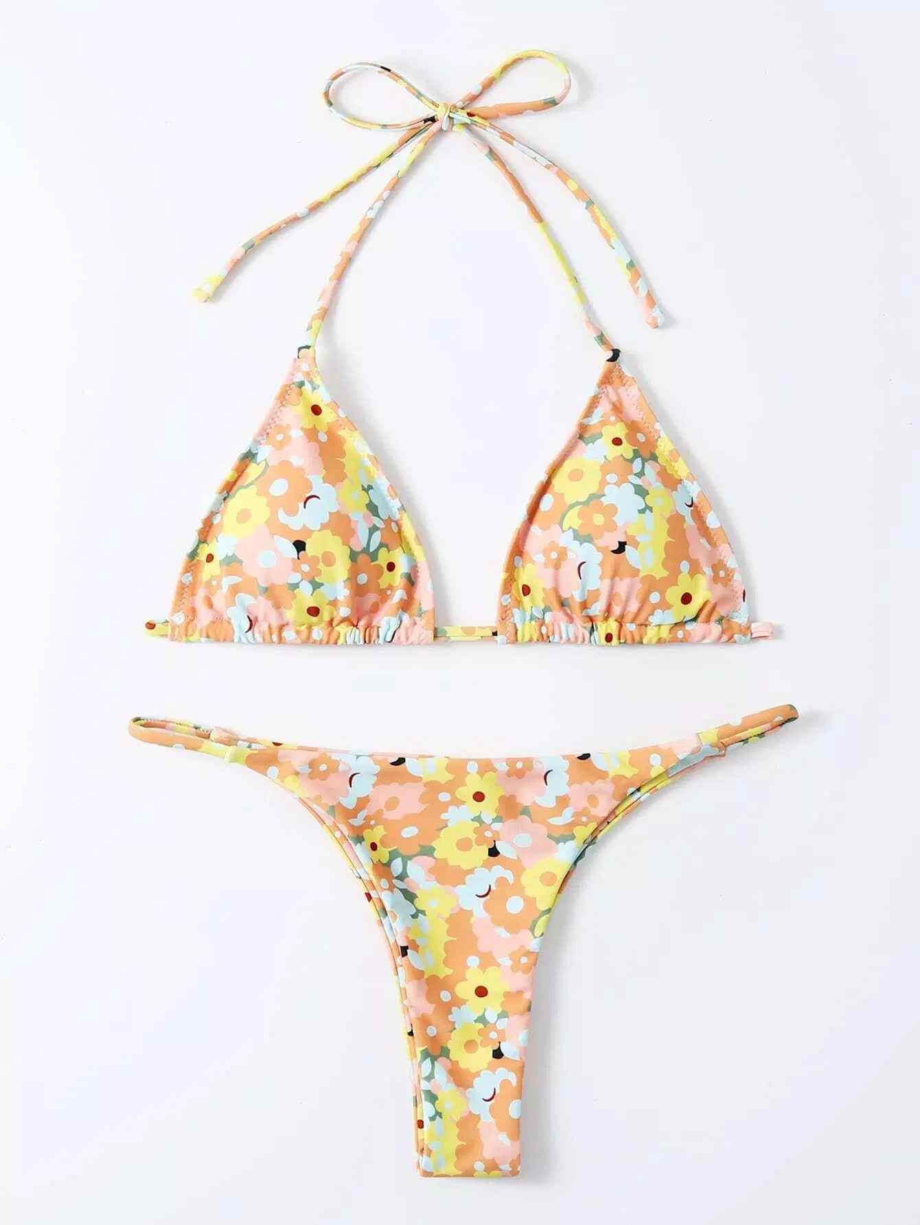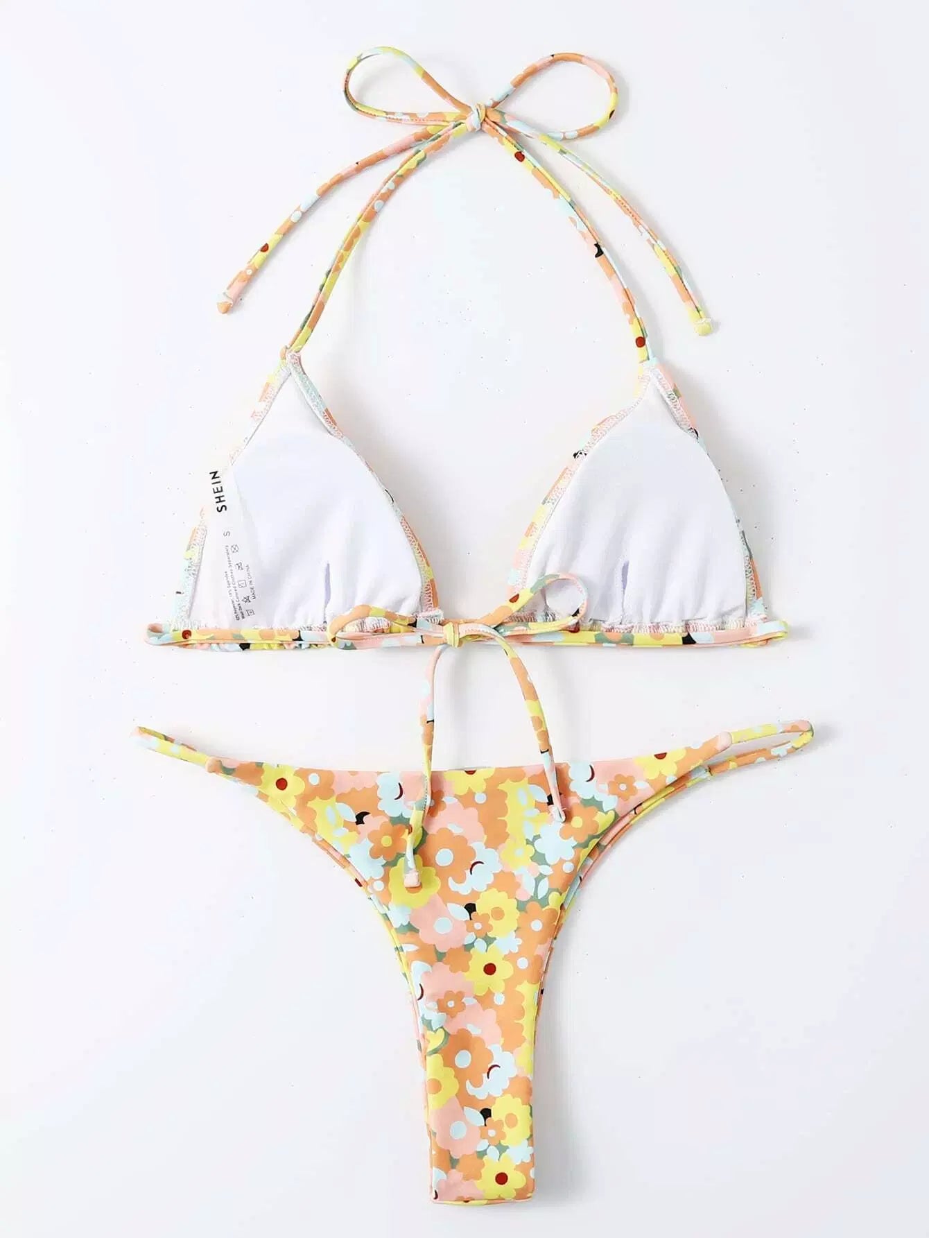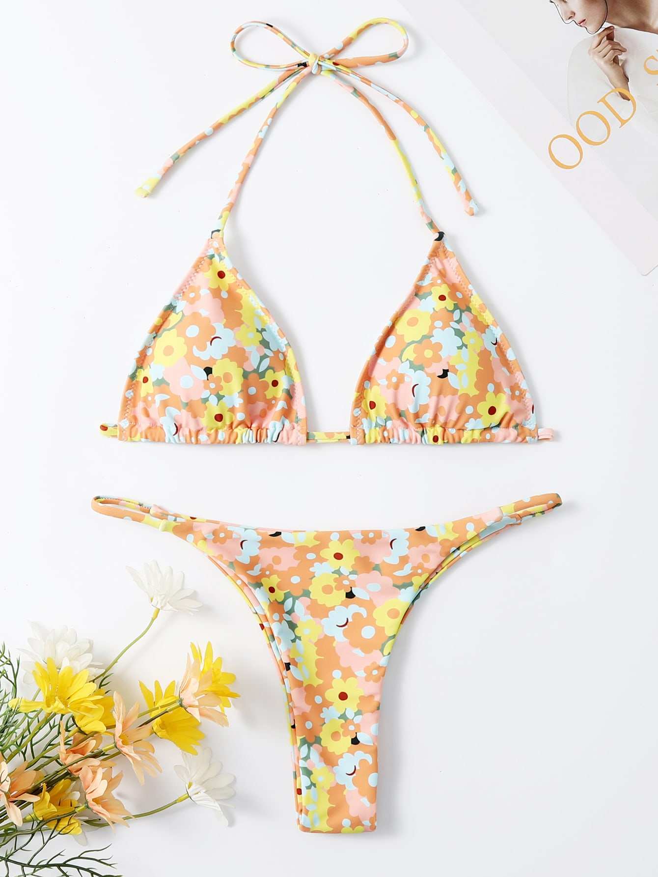 بيكيني سباحة بيكيني بيكيني مثلث صغير مزين بالورود