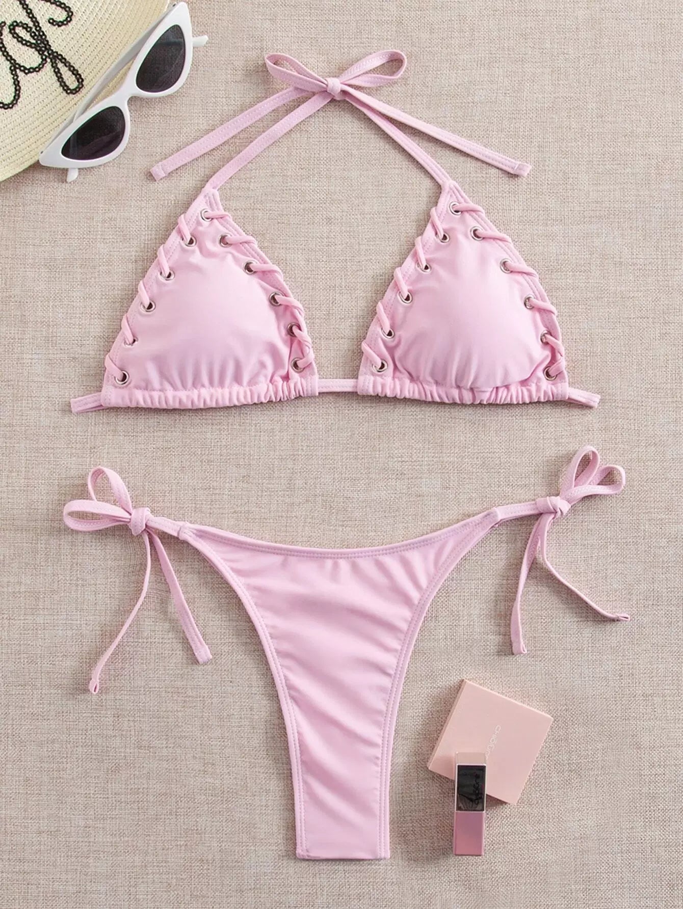 بيكيني سباحة بيكيني بتفاصيل مثلثة على شكل مثلث بربطة جانبية