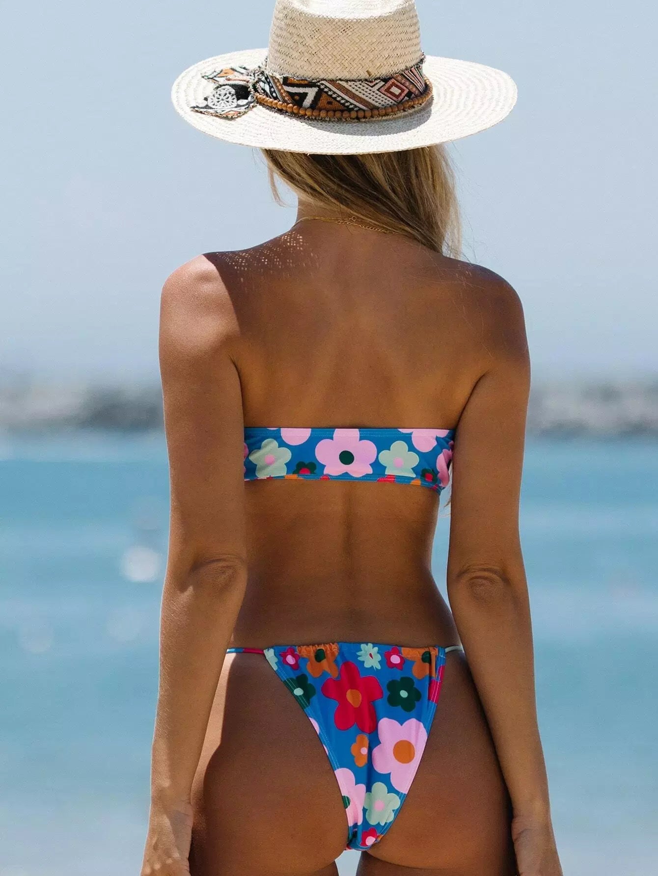 النساء - ملابس السباحة بيكيني باندو ثونغ بعقدة أمامية مزهّرة