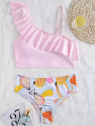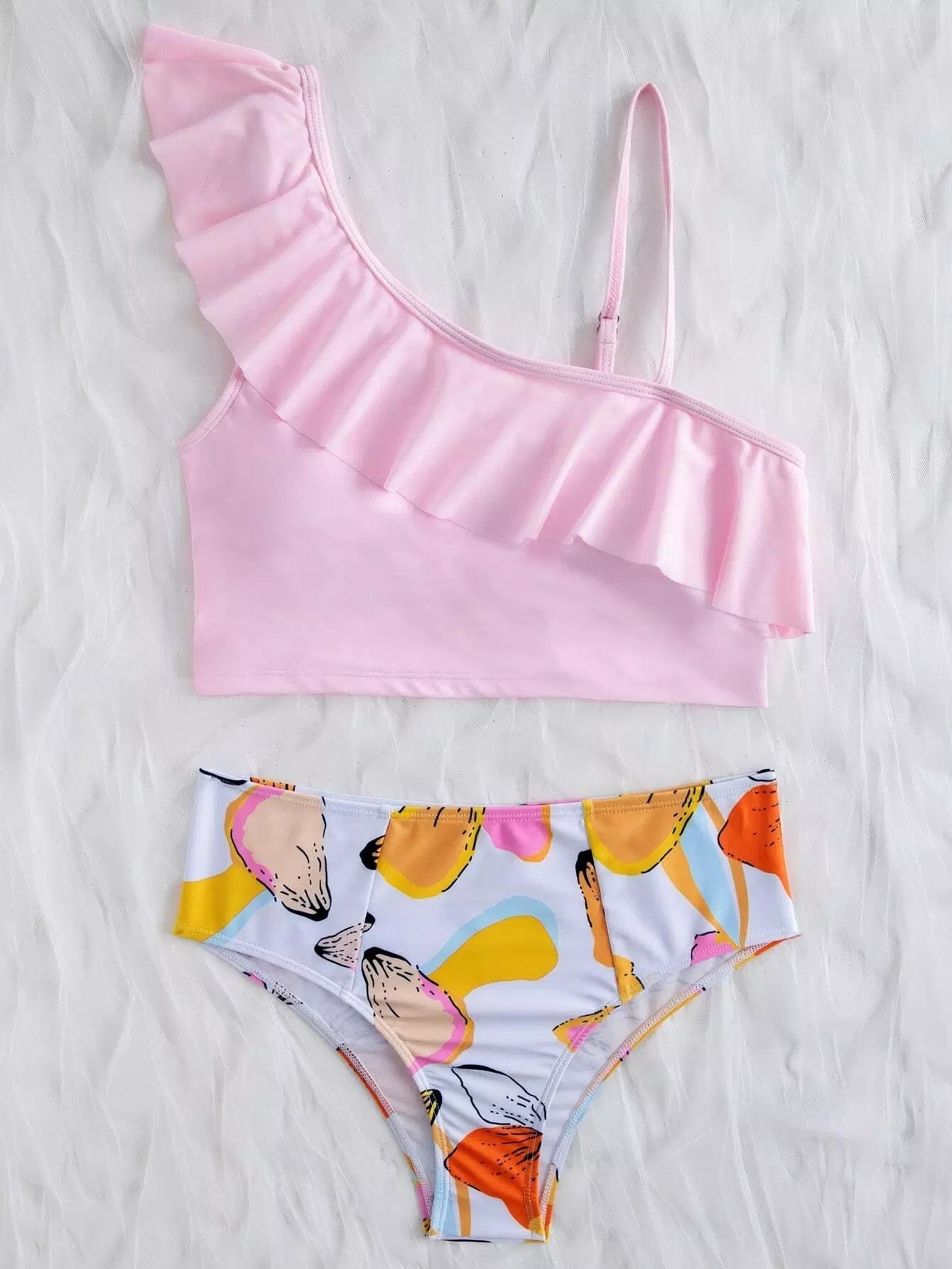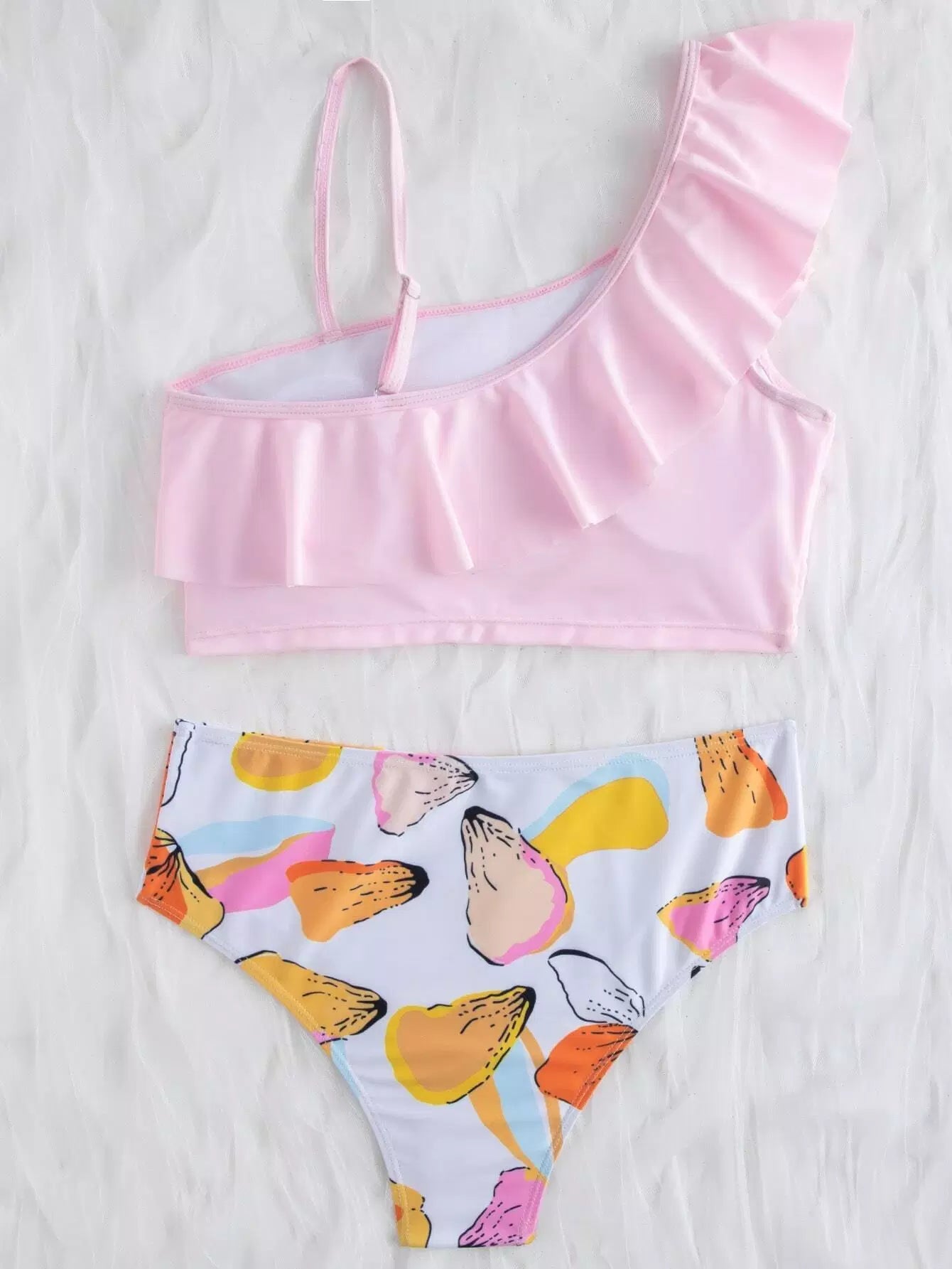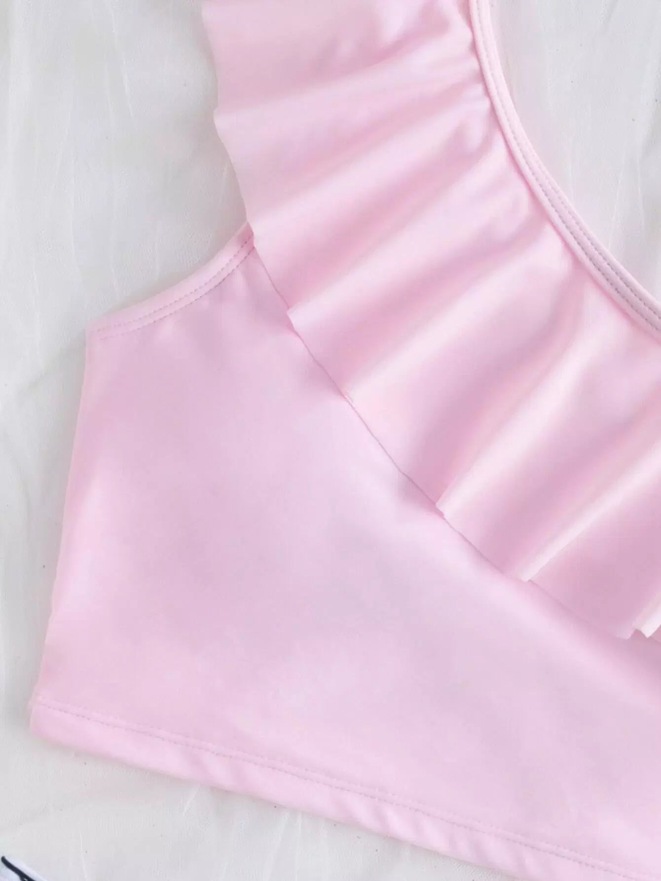 بدلة سباحة بيكيني بحافة كشكش زهري