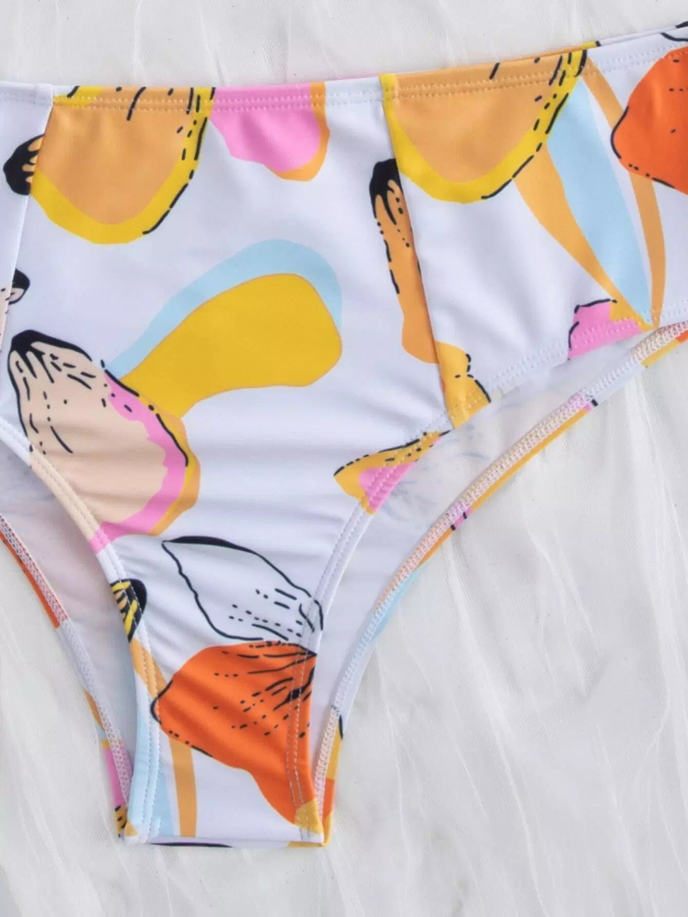 للنساء - بدلة سباحة بكيني بحاشية مكشكشة مزهّرة