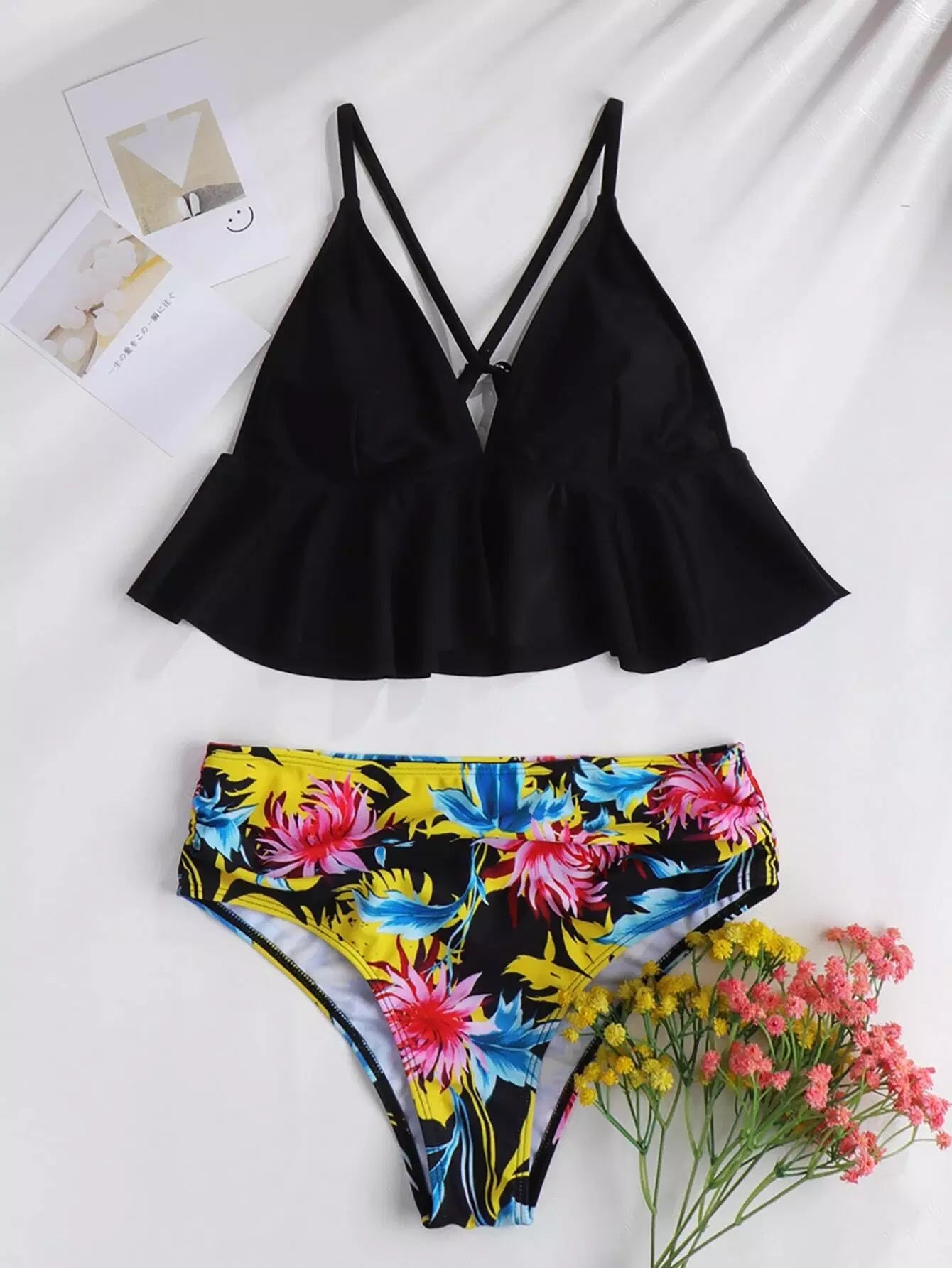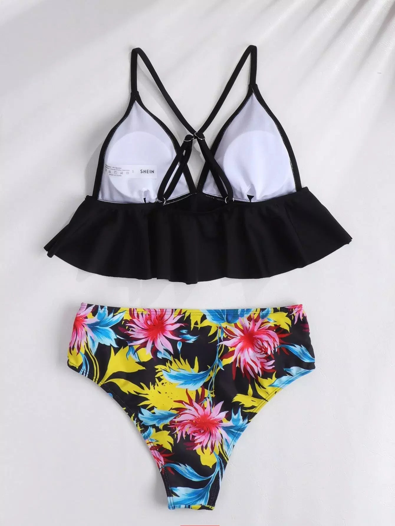 بدلة سباحة بيكيني كشكش بحواف زهرية مكشكشة