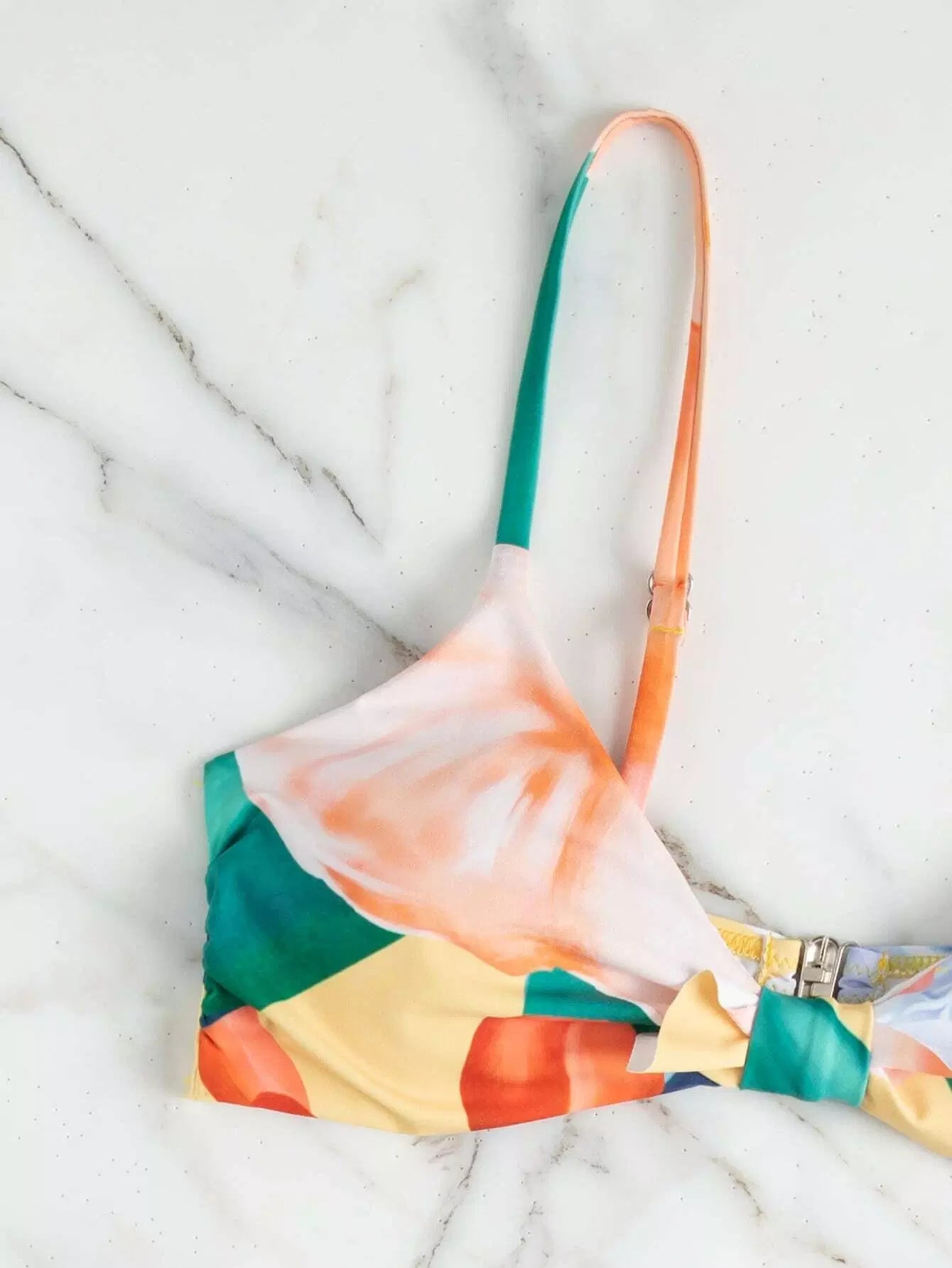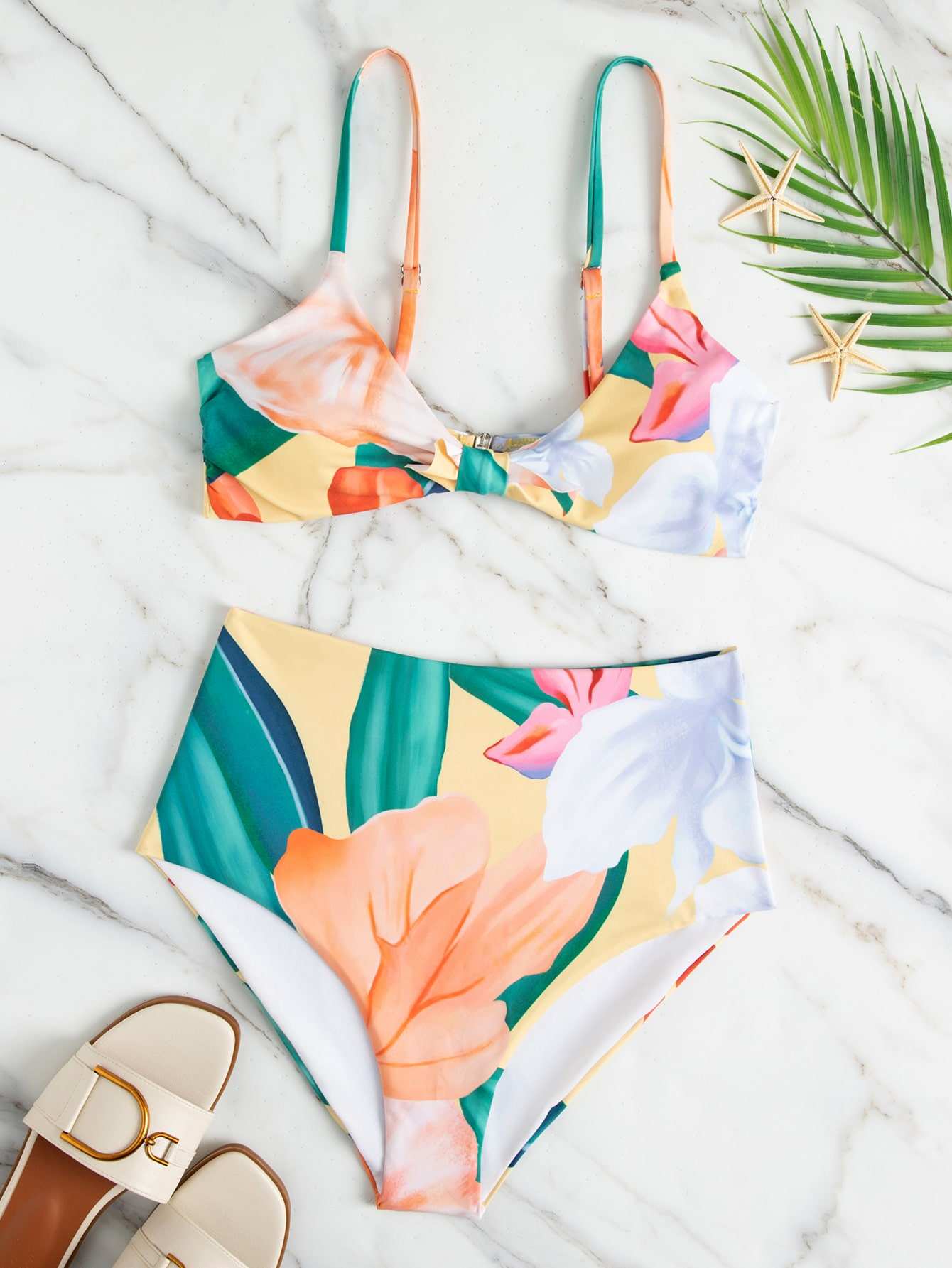 بدلة سباحة بيكيني بطبعة زهور عشوائية عالية الخصر