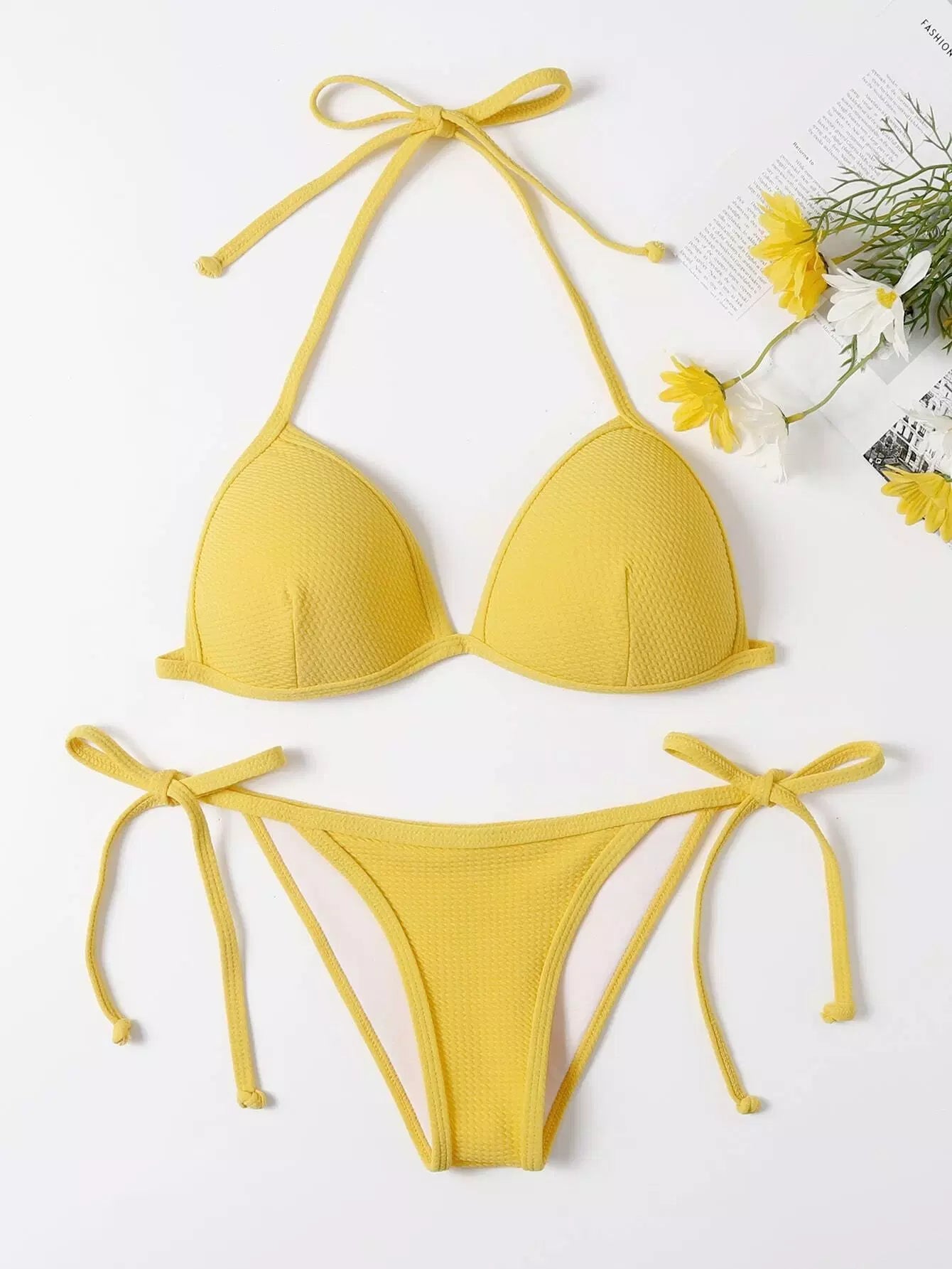 بدلة سباحة بيكيني برقبة جانبية برباط جانبي