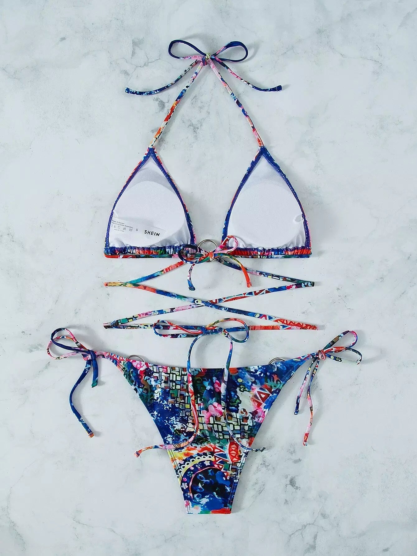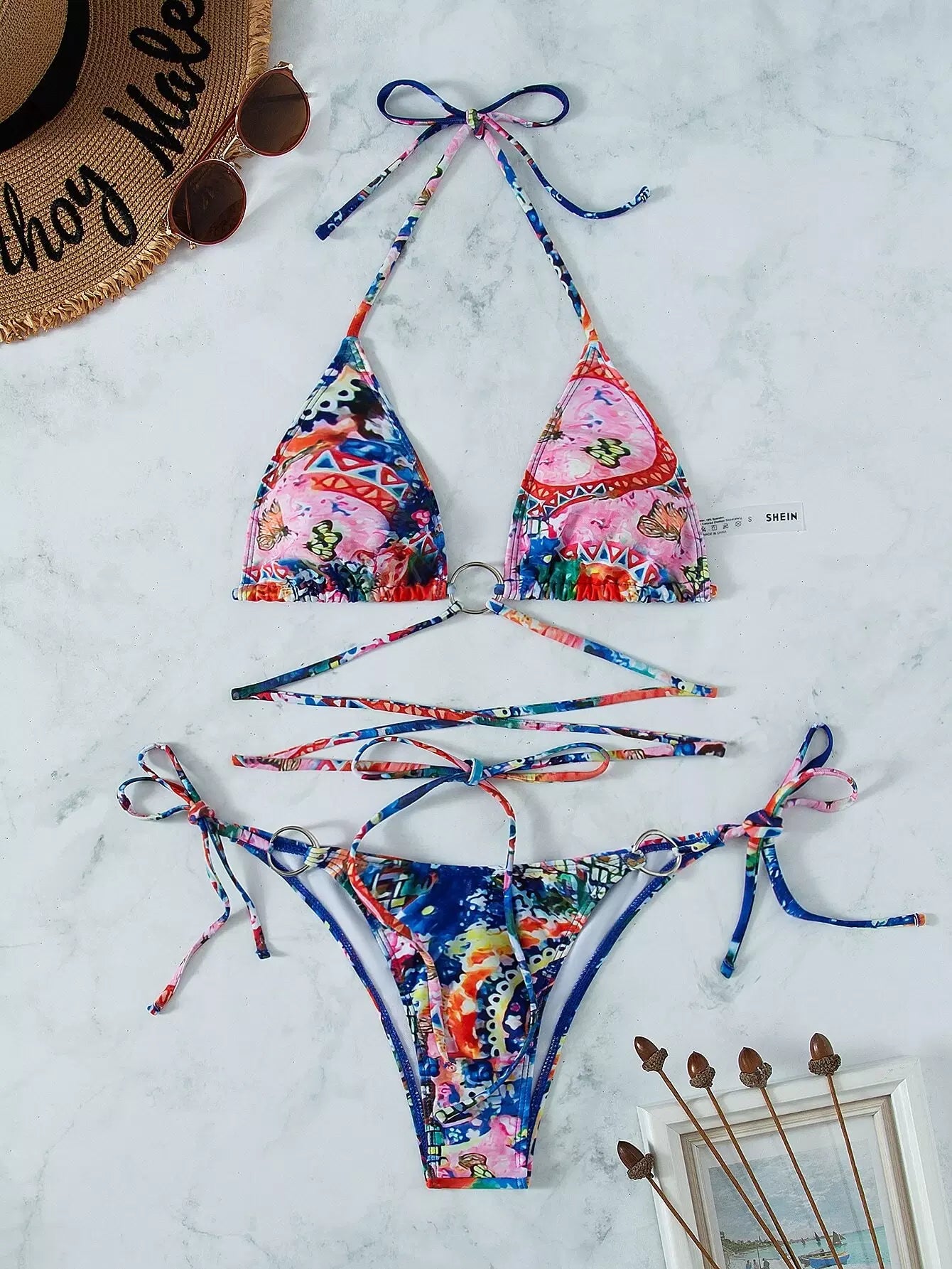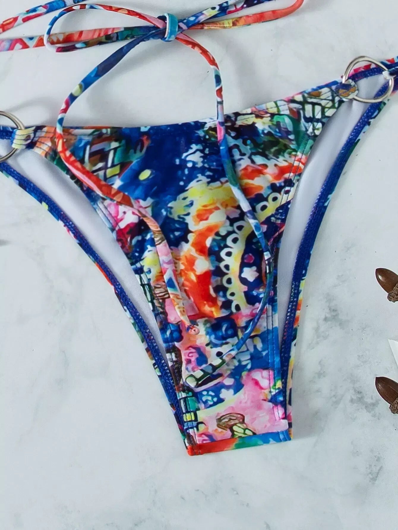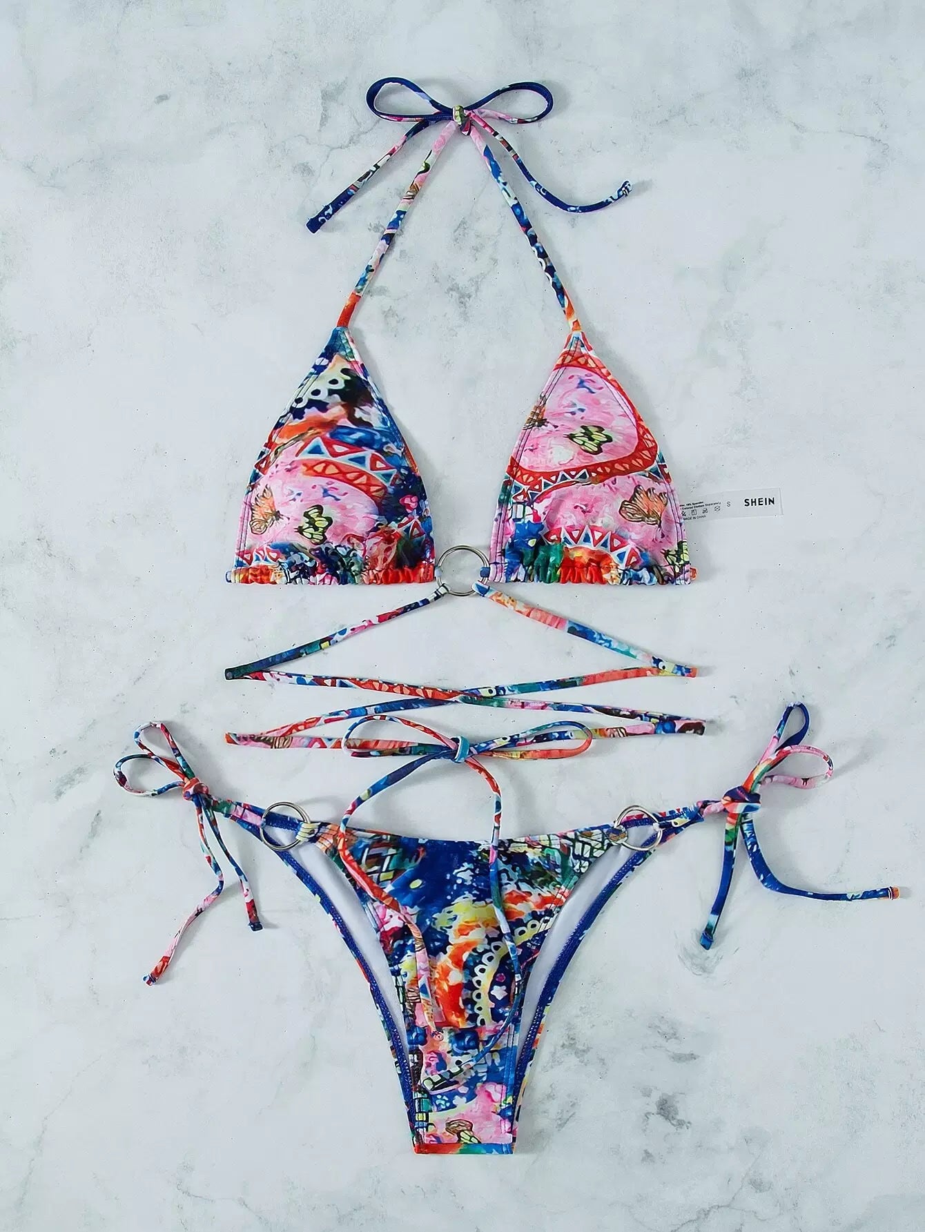 بيكيني سباحة بيكيني مثلث مربوط بخاتم مرسوم عليه بالكامل