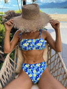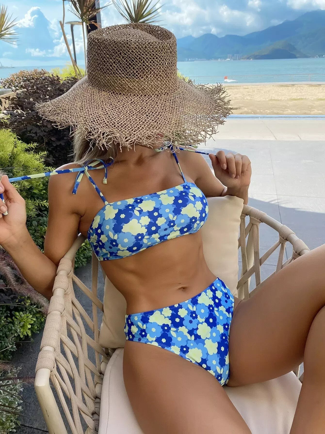 ملابس سباحة بيكيني برباط على الكتف مزينة بالزهور