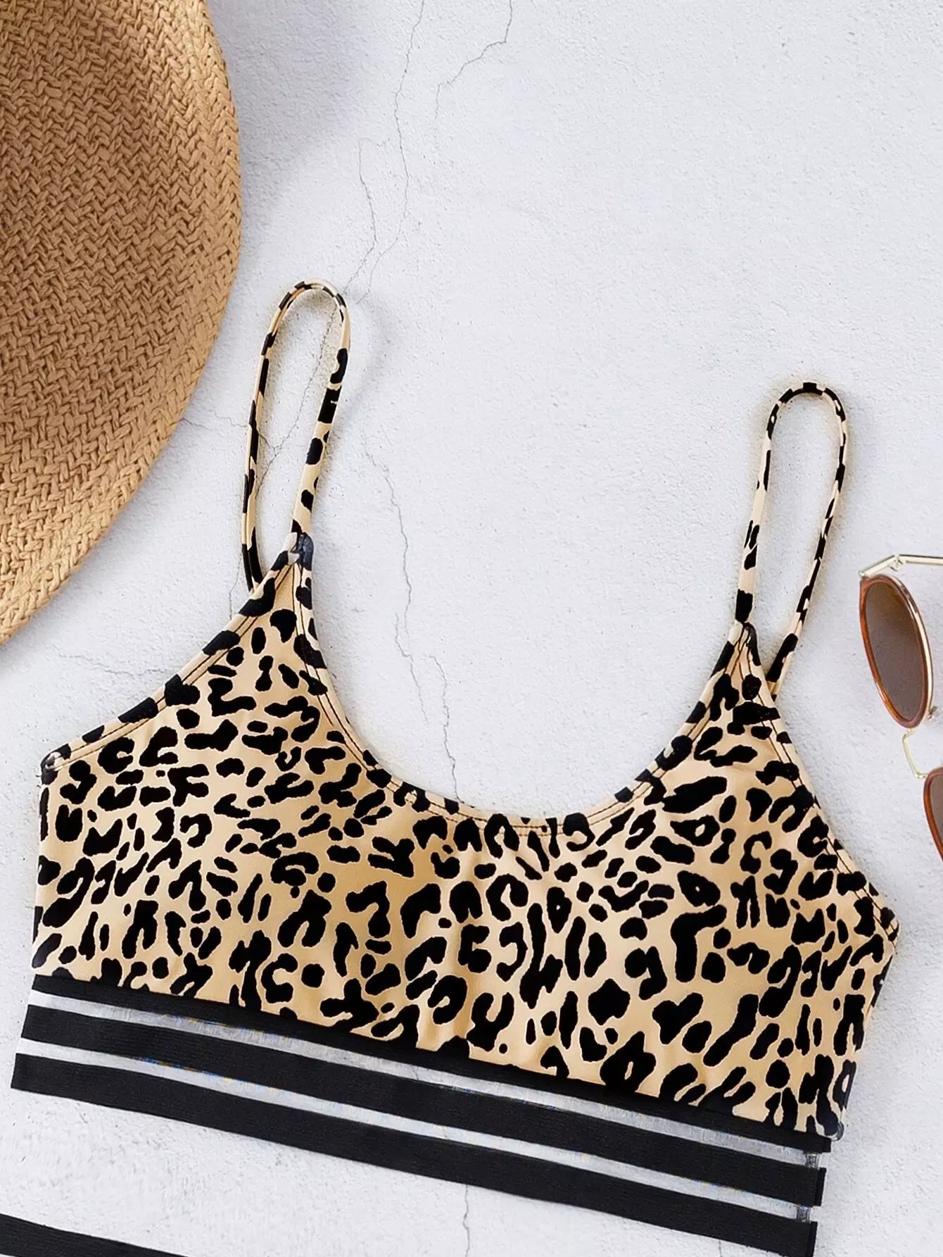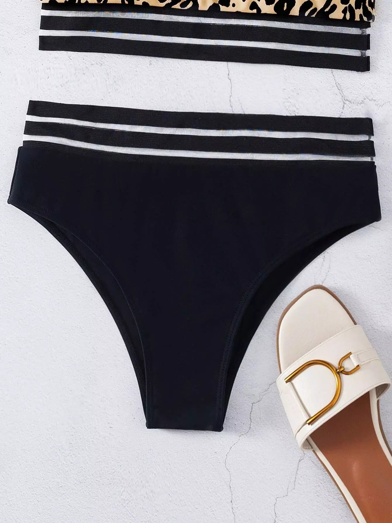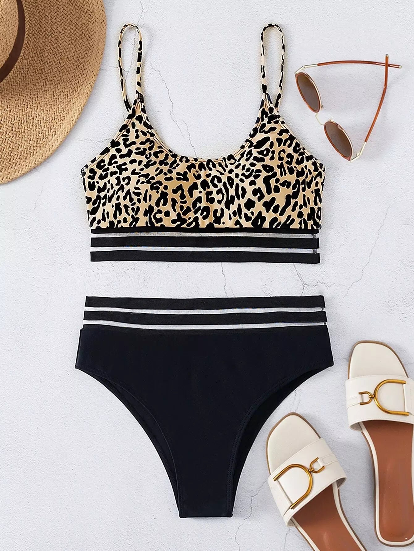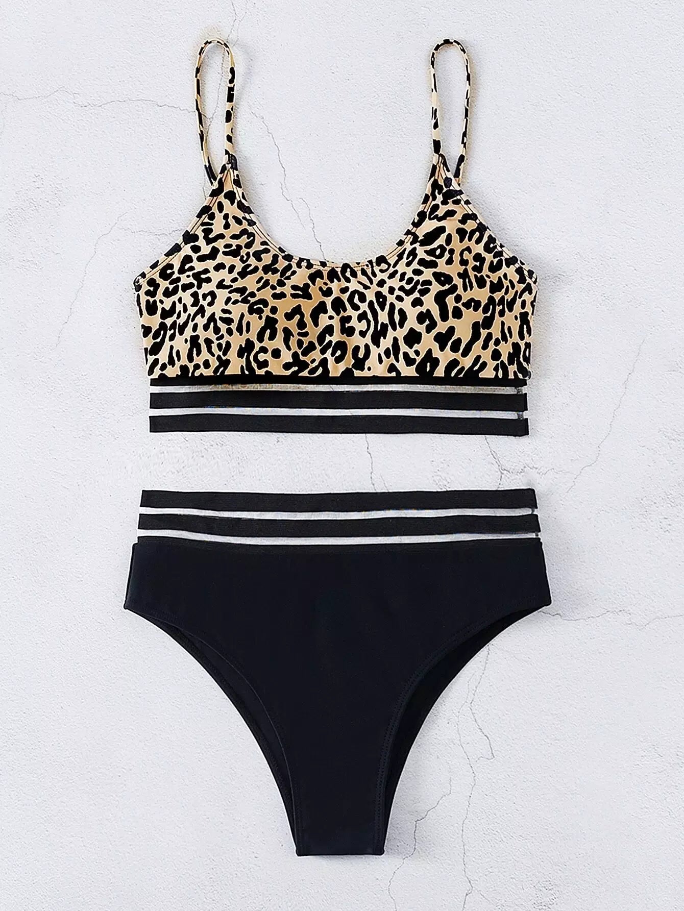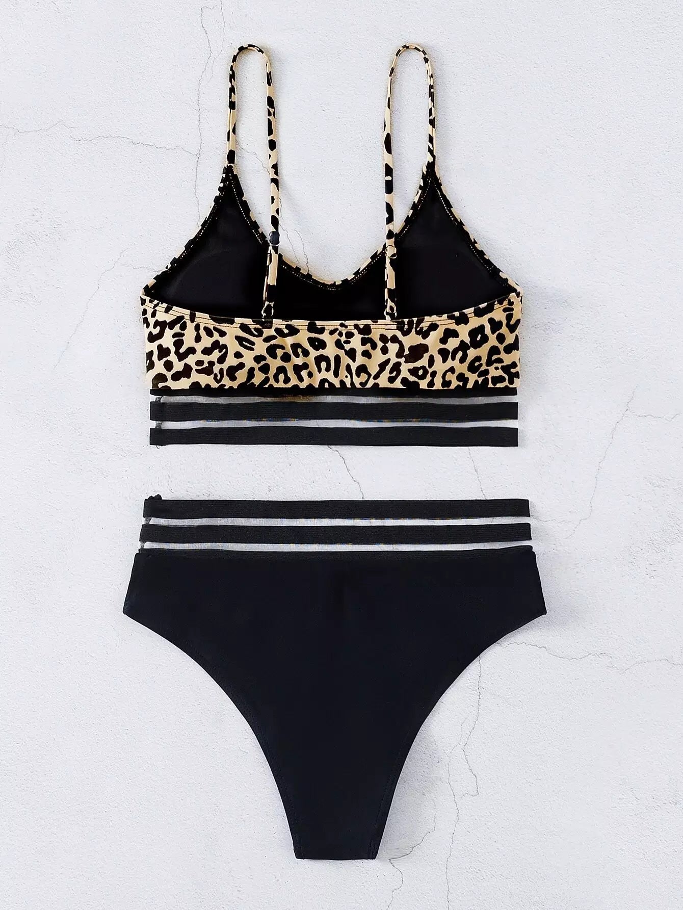 بدلة سباحة بيكيني شبكي بنقشة الفهد بنقشة متباينة