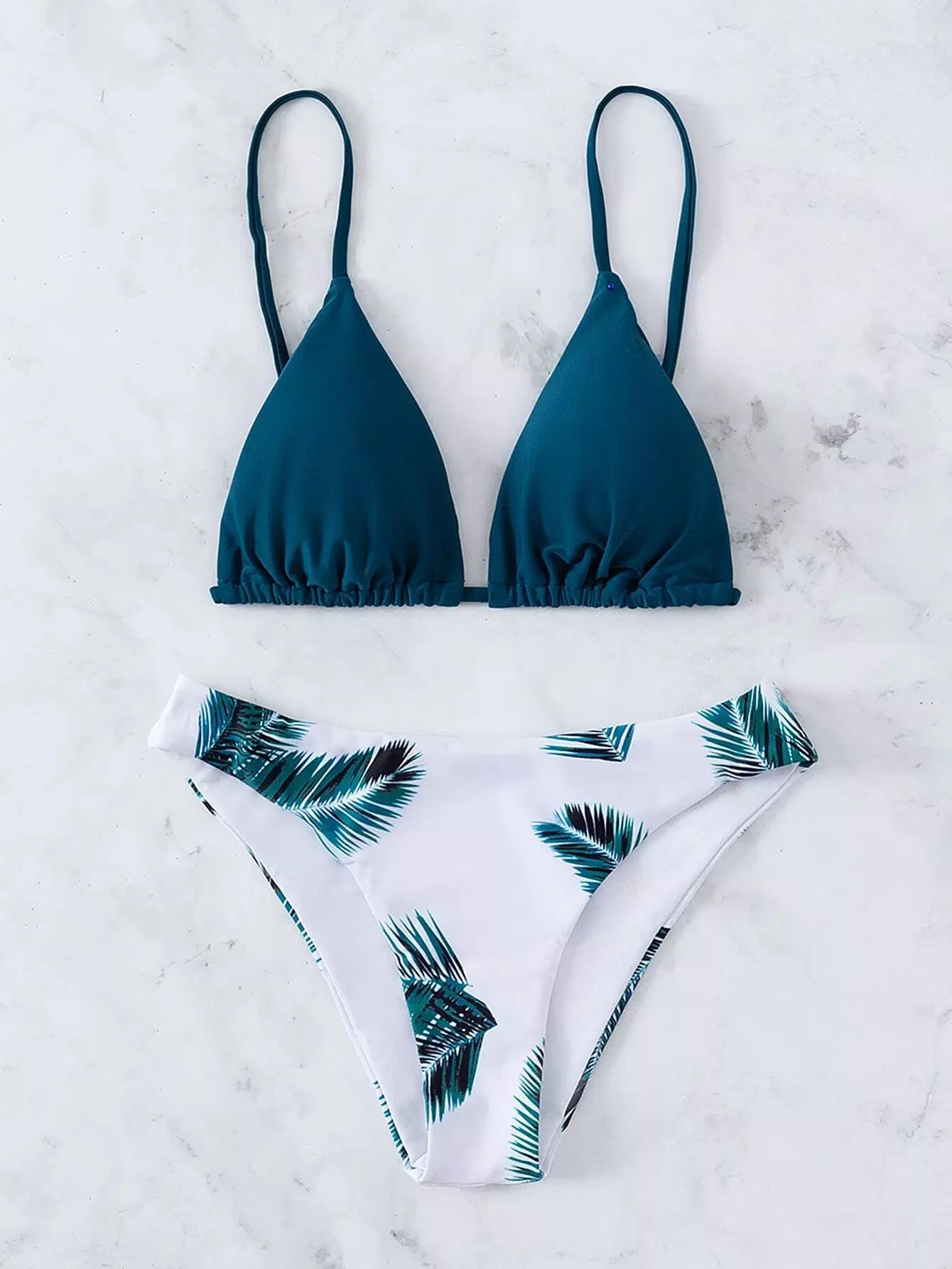 بيكيني سباحة مثلث بطبعة أوراق النخيل