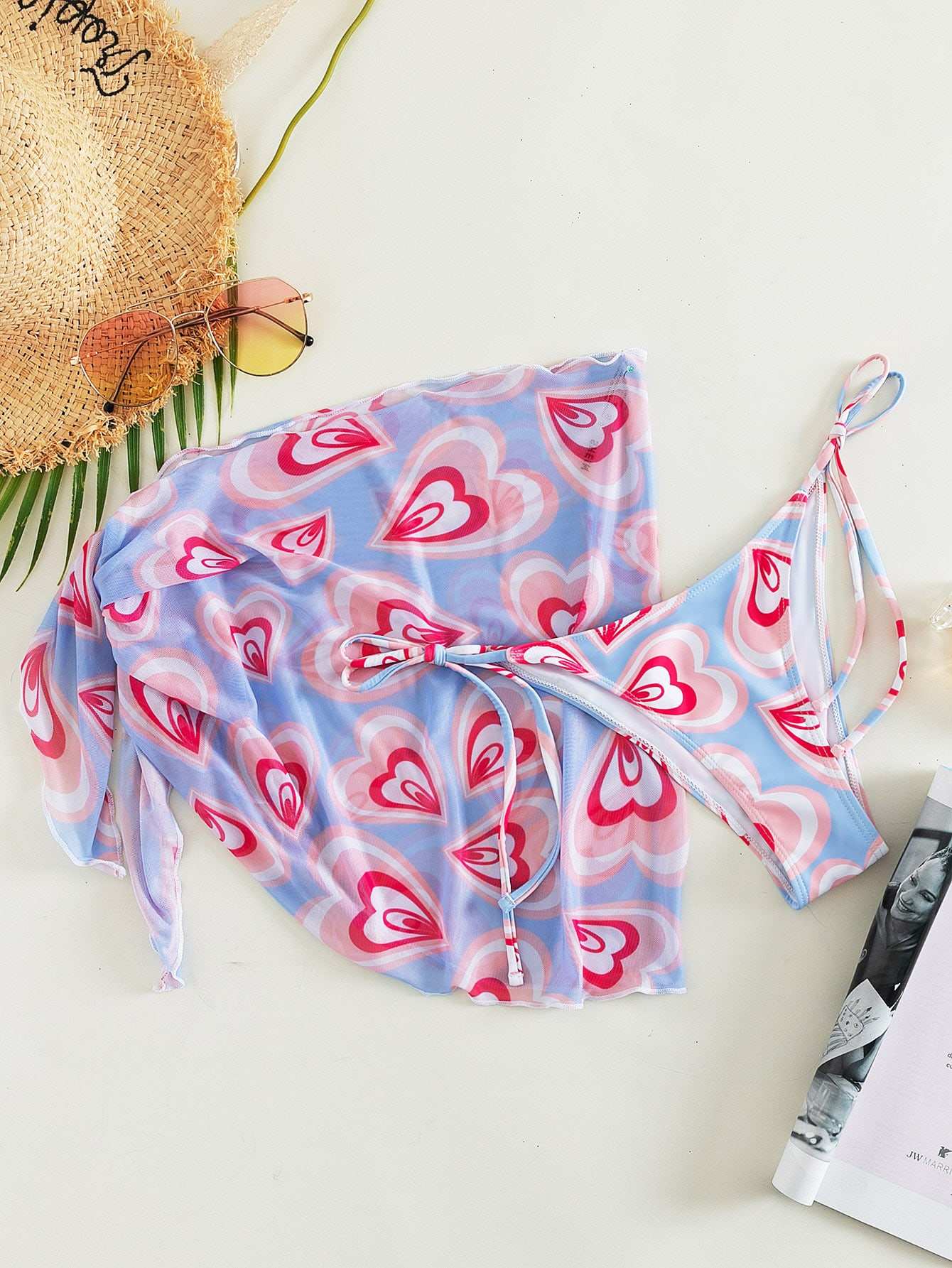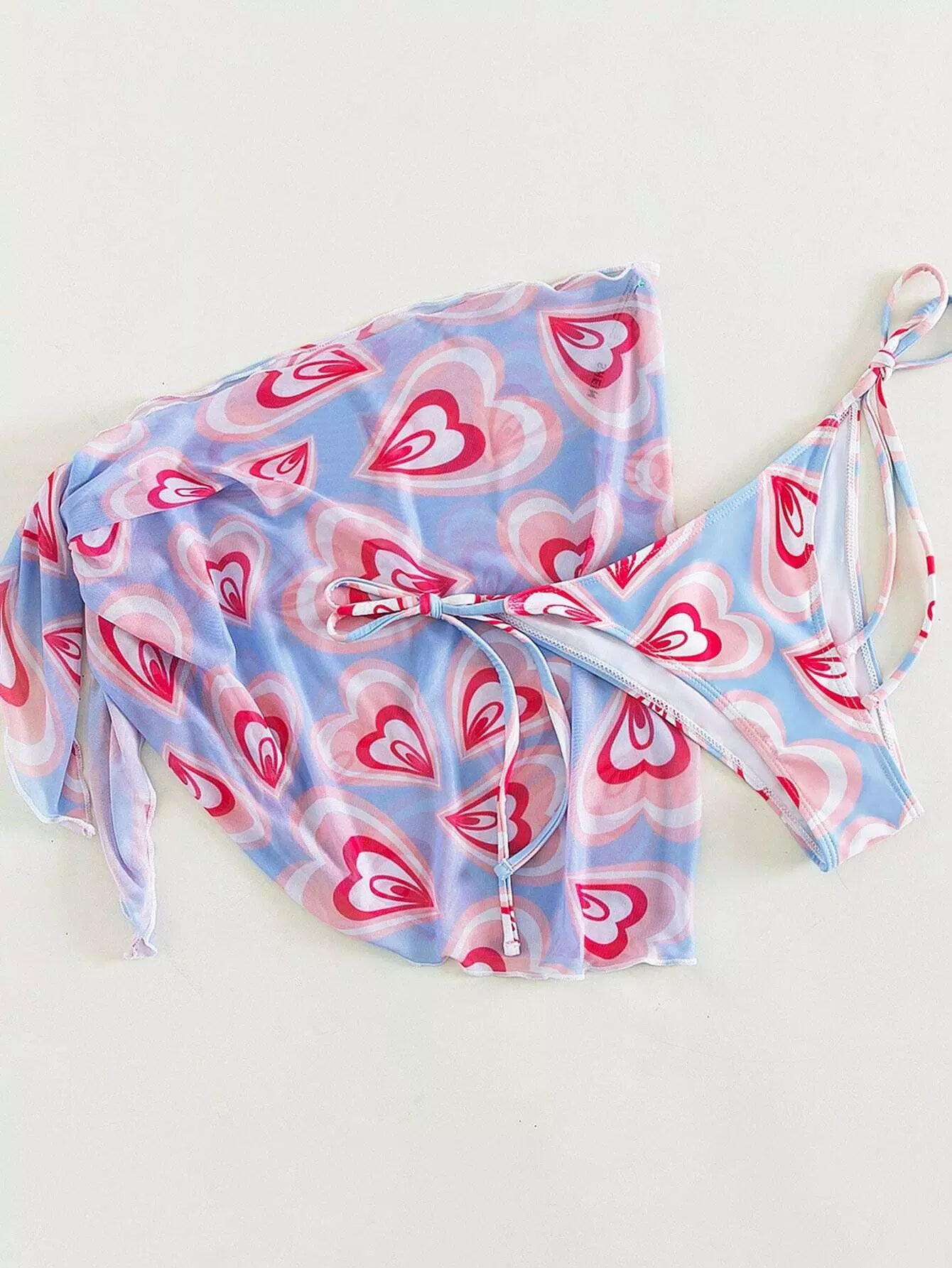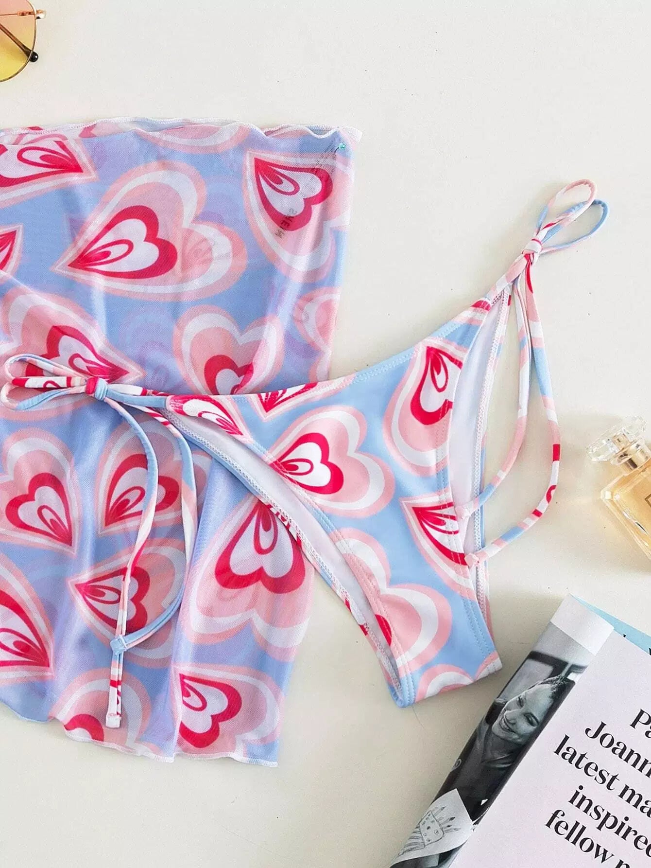 2 عبوة 2 بيكيني داخلي وغطاء بنقشة قلب بربطة جانبية