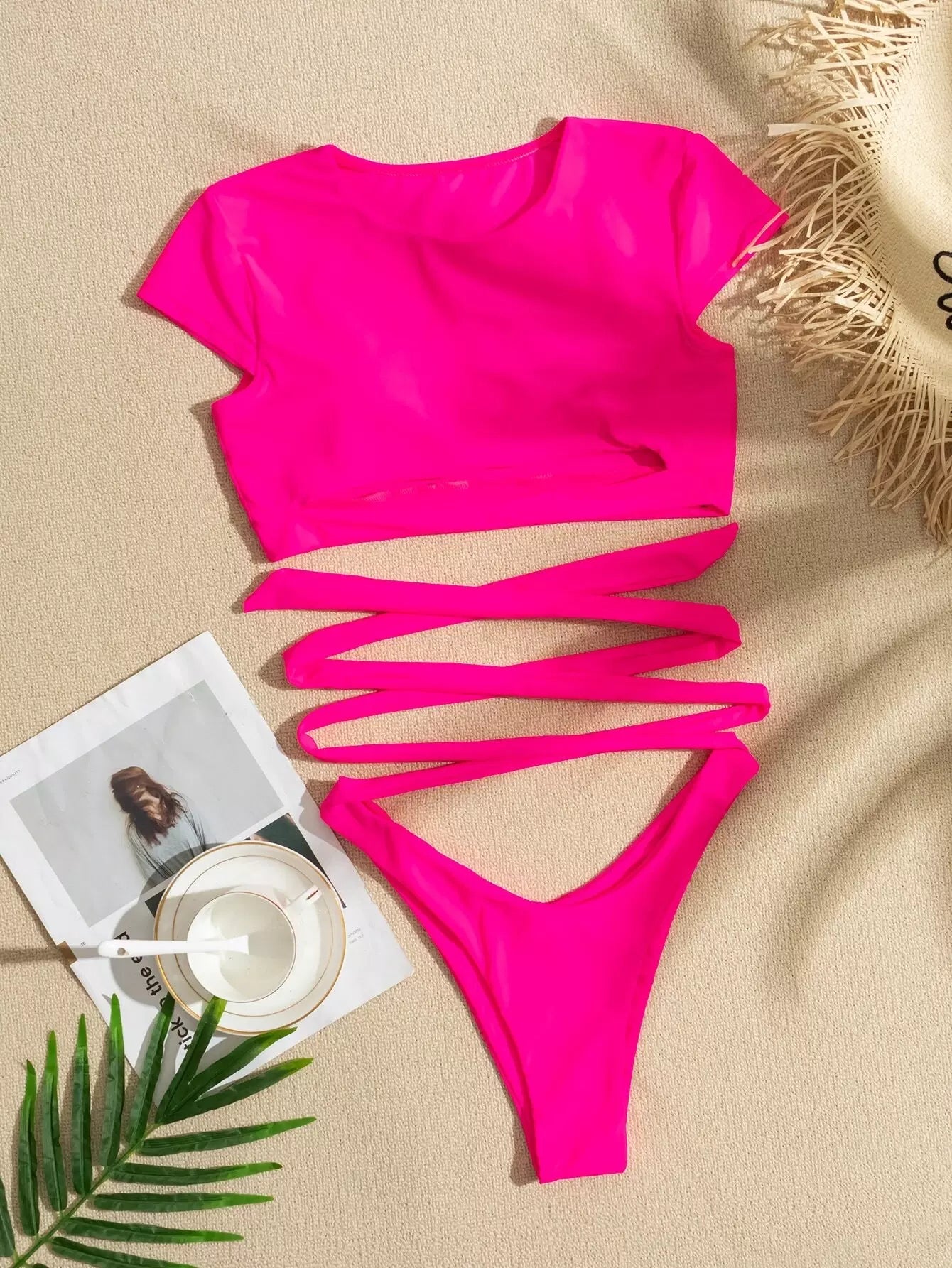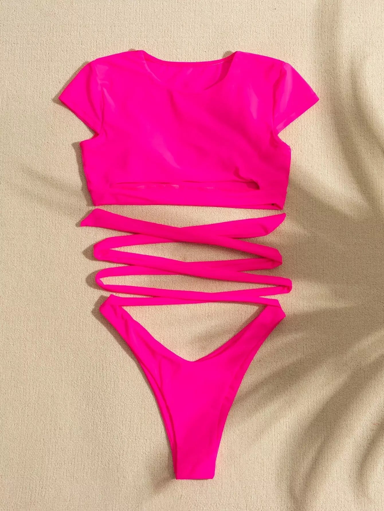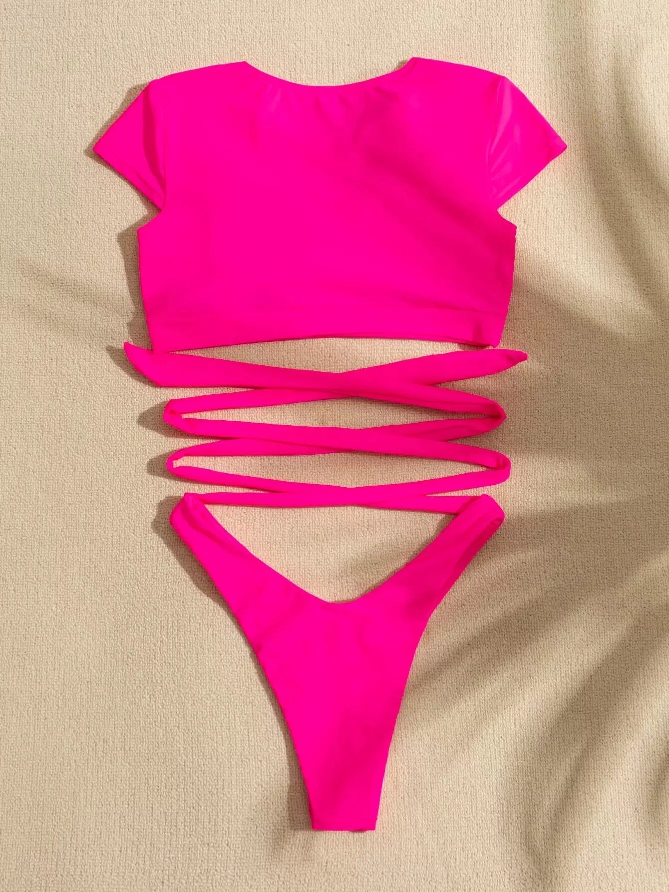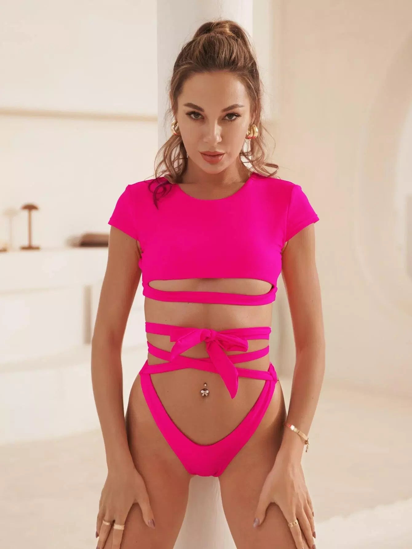 بدلة سباحة بيكيني بقصّة أمامية عالية بفتحة أمامية معقودة