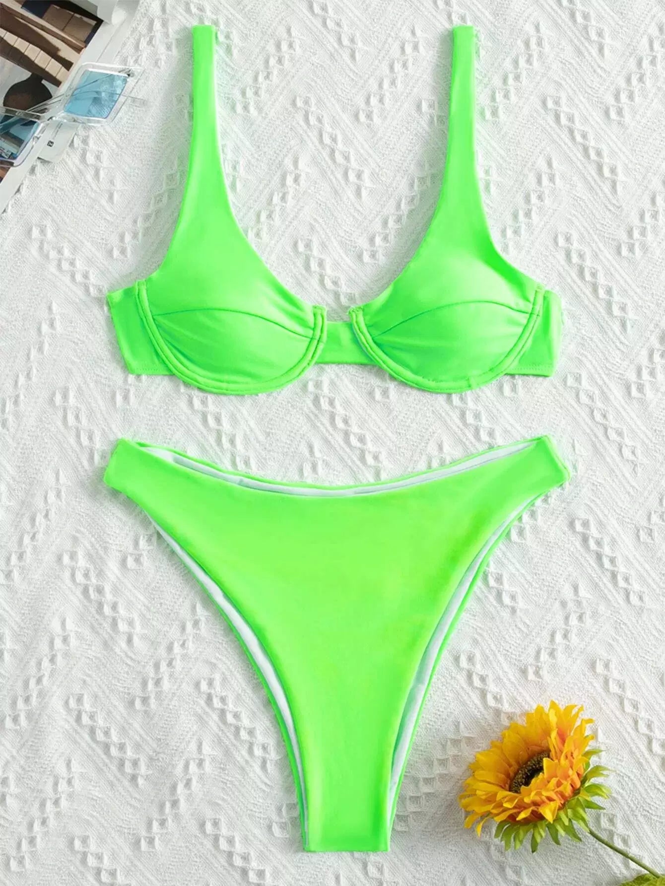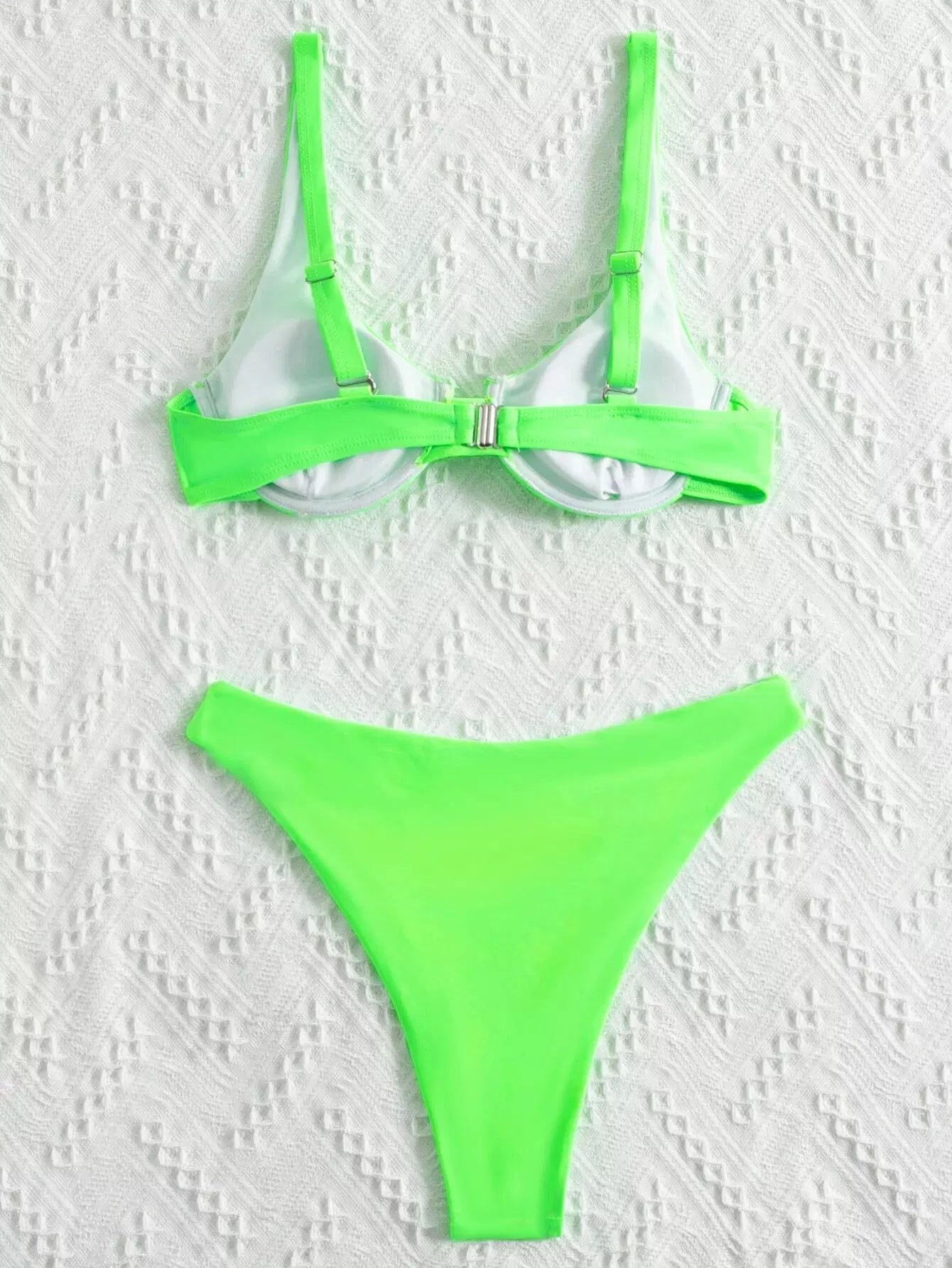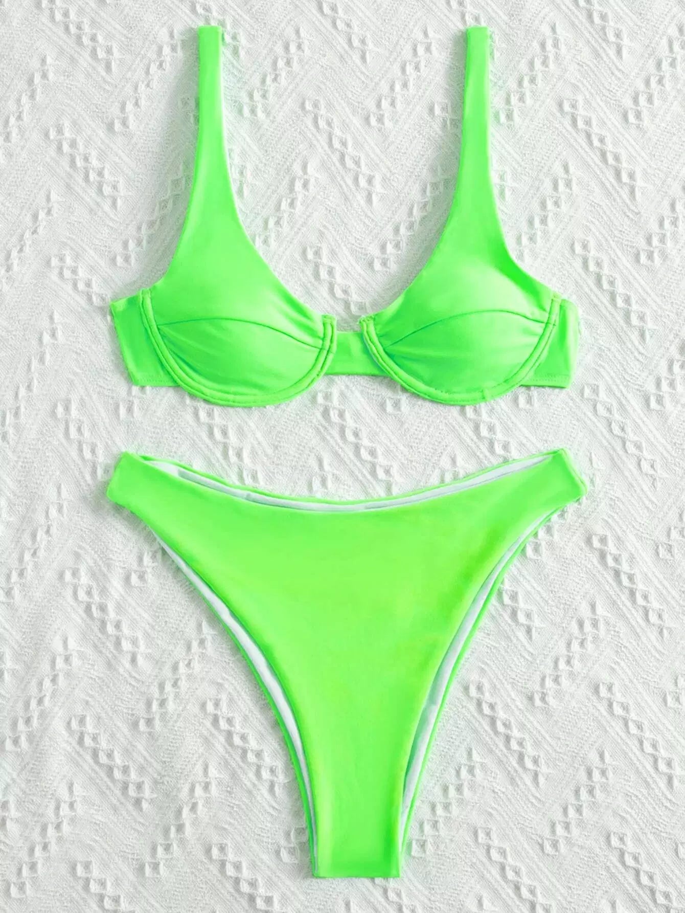 بدلة سباحة بيكيني أخضر نيون تحت السلك