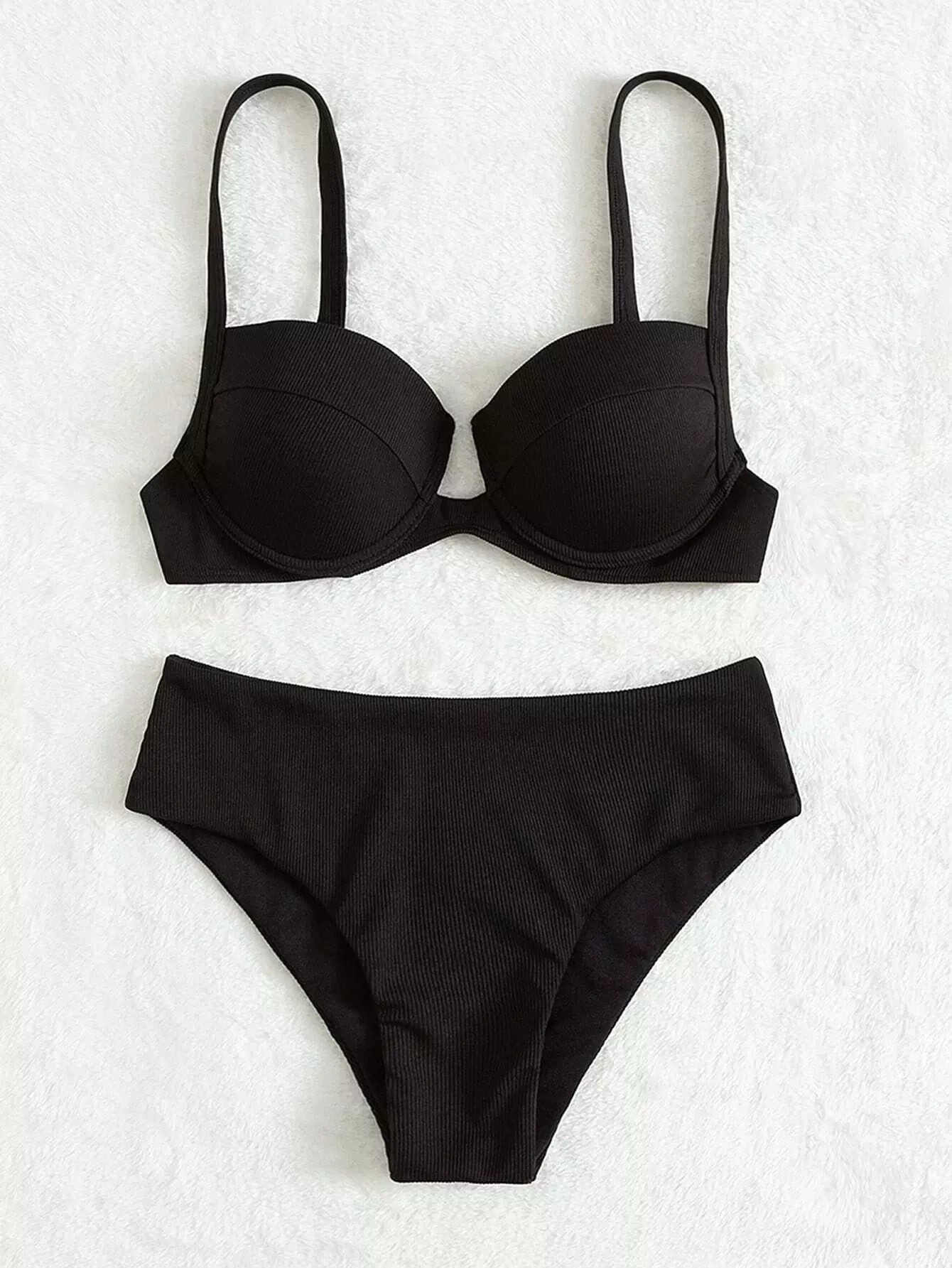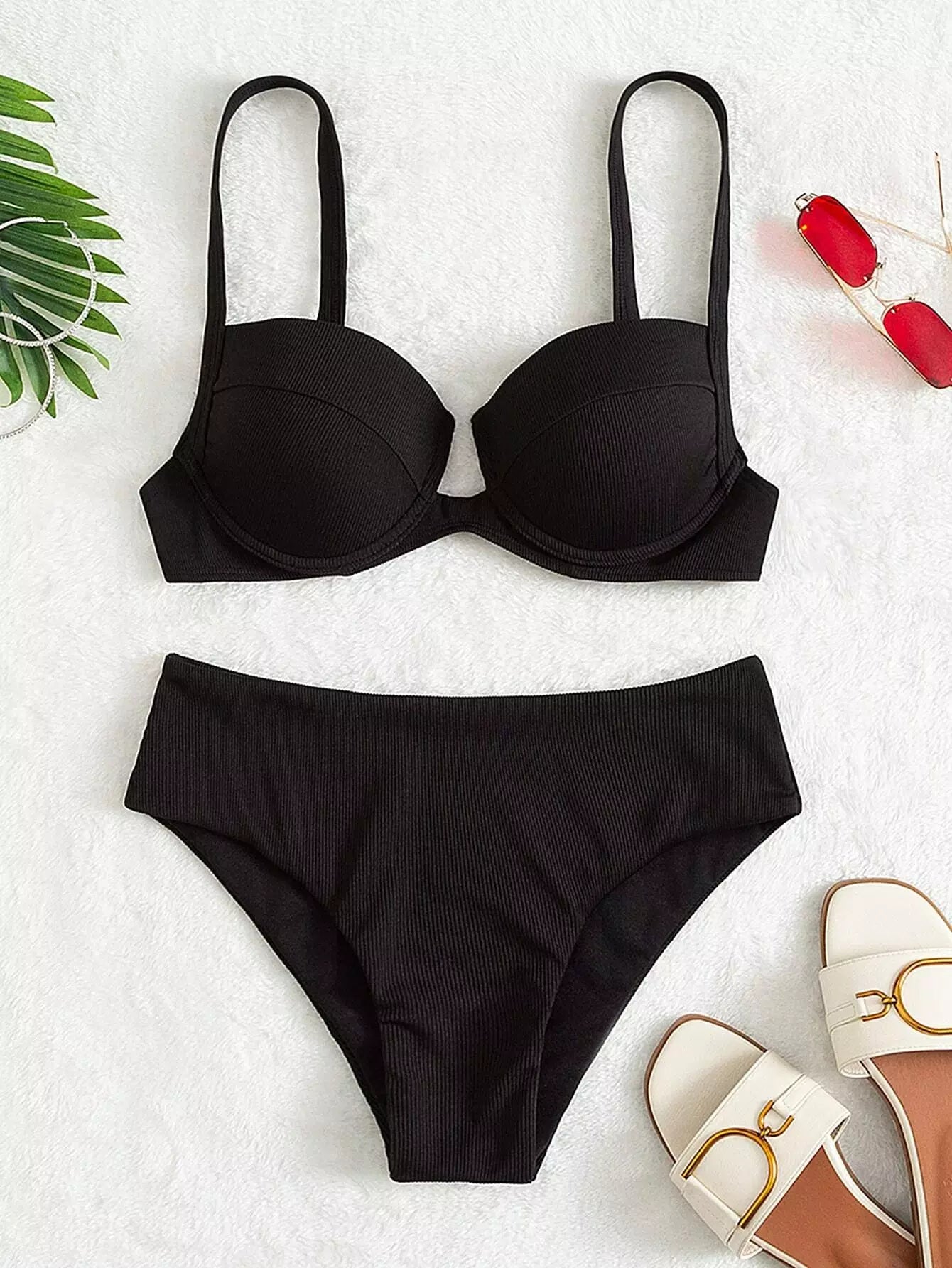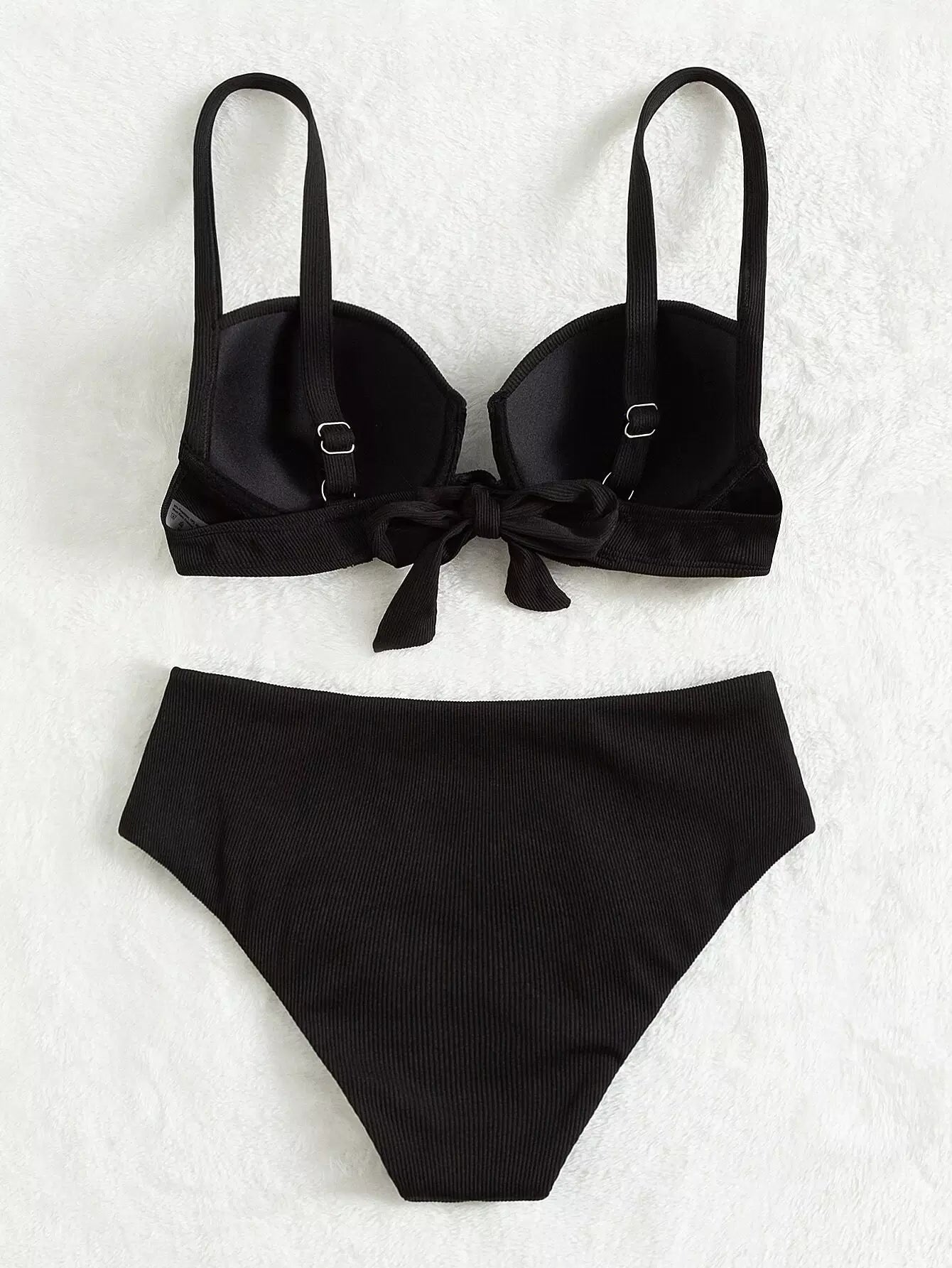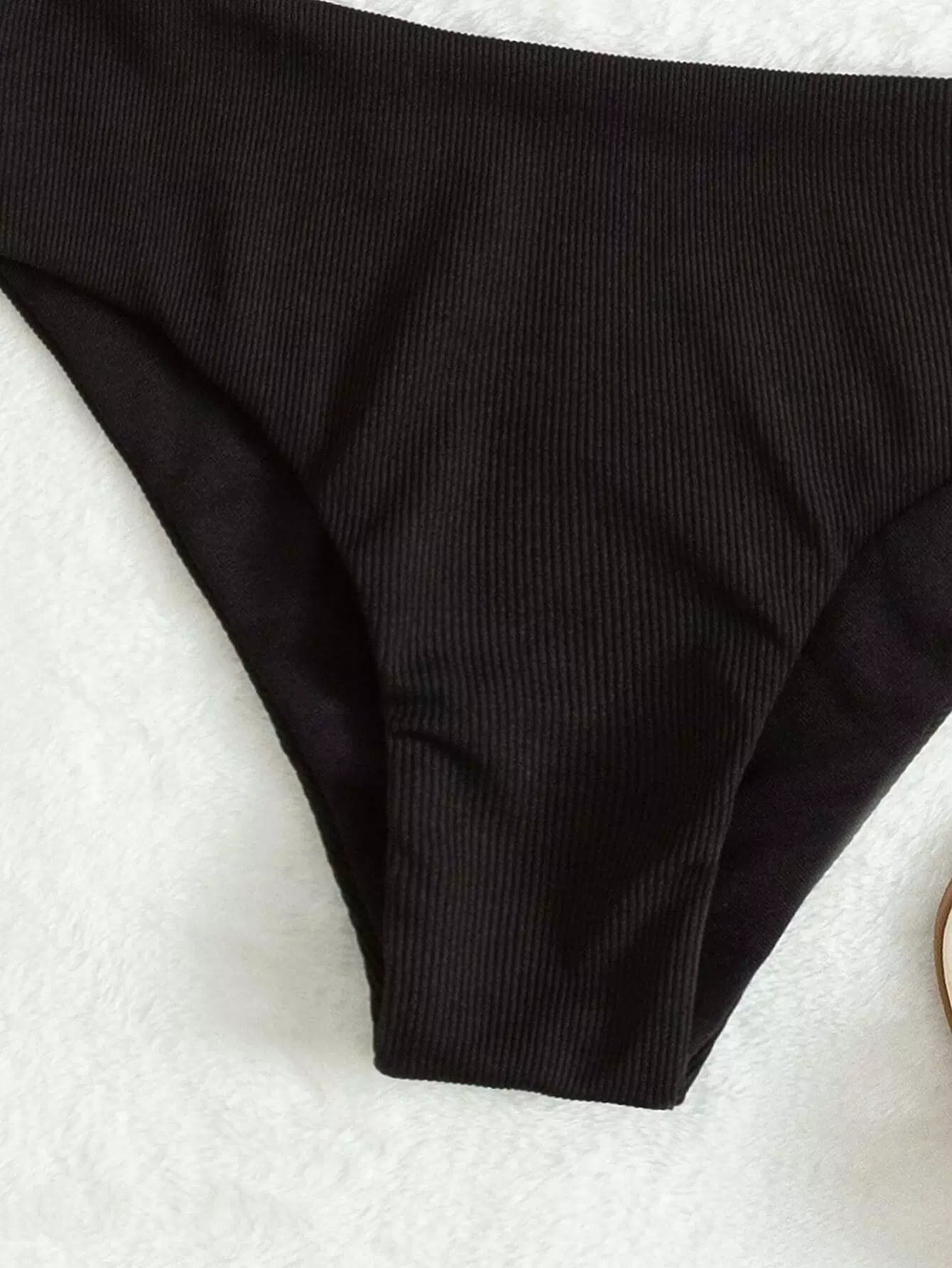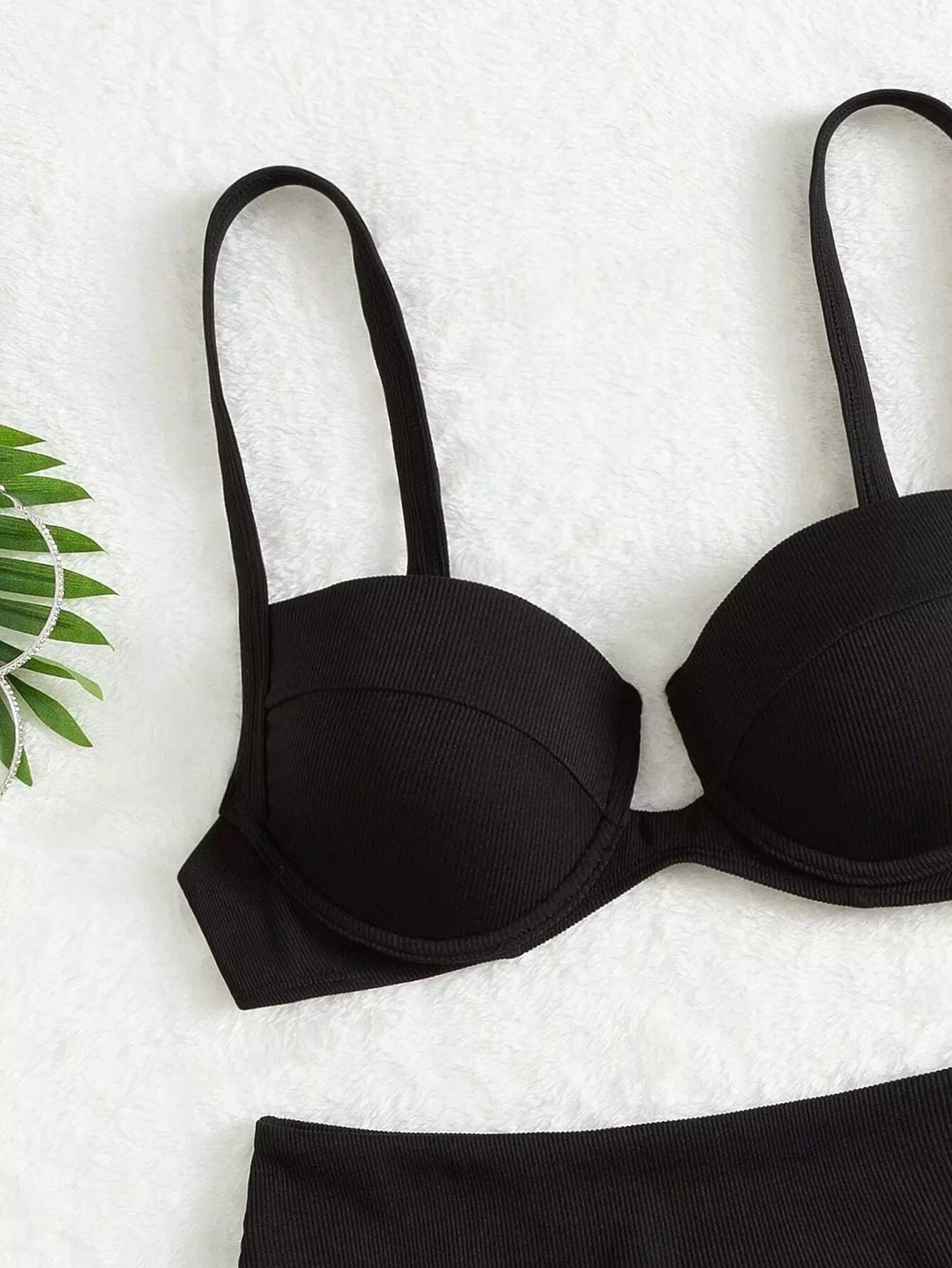 ملابس سباحة بيكيني سادة على شكل ضلع سادة