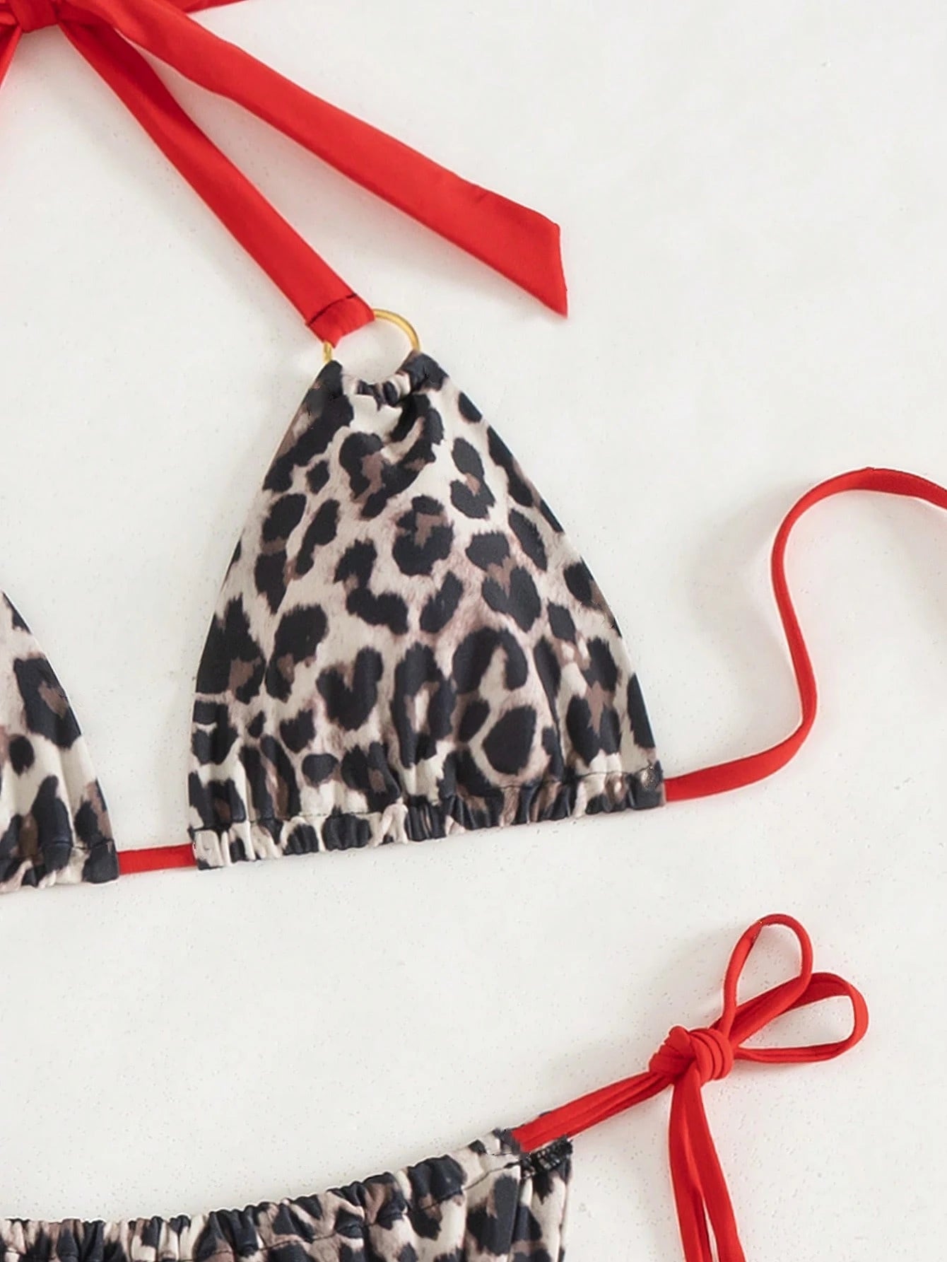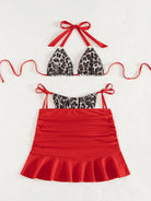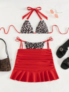 Swim SXY 3Pcs/Set Women Leopard Print Halter Bikini Set, Sexy Red Beach Swimsuit, Casual Vacation Swimming