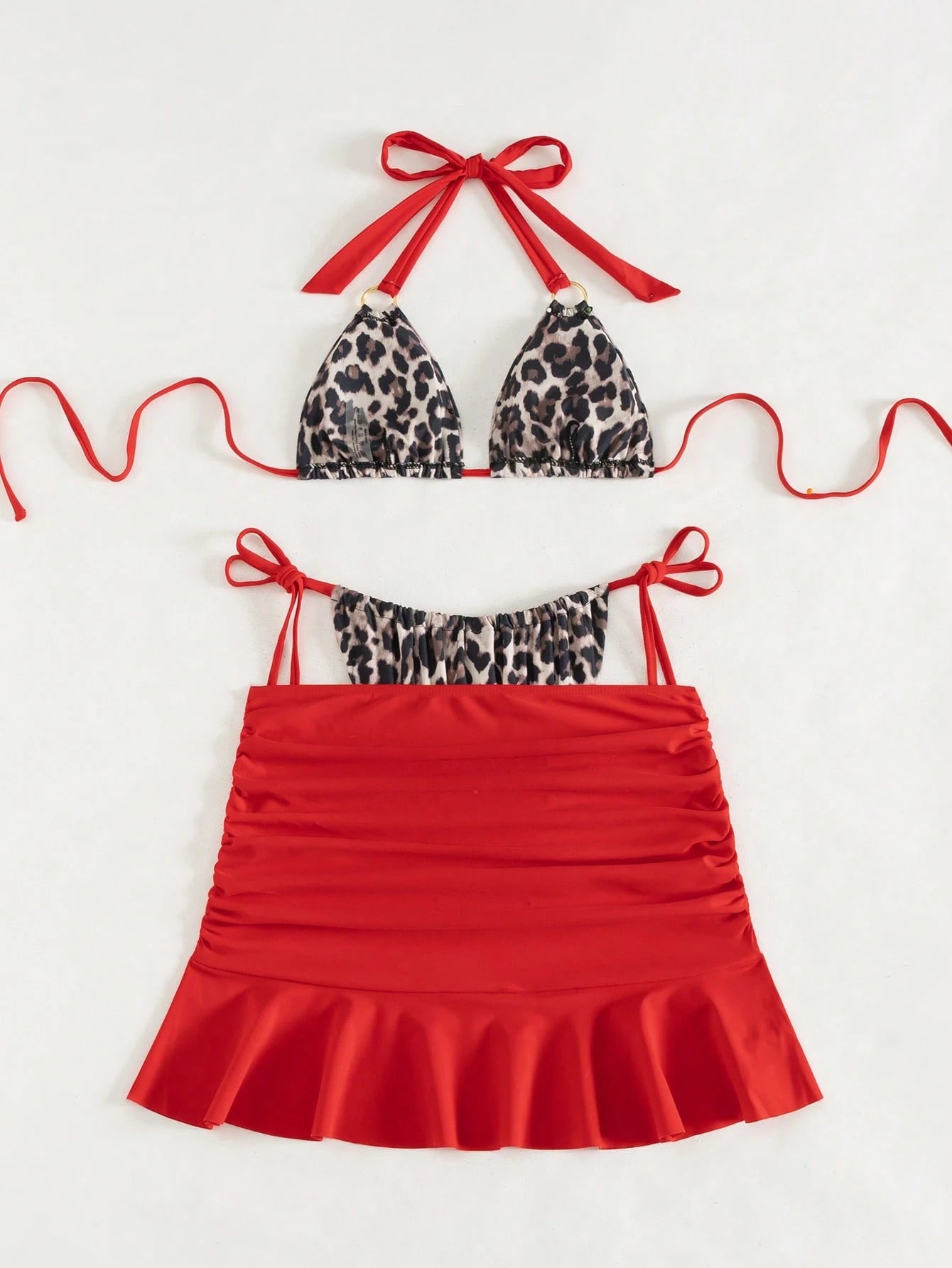 مجموعة بيكيني نسائية من Swim SXY مكونة من 3 قطع بطبعة جلد الفهد، ملابس سباحة مثيرة للشاطئ باللون الأحمر، ملابس سباحة غير رسمية لقضاء العطلات