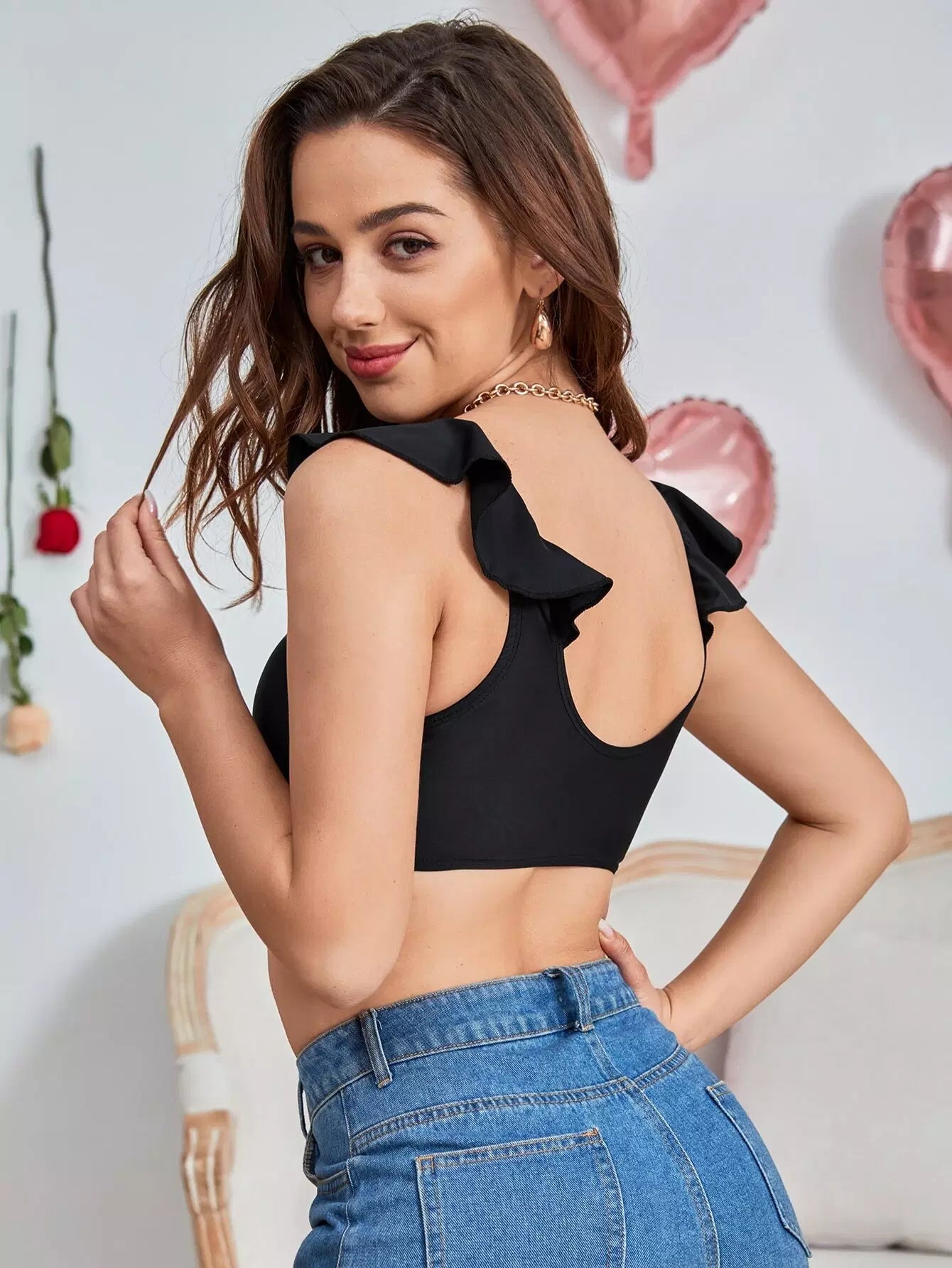 النساء - قطعة بيكيني علوية بحلية مكشكشة